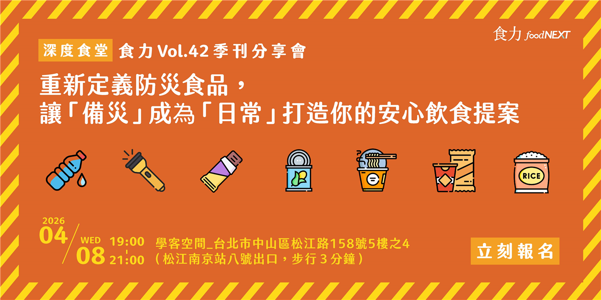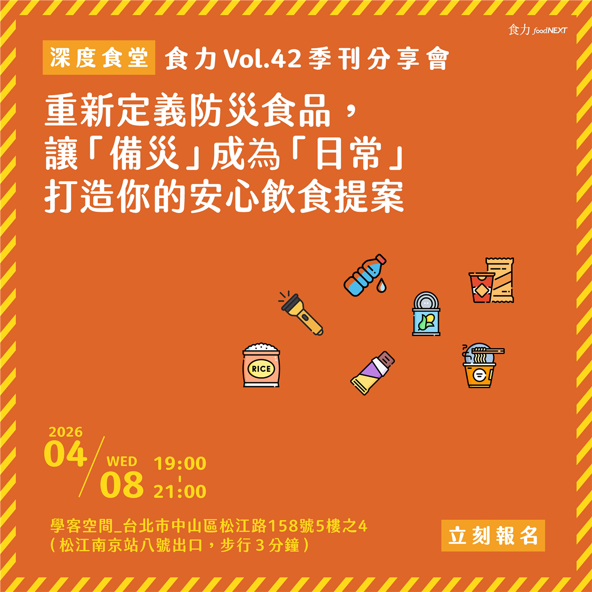 【深度食堂】 食力Vol.42季刊分享會|重新定義防災食品,讓「備災」成為「日常」打造你的安心飲食提案!