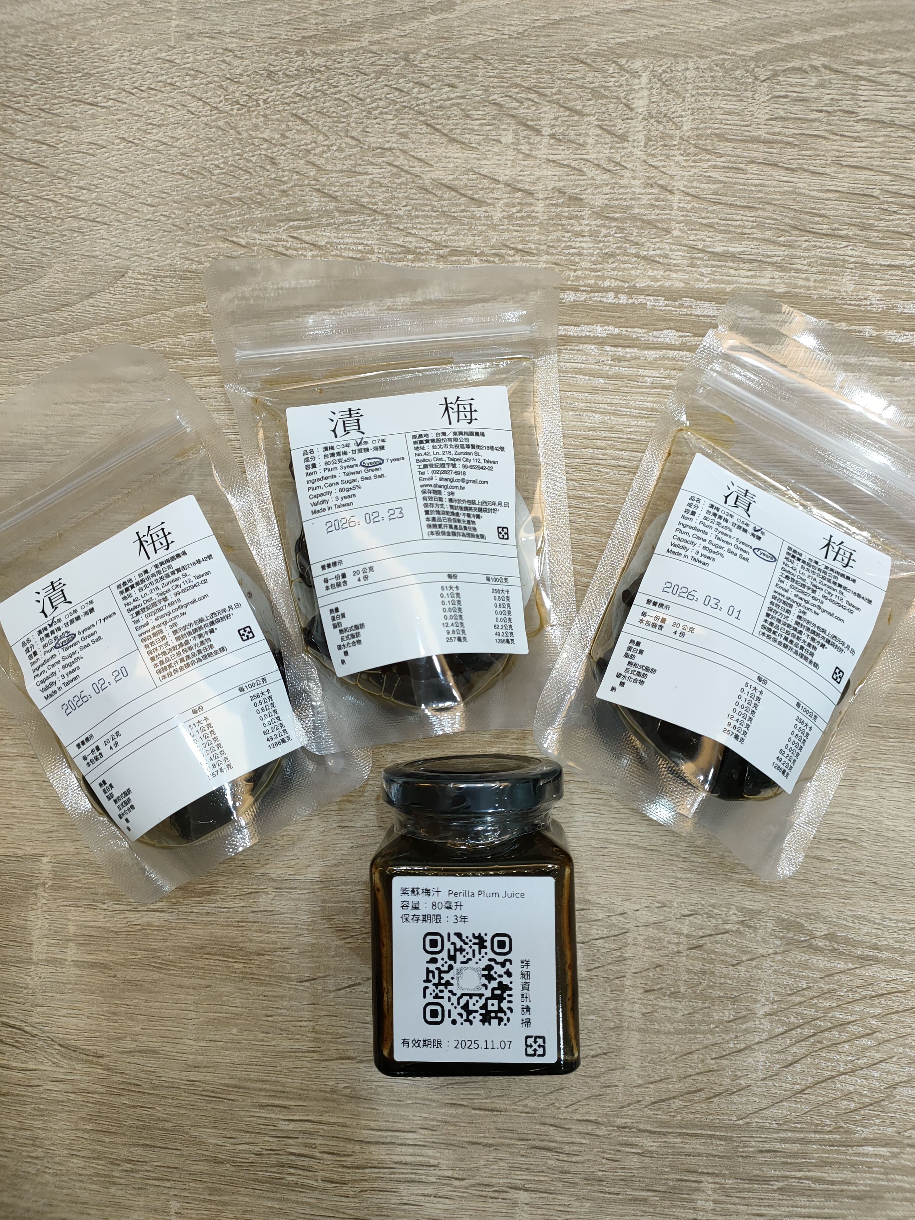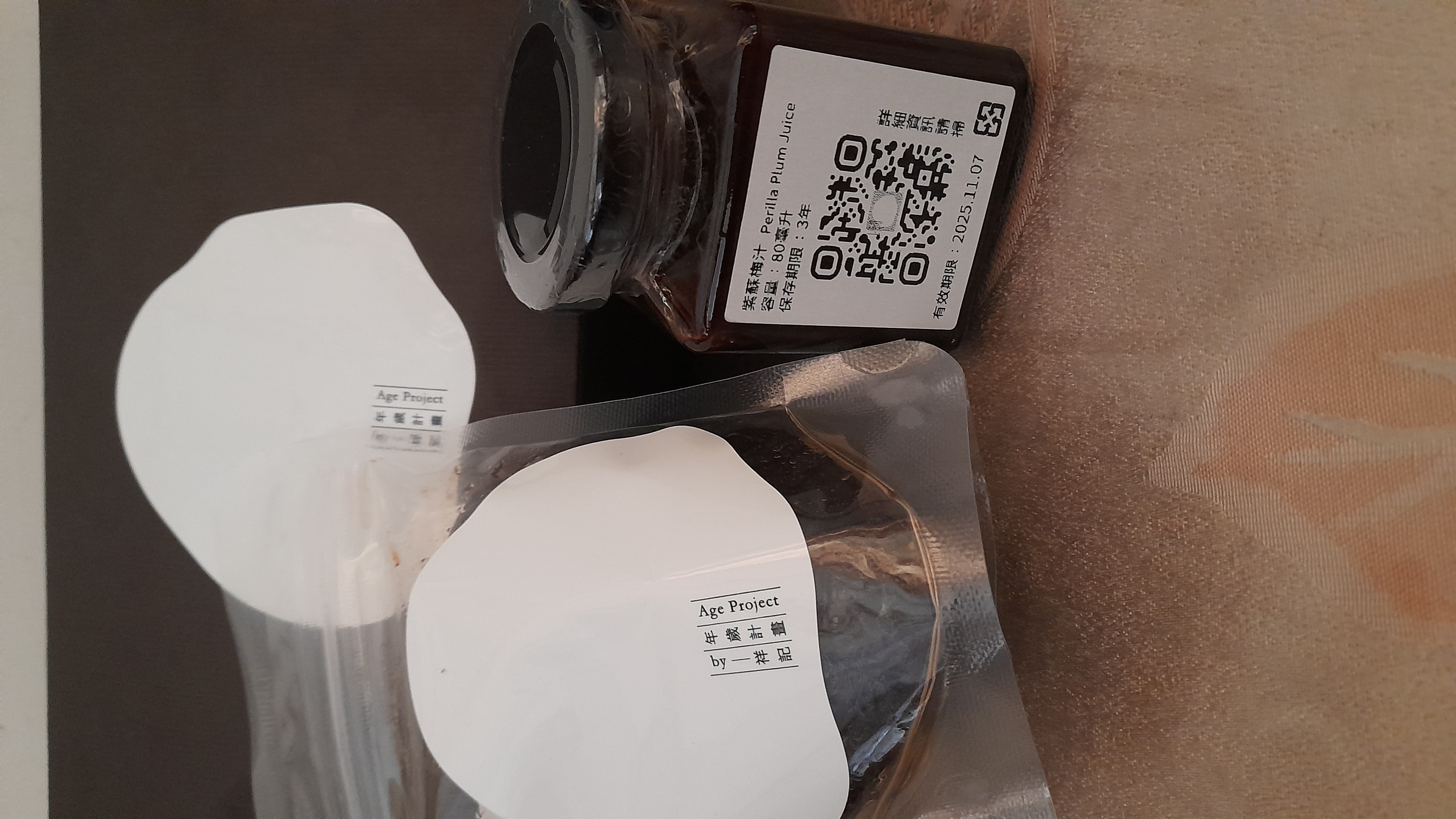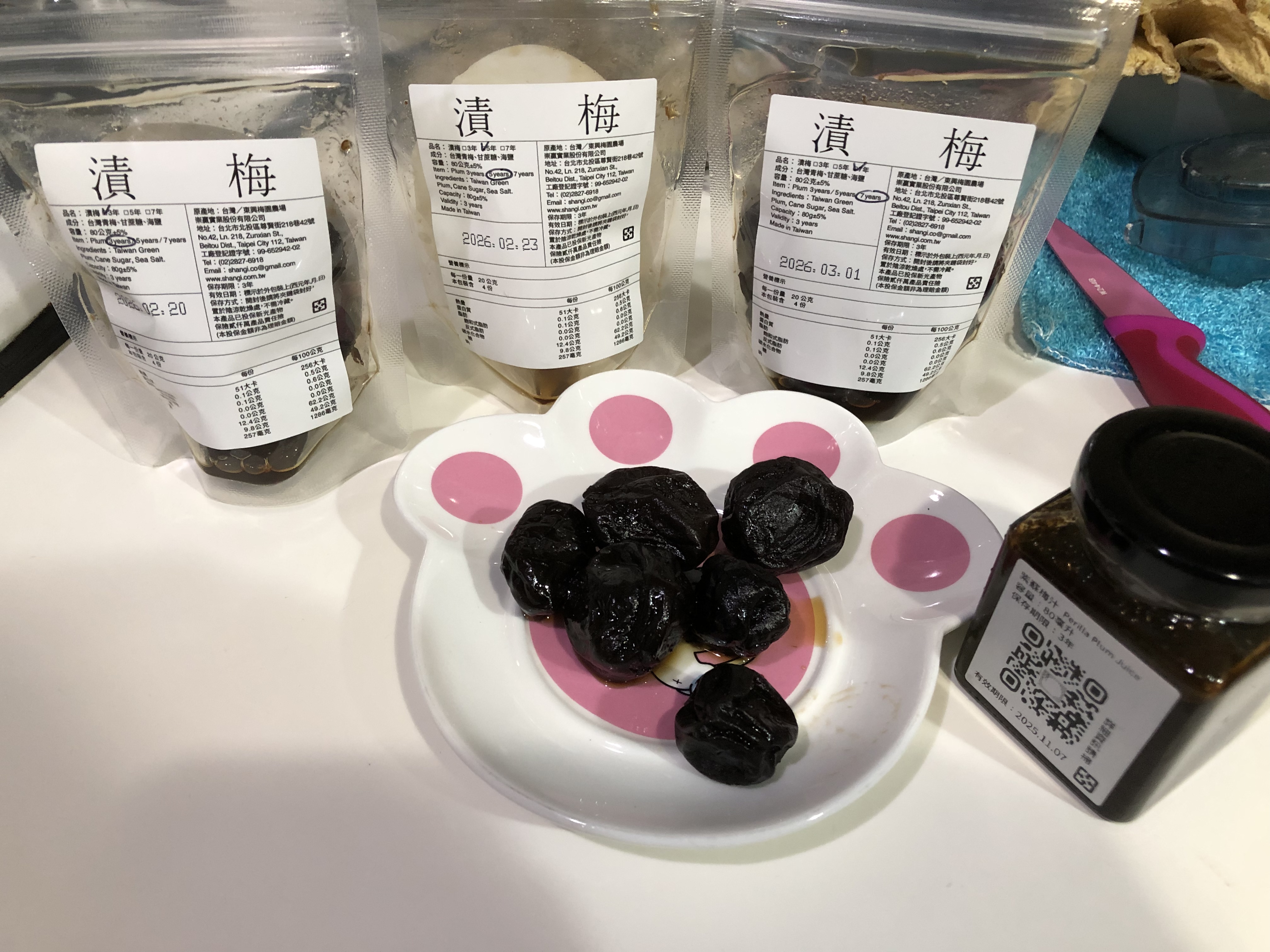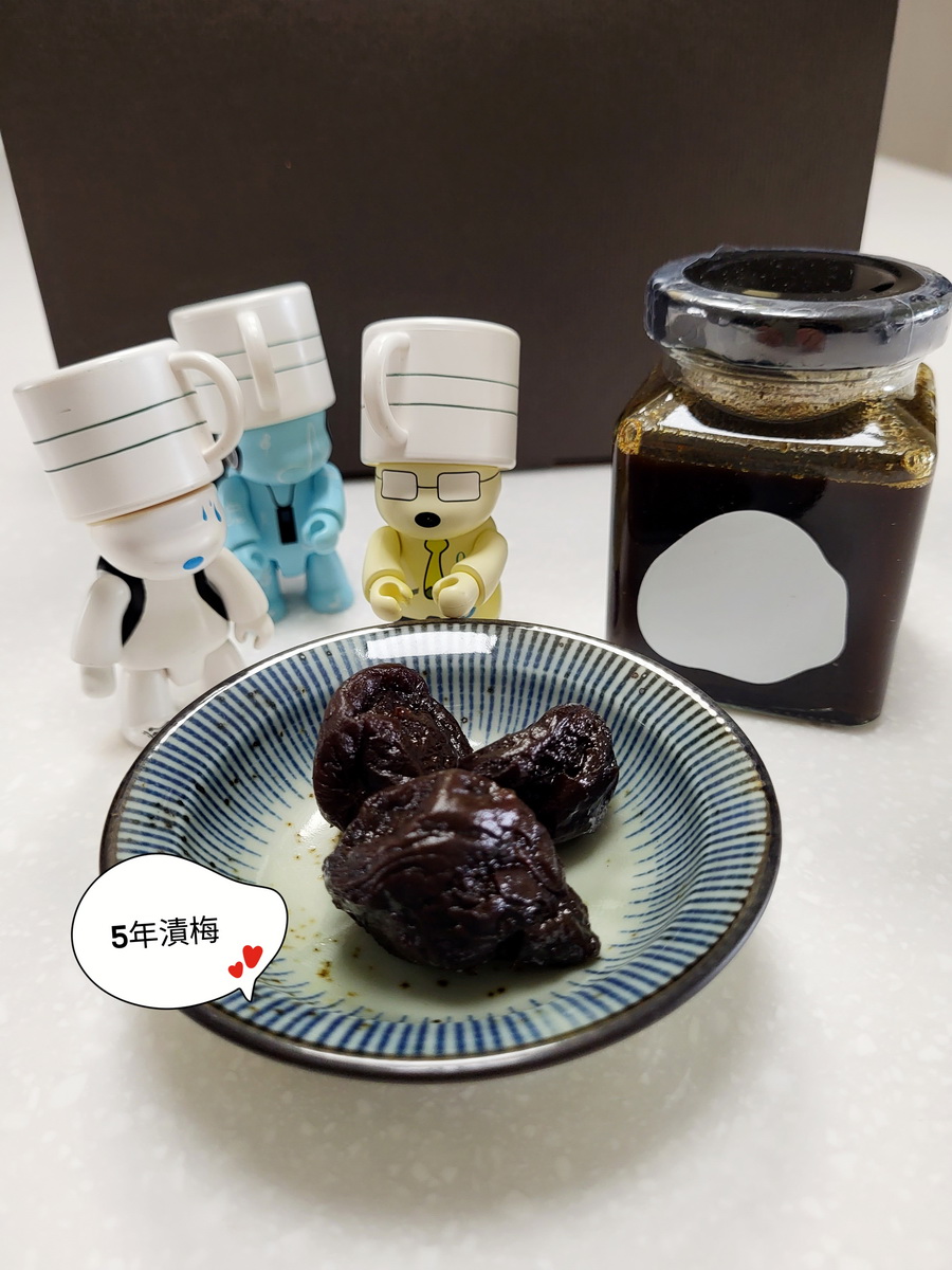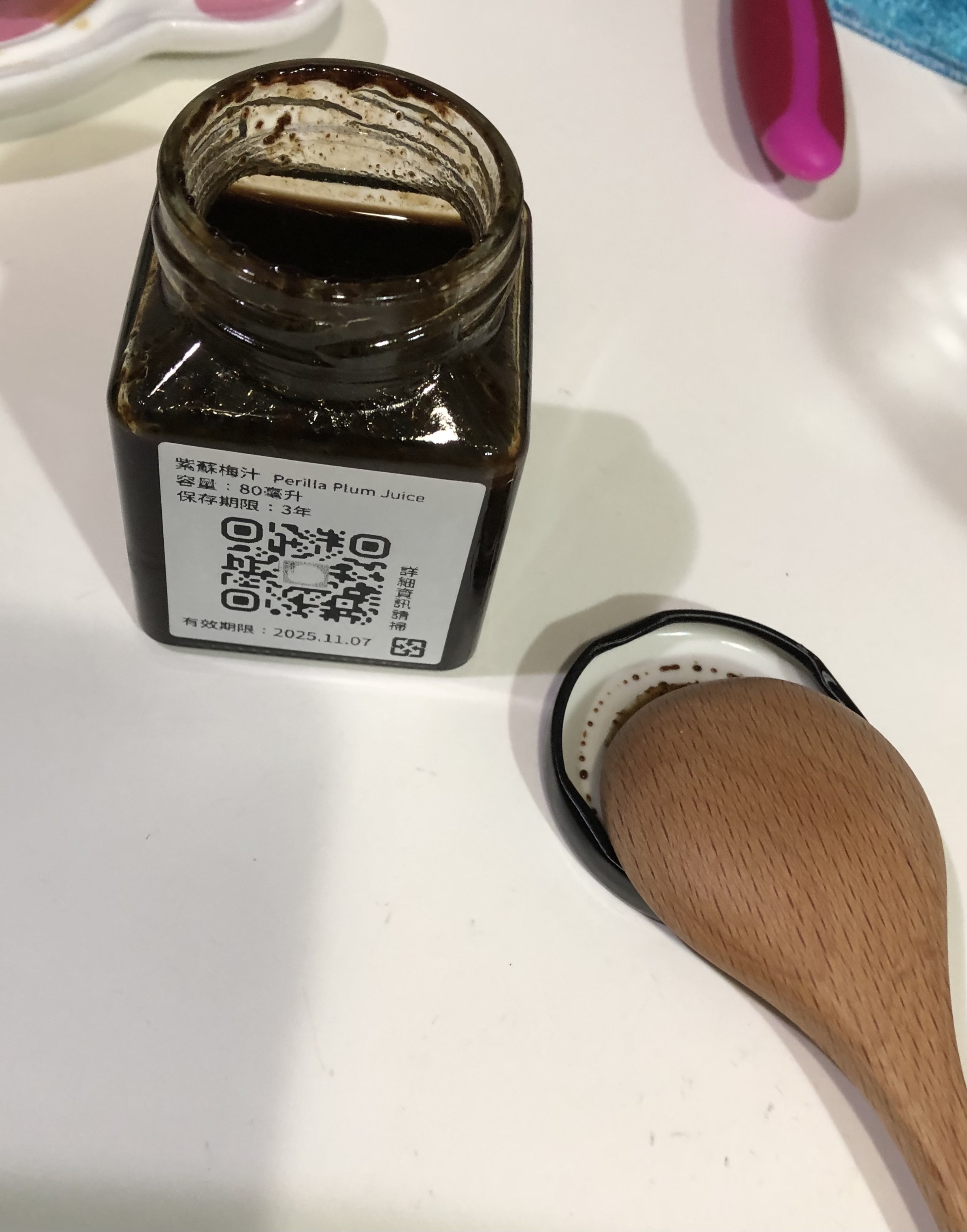 -一開始的包裝就很不一般,是用有厚度的紙容器,打開後有3年5年7年漬梅(各1小包)、紫蘇梅梅汁80ml(一小罐),小巧靈瓏,很適合隨身攜帶,吃不完的漬梅也可以再放入紫蘇梅汁罐中,很貼心的設計。最令人在意的口感來了。因為,成份只添加蔗糖和海鹽,所以七年漬梅對我來說最鹹,也最適合肚子吃太撐時的解膩;私心喜歡5年梅,不會太鹹但變酸了些,很剛好;而,三年梅,就微酸,鹹味明顯,但,不死鹹。剛吃完一顆7年梅,才不過10分鐘,肚子就沒那麼脹的感覺了,真是好物。
