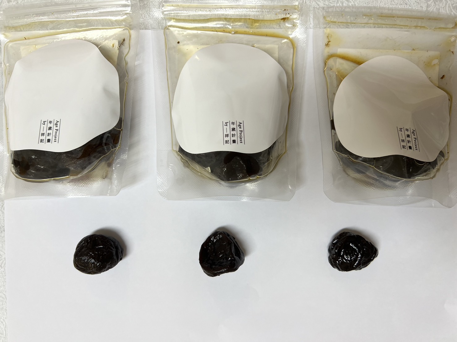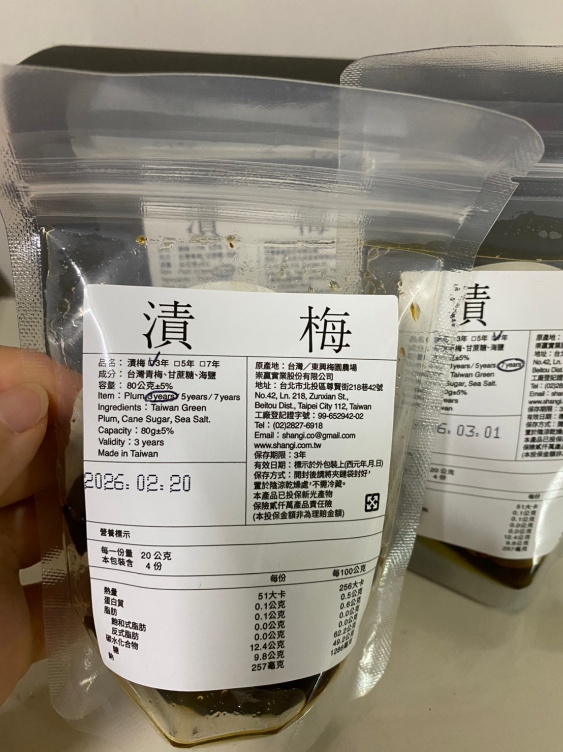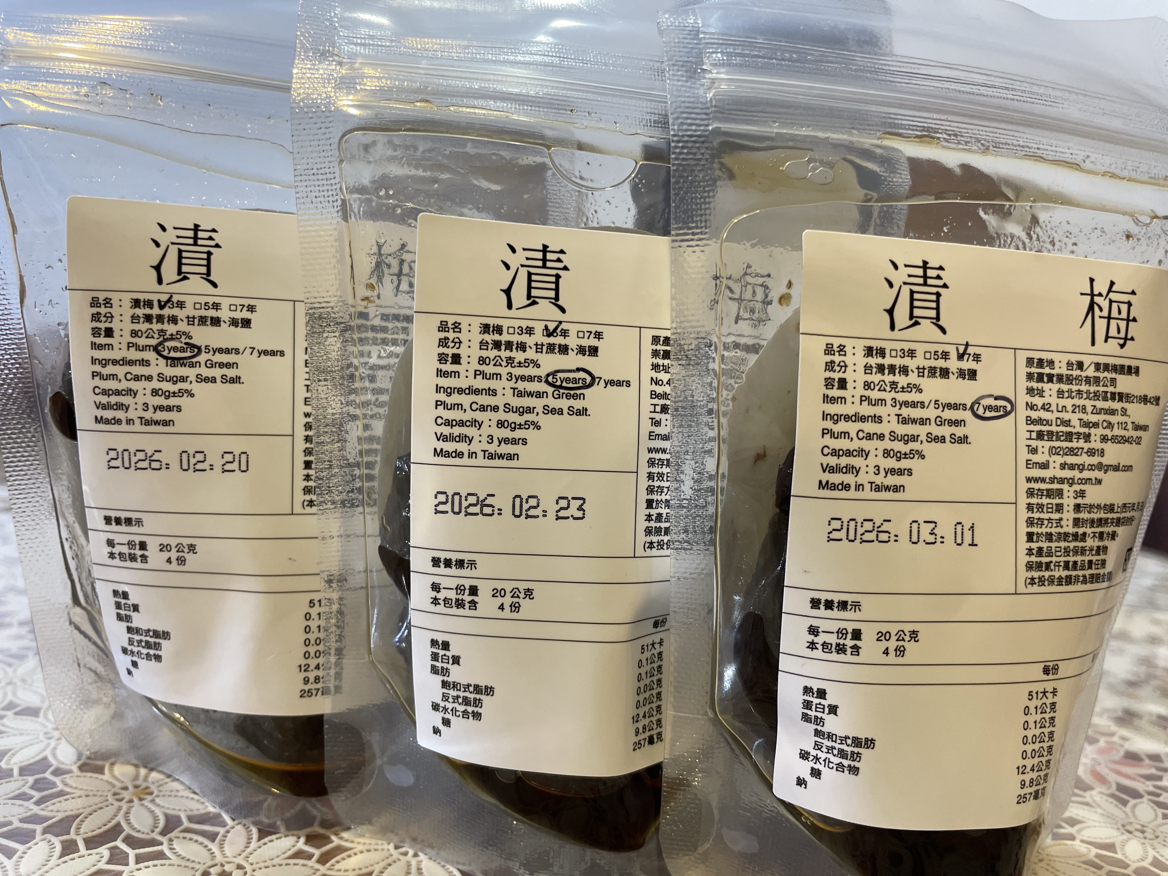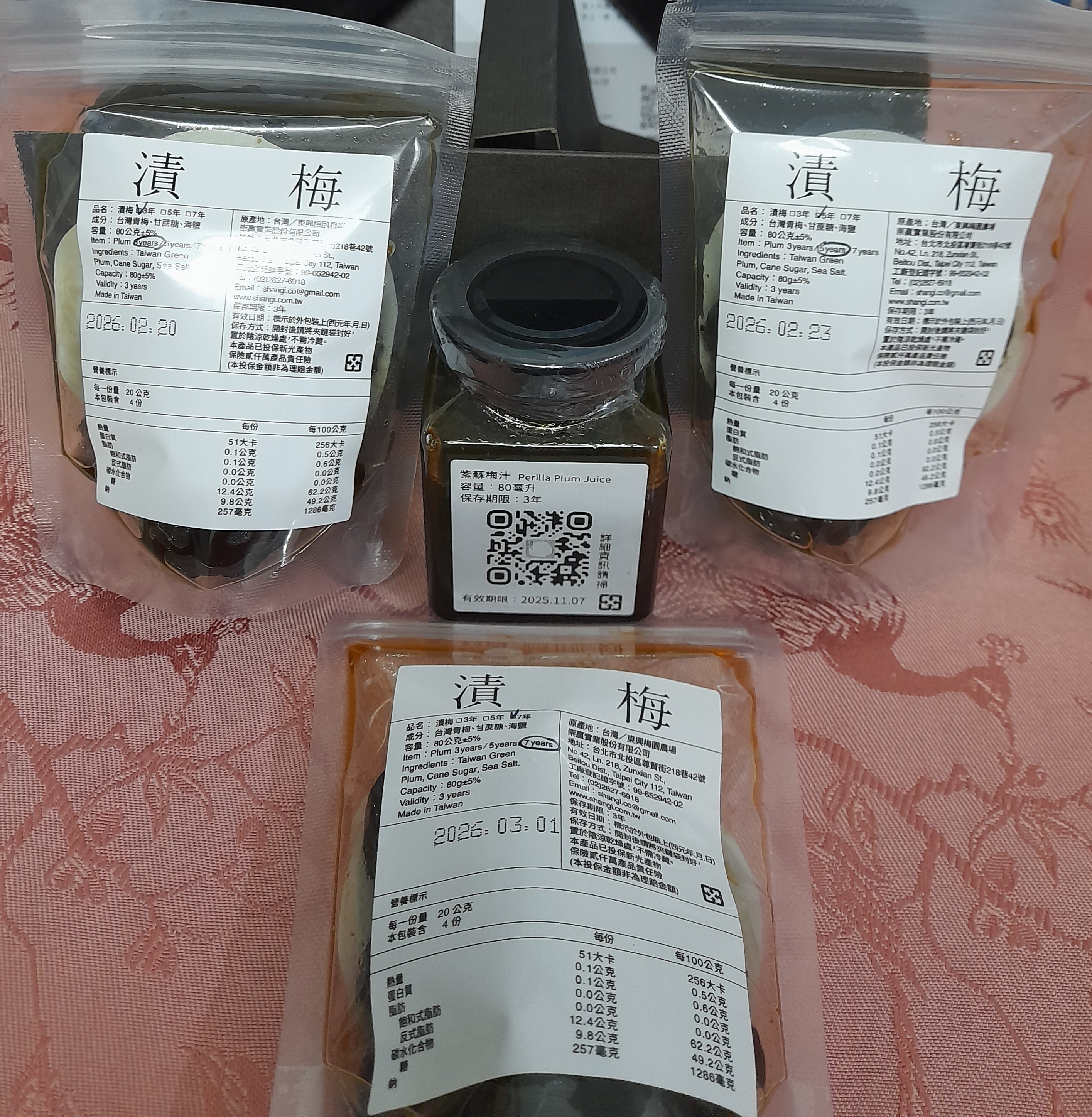 -一開始的包裝就很不一般,是用有厚度的紙容器,打開後有3年5年7年漬梅(各1小包)、紫蘇梅梅汁80ml(一小罐),小巧靈瓏,很適合隨身攜帶,吃不完的漬梅也可以再放入紫蘇梅汁罐中,很貼心的設計。最令人在意的口感來了。因為,成份只添加蔗糖和海鹽,所以七年漬梅對我來說最鹹,也最適合肚子吃太撐時的解膩;私心喜歡5年梅,不會太鹹但變酸了些,很剛好;而,三年梅,就微酸,鹹味明顯,但,不死鹹。剛吃完一顆7年梅,才不過10分鐘,肚子就沒那麼脹的感覺了,真是好物。