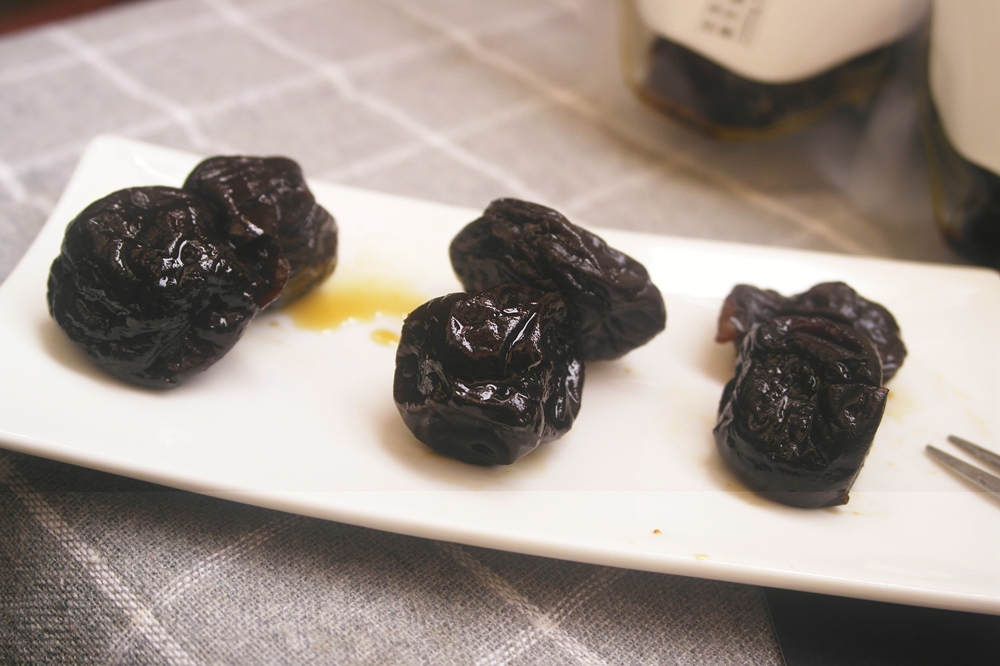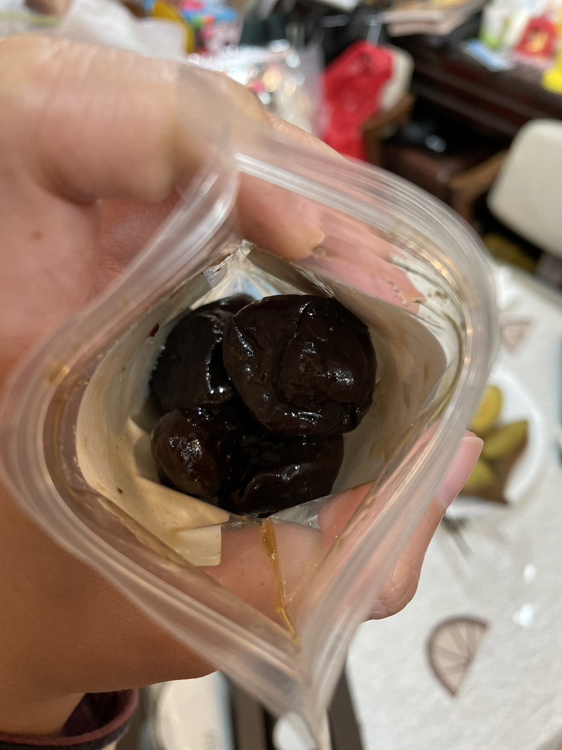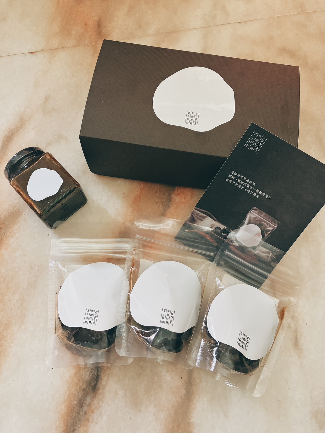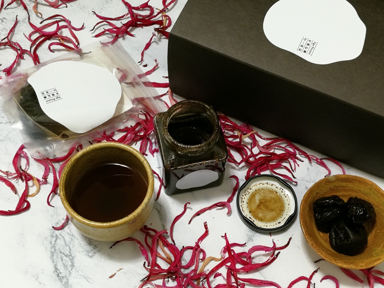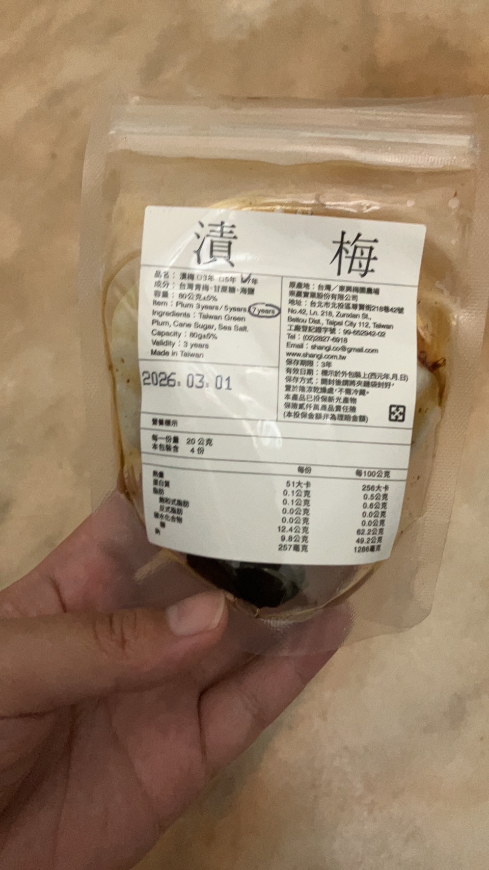 -一開始的包裝就很不一般,是用有厚度的紙容器,打開後有3年5年7年漬梅(各1小包)、紫蘇梅梅汁80ml(一小罐),小巧靈瓏,很適合隨身攜帶,吃不完的漬梅也可以再放入紫蘇梅汁罐中,很貼心的設計。最令人在意的口感來了。因為,成份只添加蔗糖和海鹽,所以七年漬梅對我來說最鹹,也最適合肚子吃太撐時的解膩;私心喜歡5年梅,不會太鹹但變酸了些,很剛好;而,三年梅,就微酸,鹹味明顯,但,不死鹹。剛吃完一顆7年梅,才不過10分鐘,肚子就沒那麼脹的感覺了,真是好物。