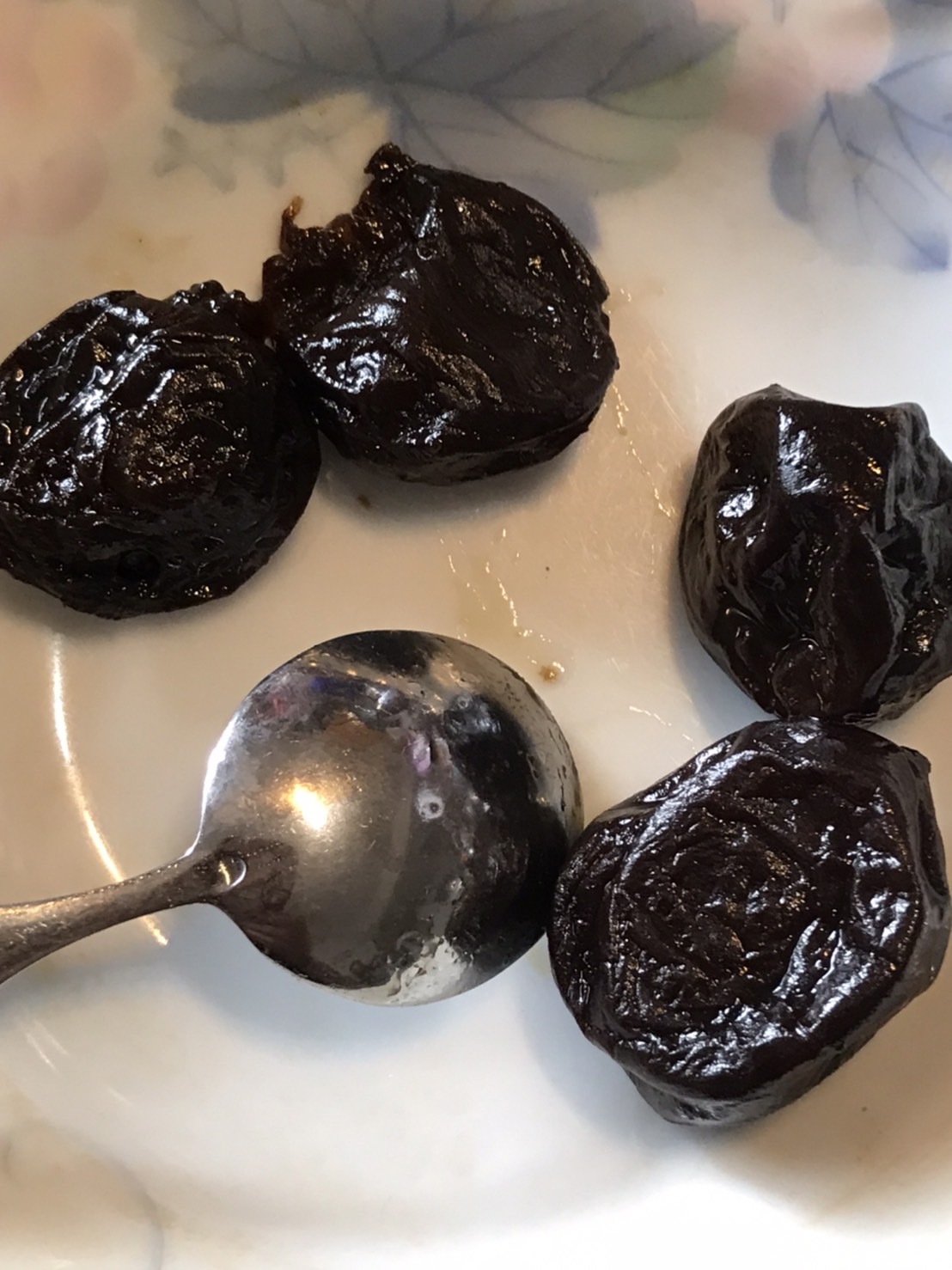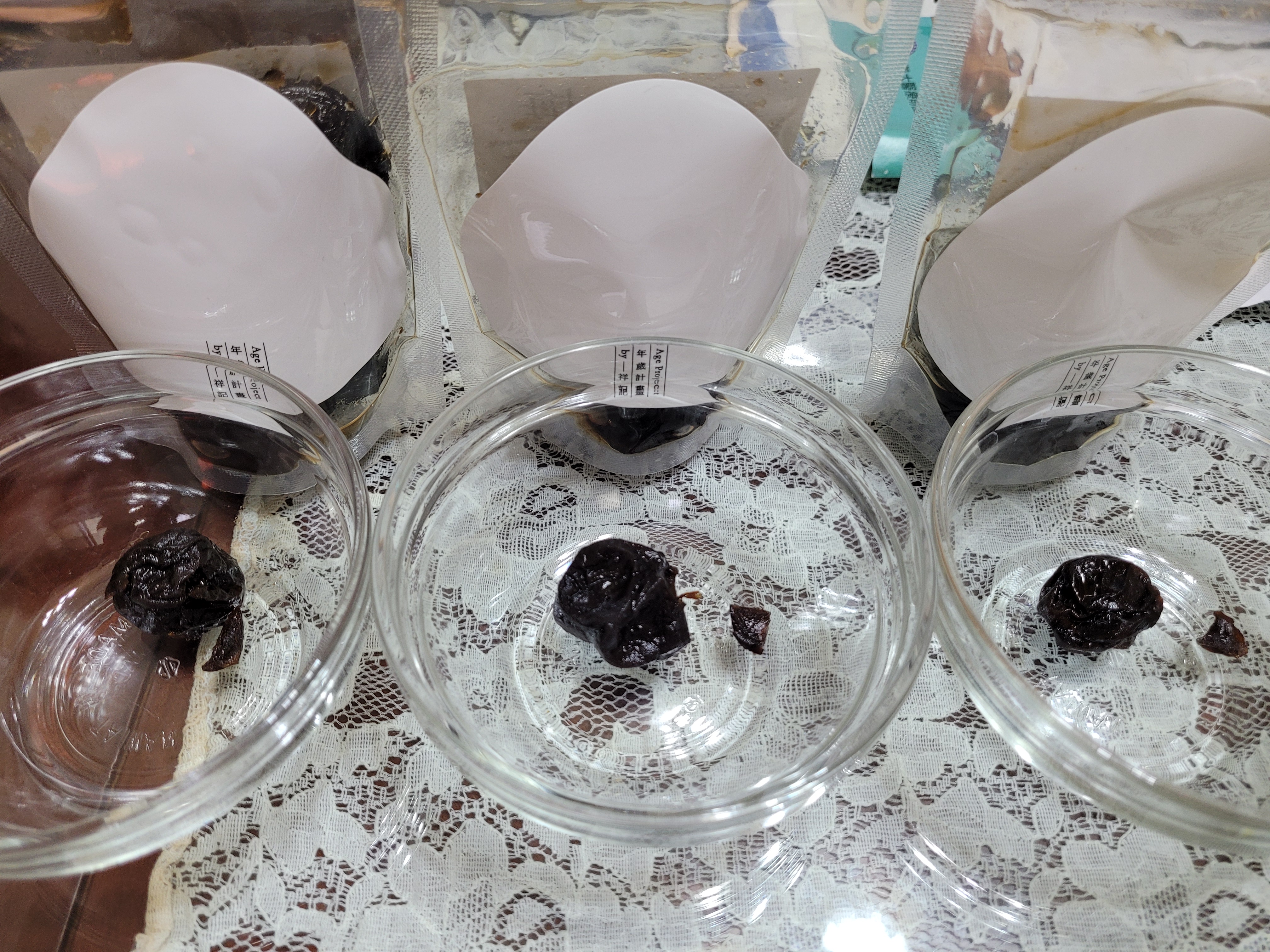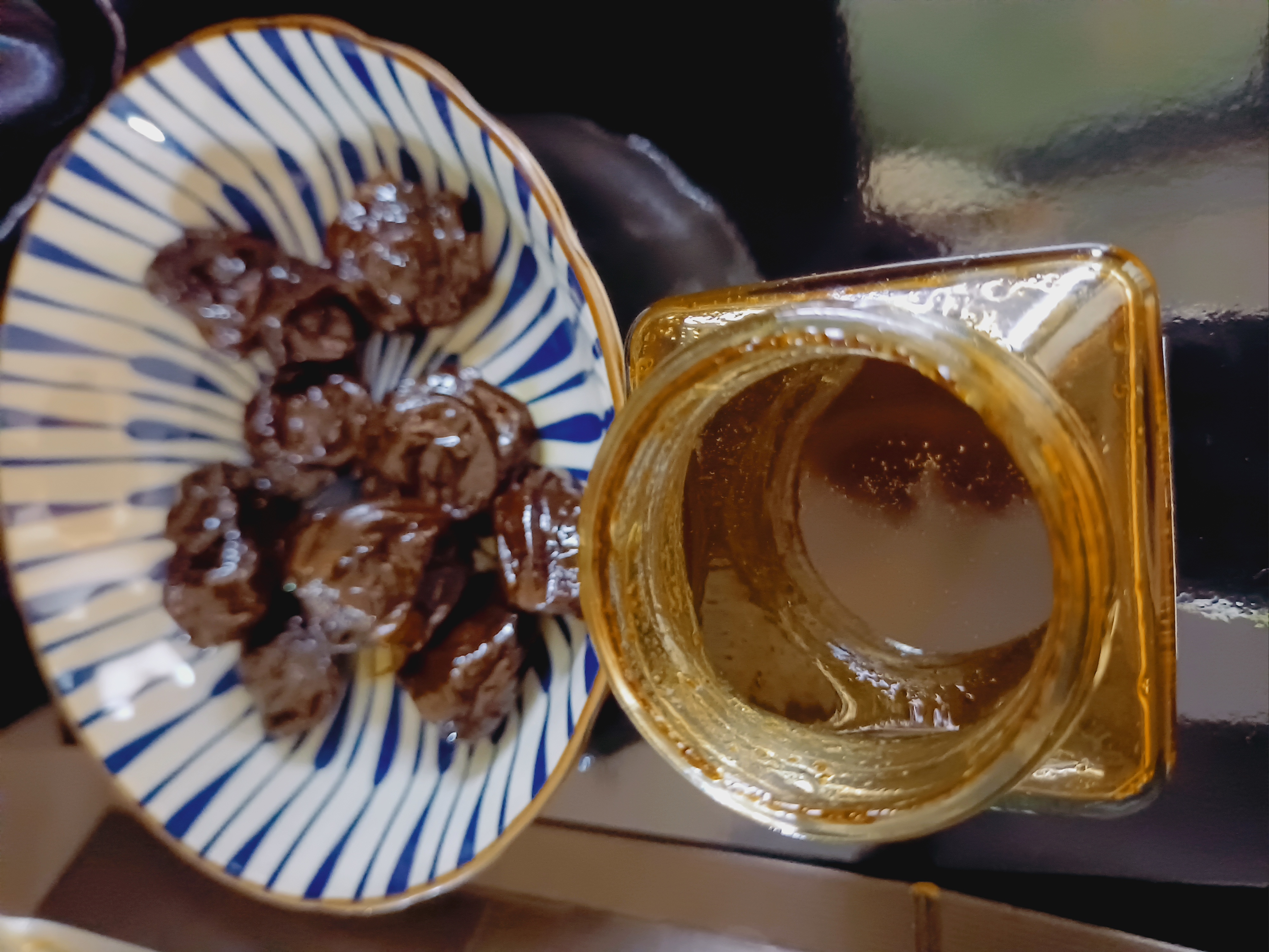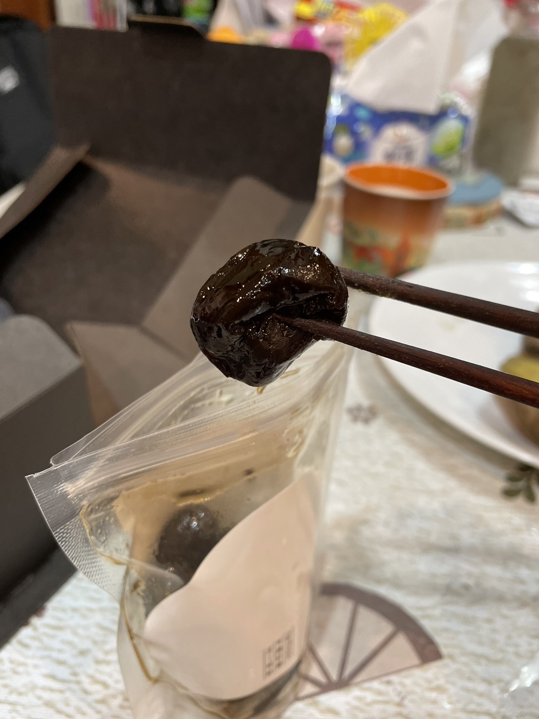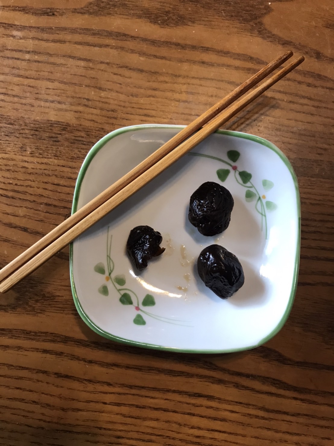 -一開始的包裝就很不一般,是用有厚度的紙容器,打開後有3年5年7年漬梅(各1小包)、紫蘇梅梅汁80ml(一小罐),小巧靈瓏,很適合隨身攜帶,吃不完的漬梅也可以再放入紫蘇梅汁罐中,很貼心的設計。最令人在意的口感來了。因為,成份只添加蔗糖和海鹽,所以七年漬梅對我來說最鹹,也最適合肚子吃太撐時的解膩;私心喜歡5年梅,不會太鹹但變酸了些,很剛好;而,三年梅,就微酸,鹹味明顯,但,不死鹹。剛吃完一顆7年梅,才不過10分鐘,肚子就沒那麼脹的感覺了,真是好物。