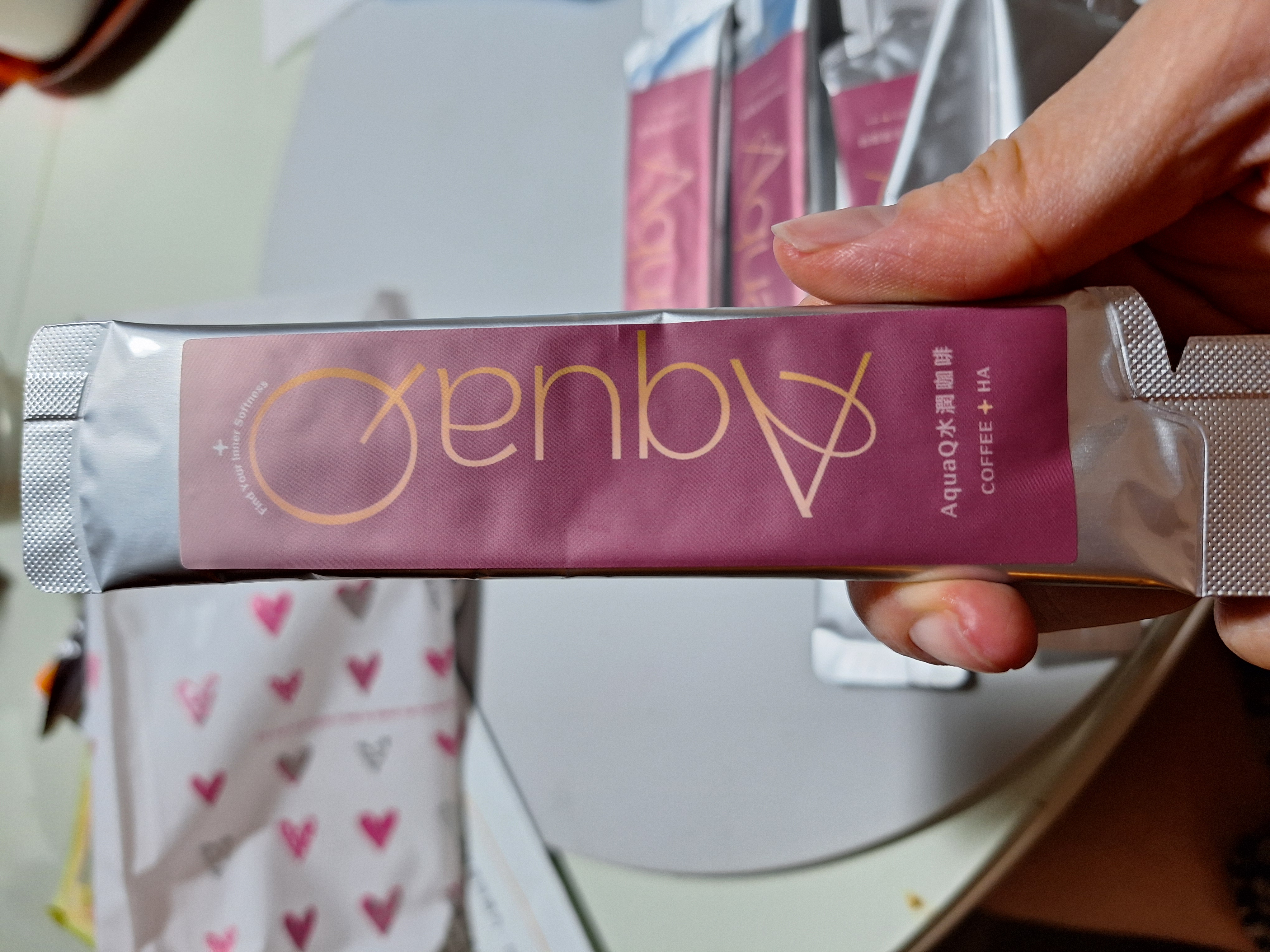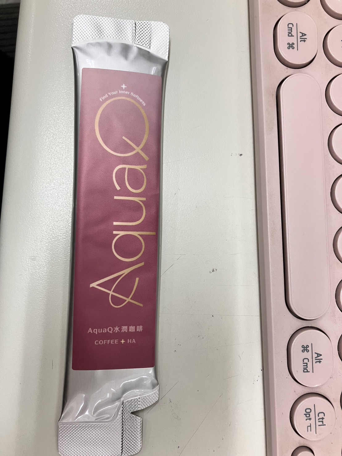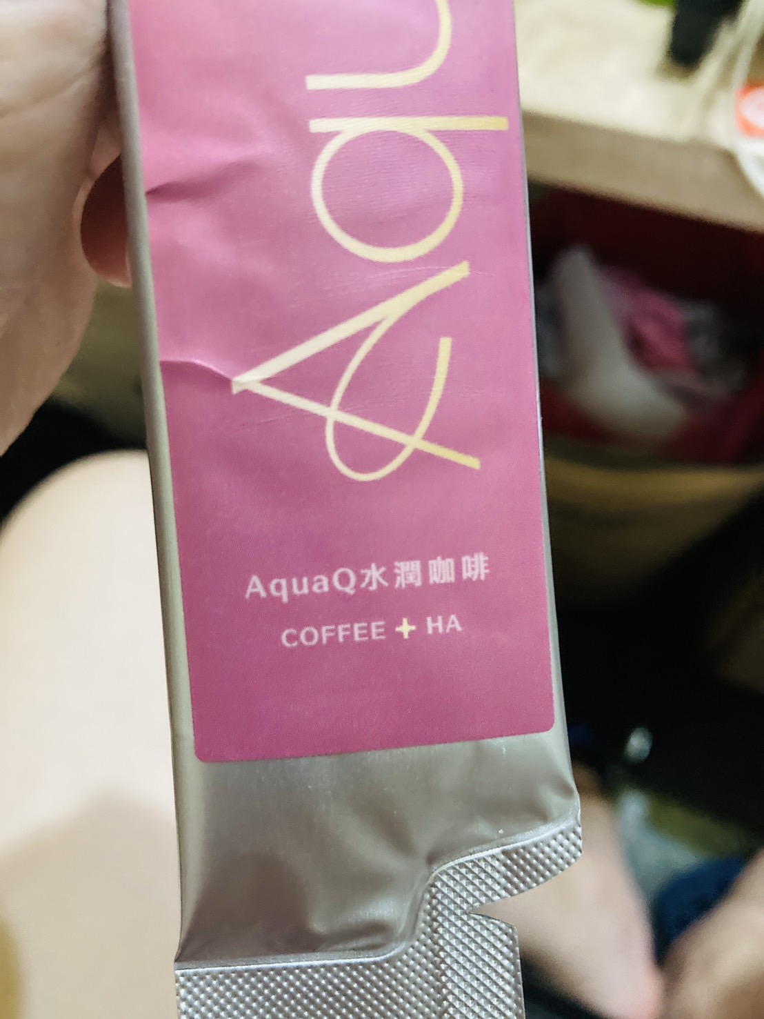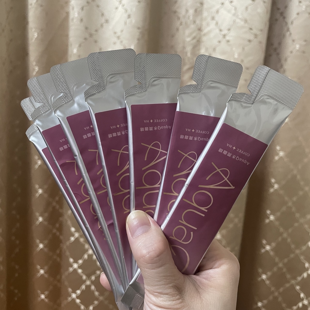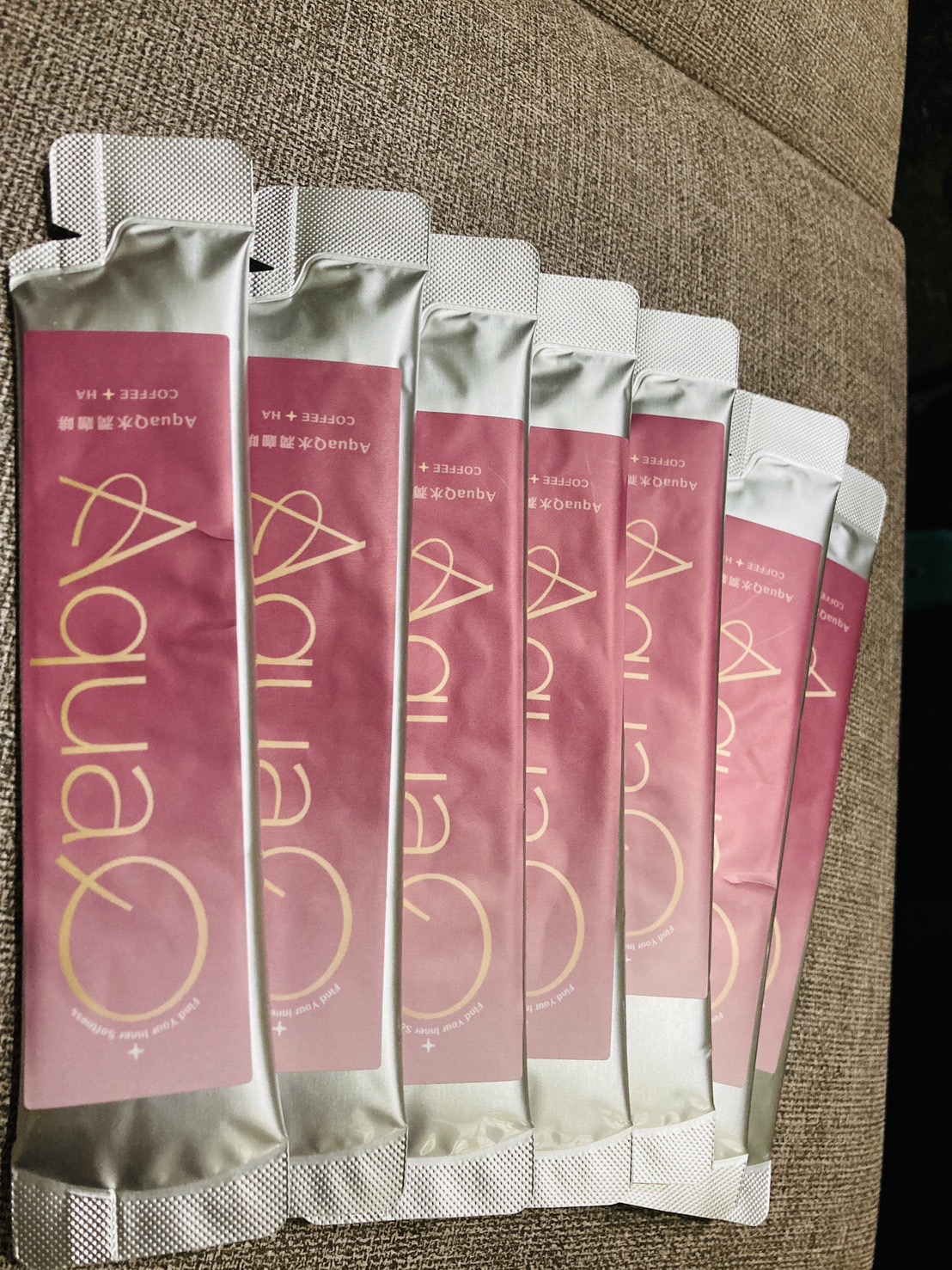 AquaQ 水潤咖啡,強調七日水潤有感、Q彈。體驗包有7入,因體驗品尚在開發測試階段,收到是裸裝,蠻可惜看不到完整的產品包裝設計。
