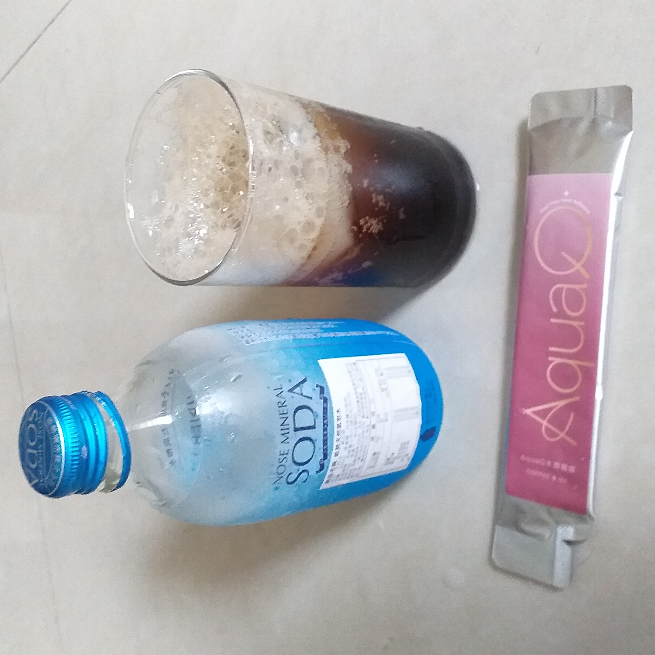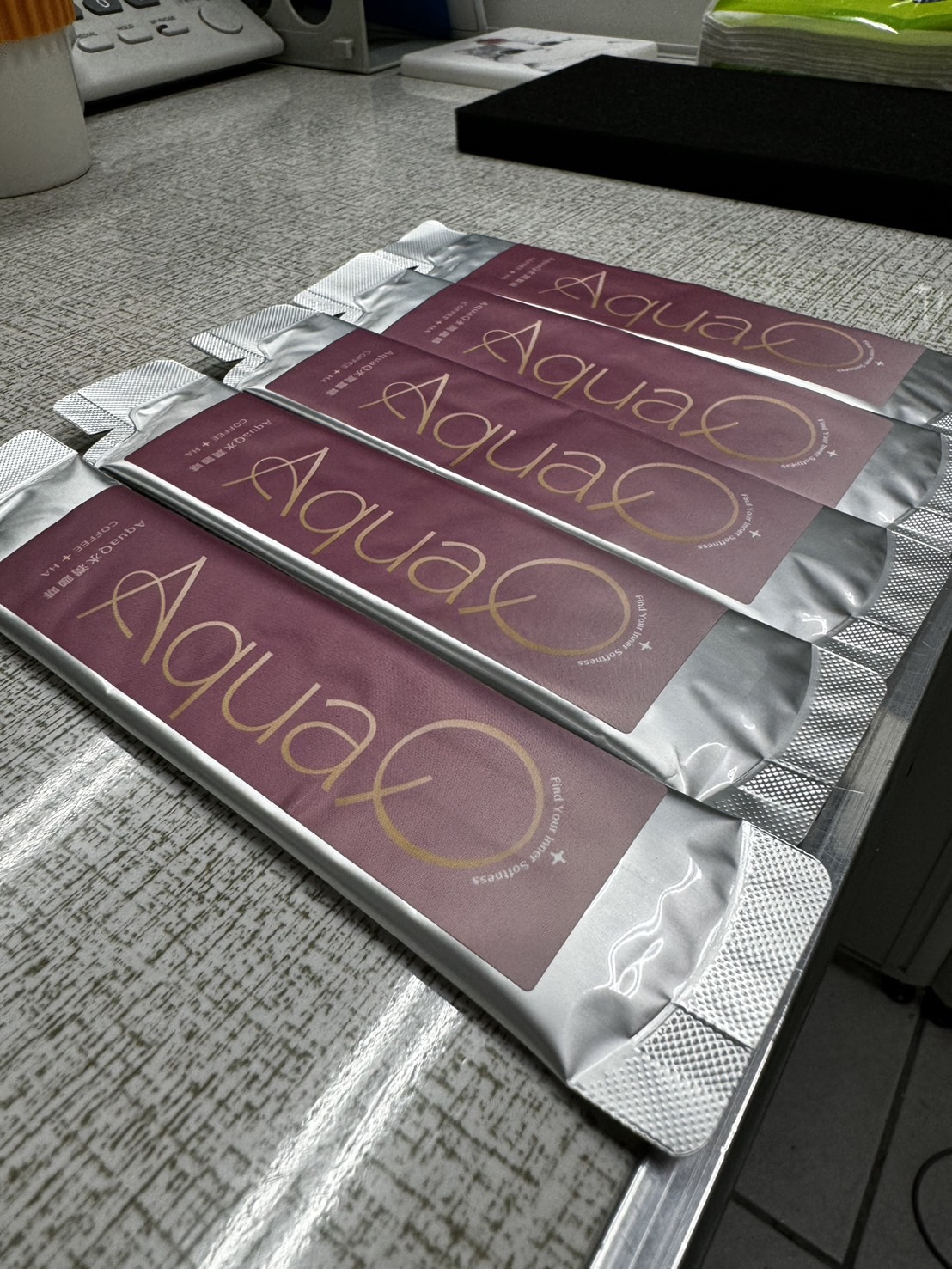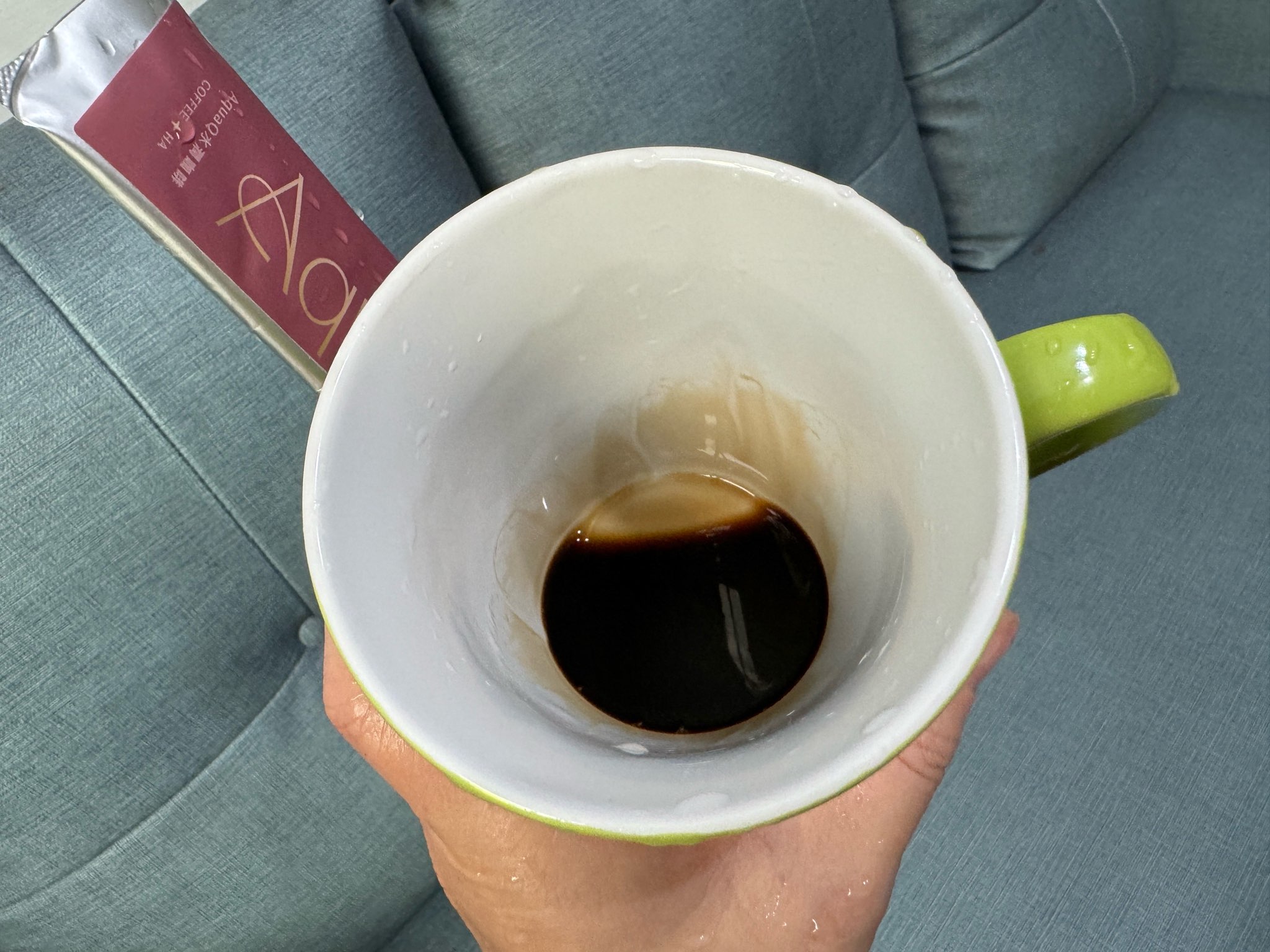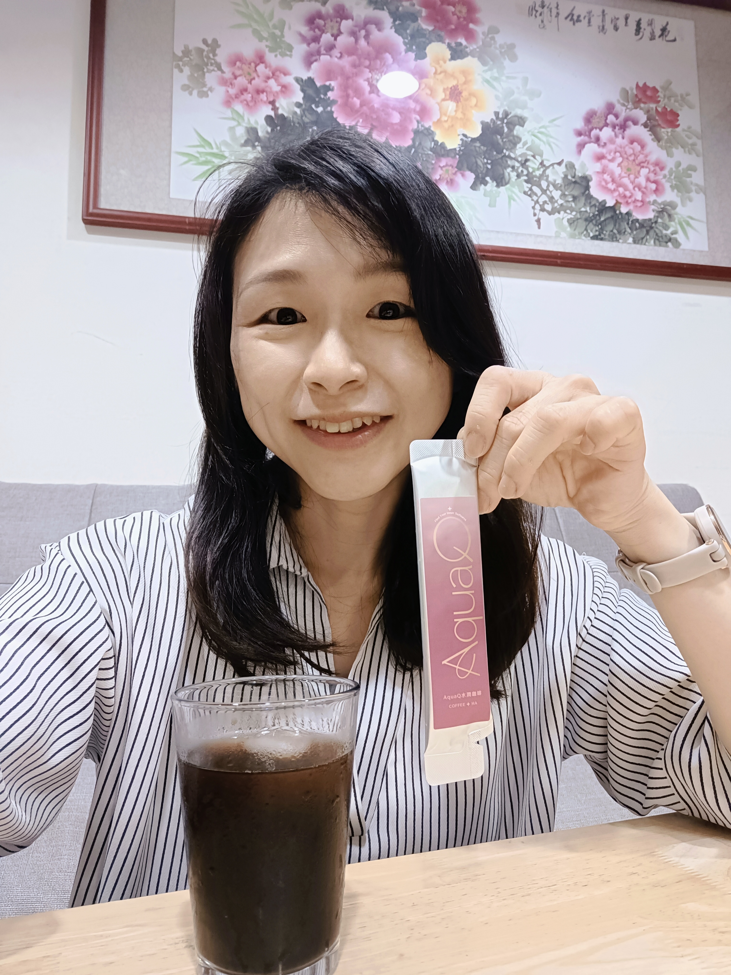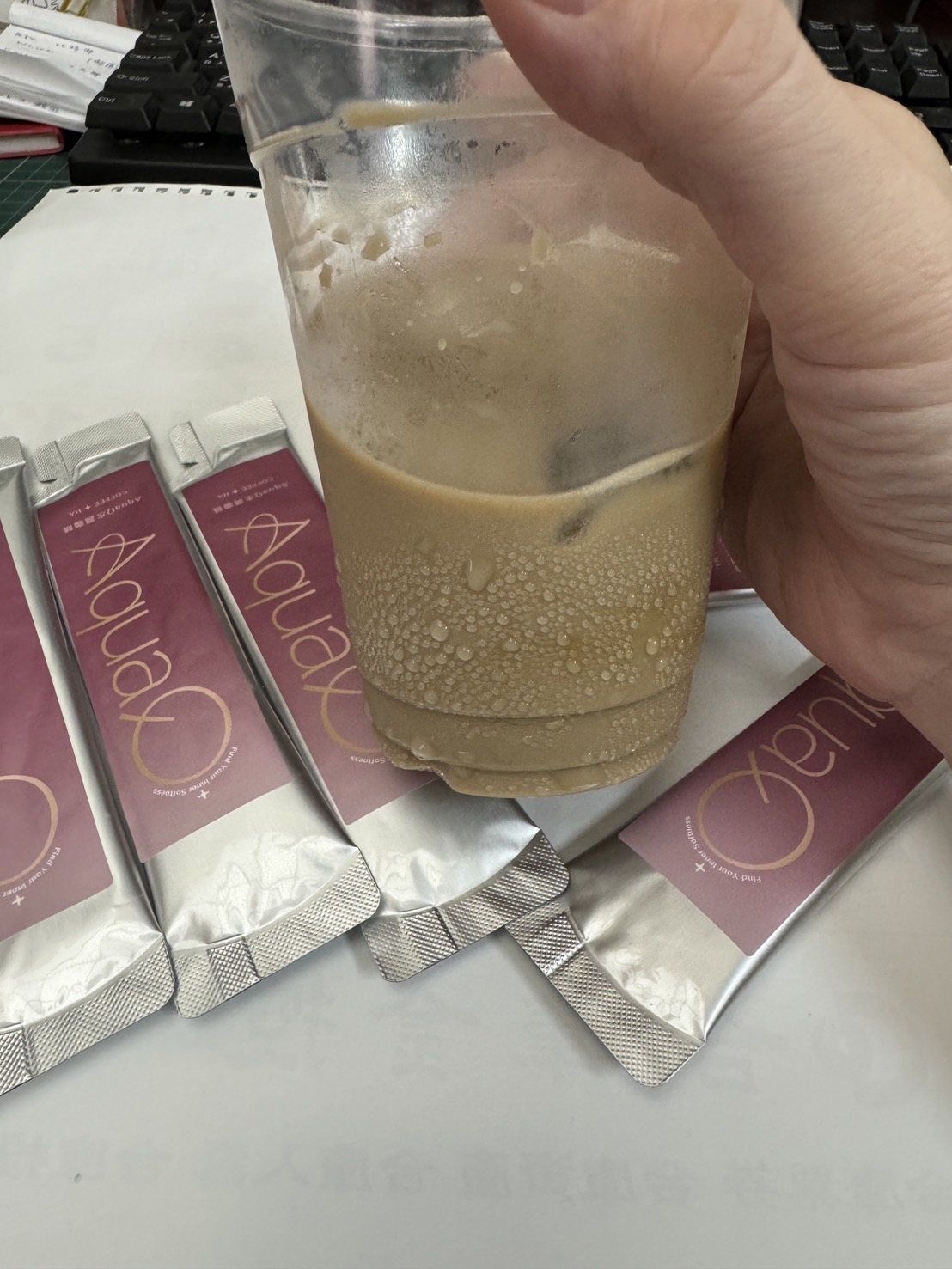 本次體驗AquaQ 水潤咖啡,號稱有添加口服玻尿酸的咖啡,濃度達95%以上。一包約20ml,應該是濃縮的咖啡,因為手邊沒有熱水,我是加冰水做成冰美式,喝起來還滿順口的。目前還沒感覺到玻尿酸的功效,可能要再多喝一陣子吧。