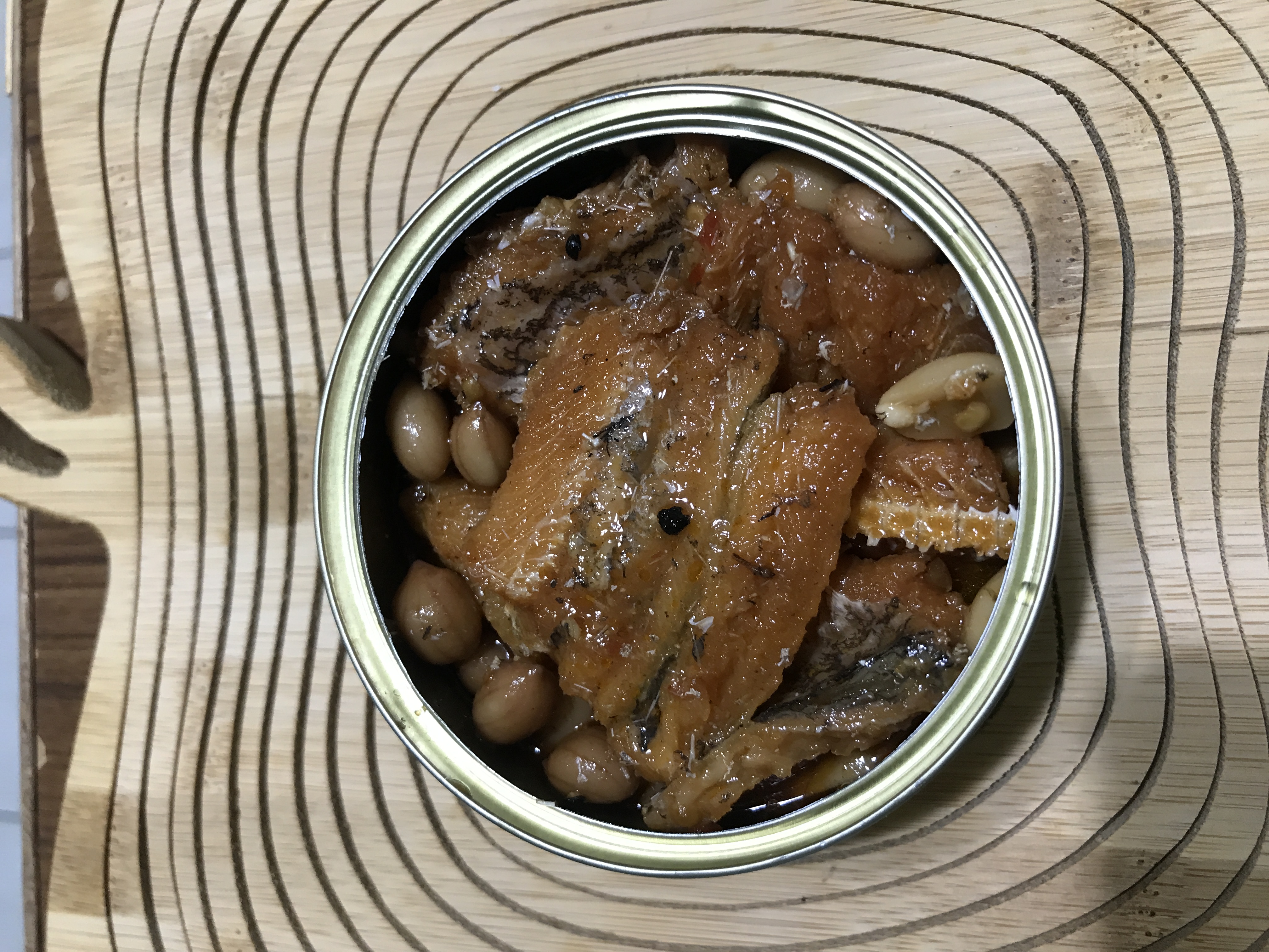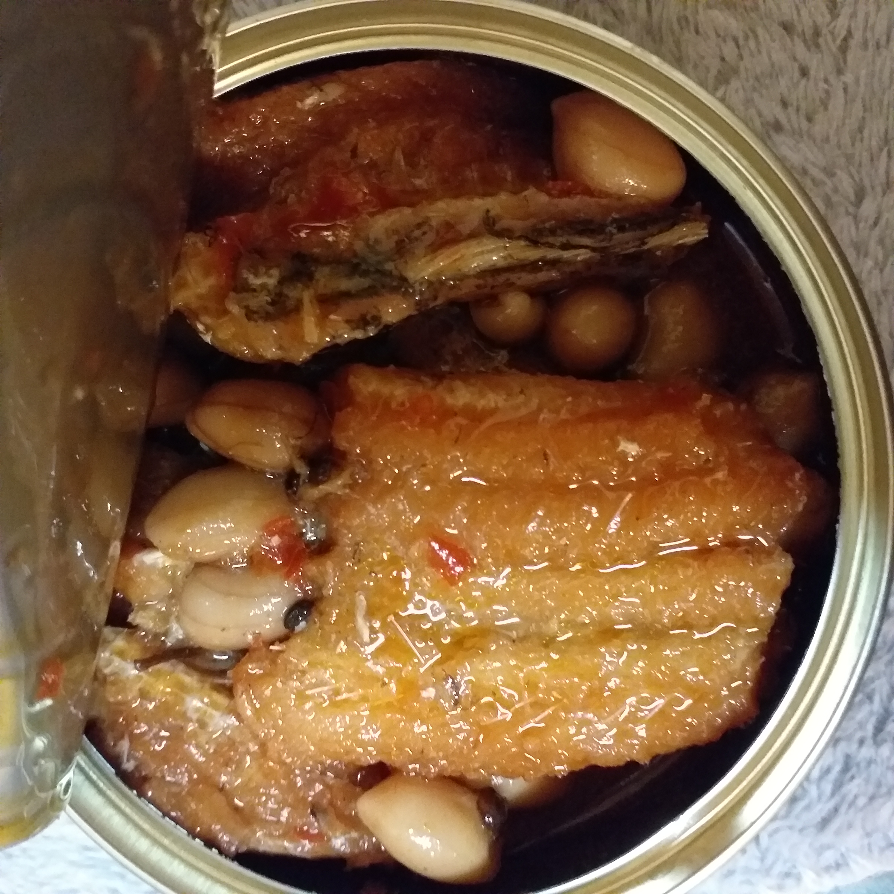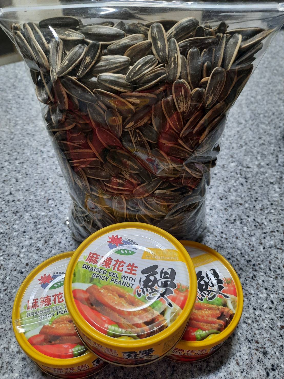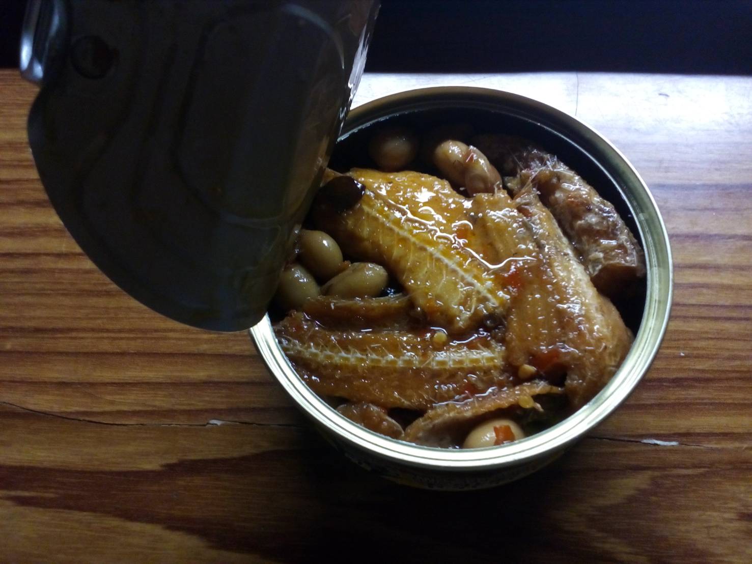 一開罐頭就看到滿滿的鰻魚跟花生,也可以看到花椒粒、辣椒、辣椒籽,很真材實料,鰻魚也都挺完整的