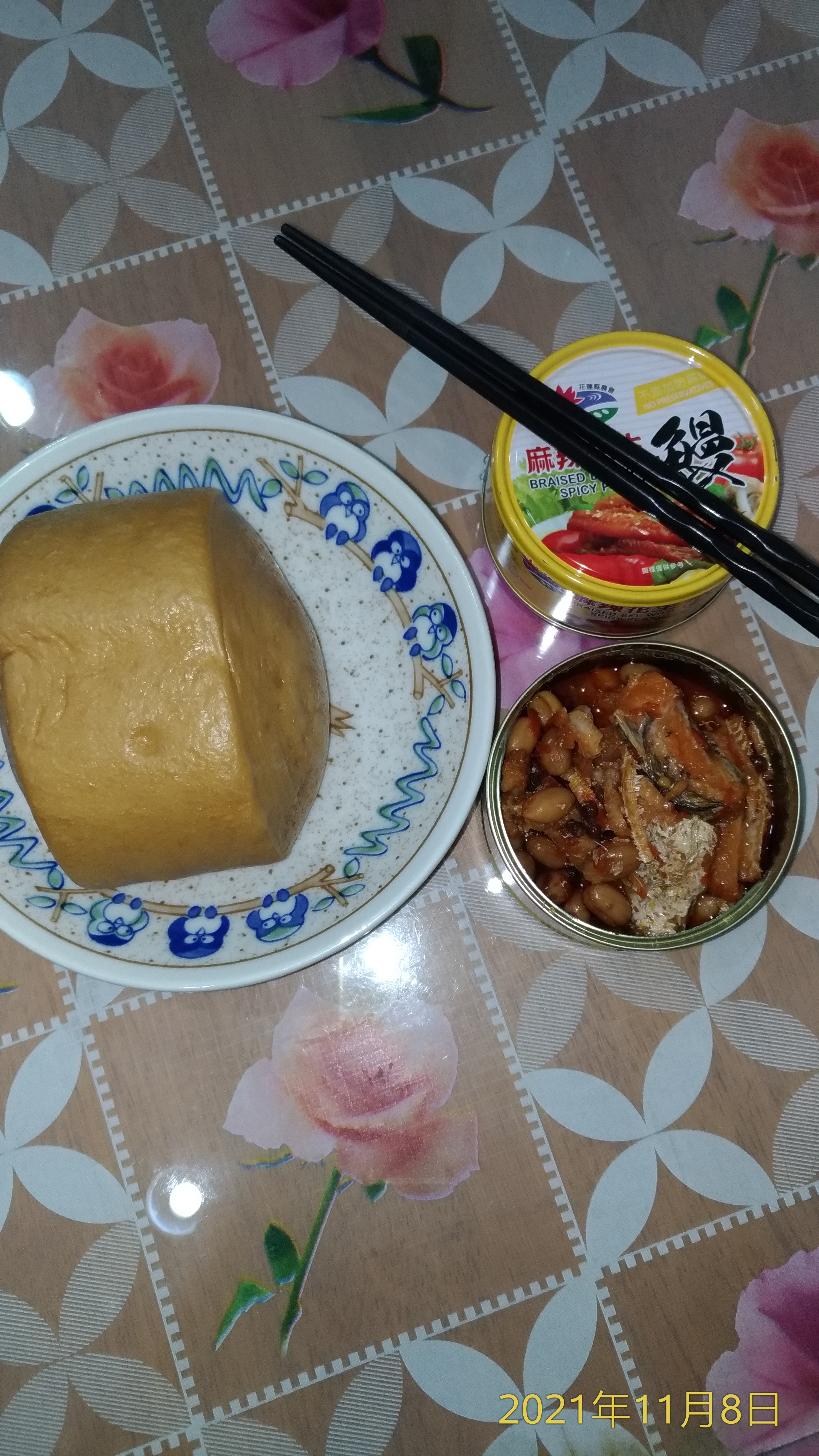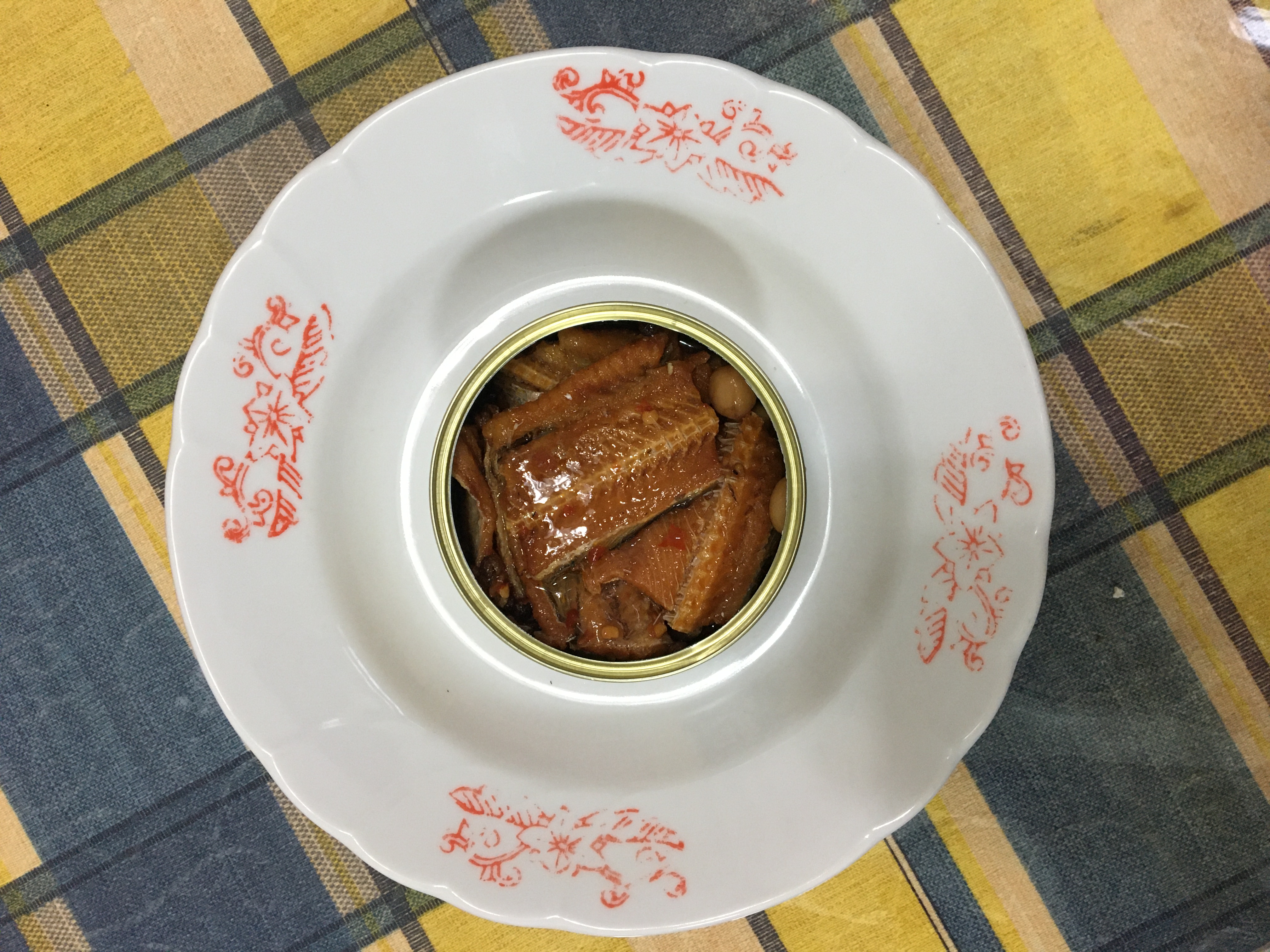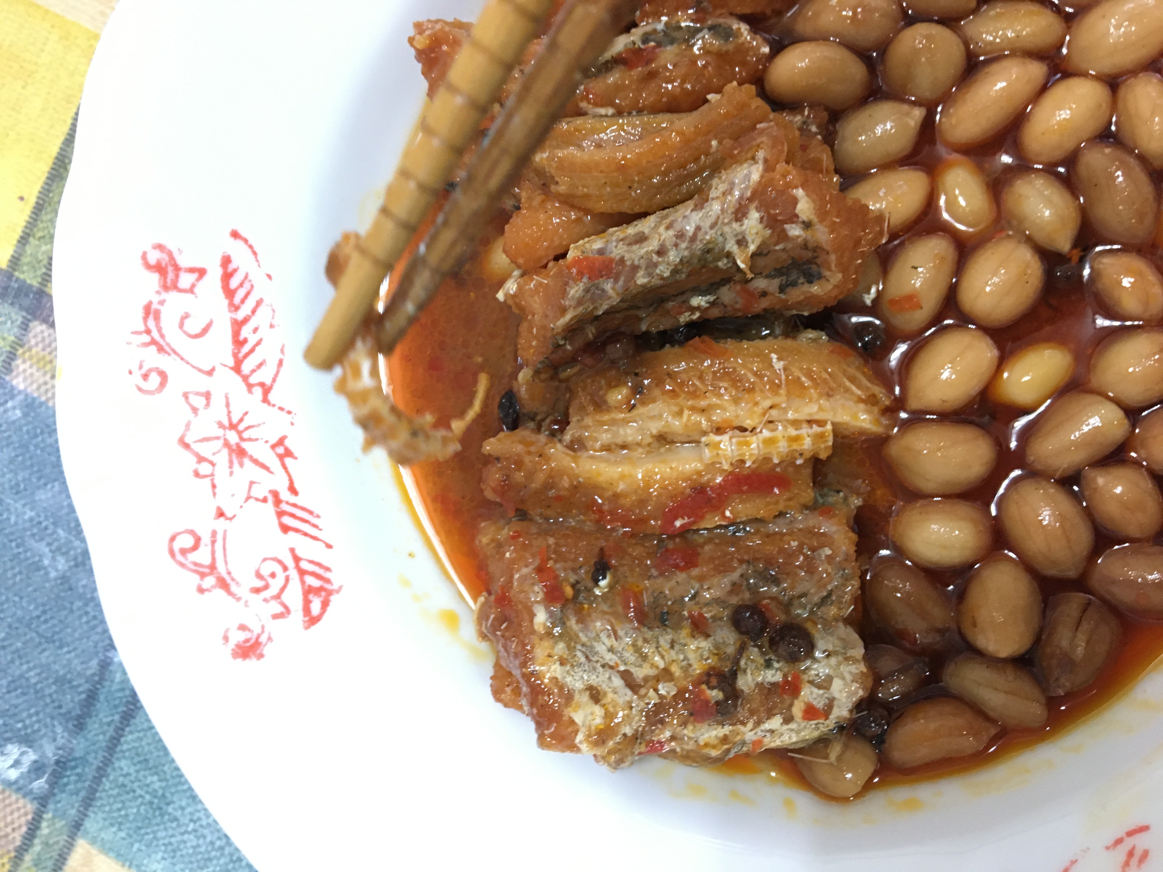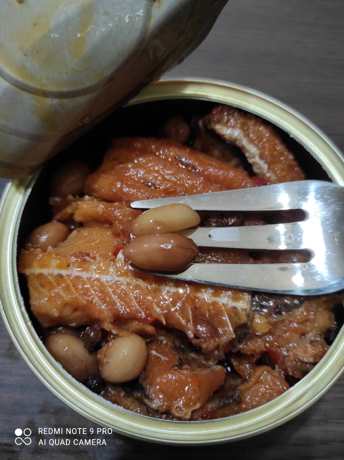 罐頭的調味跟一般市面上賣的罐頭一樣是甜鹹紅燒味,但增添了花椒的香氣和花生粒。