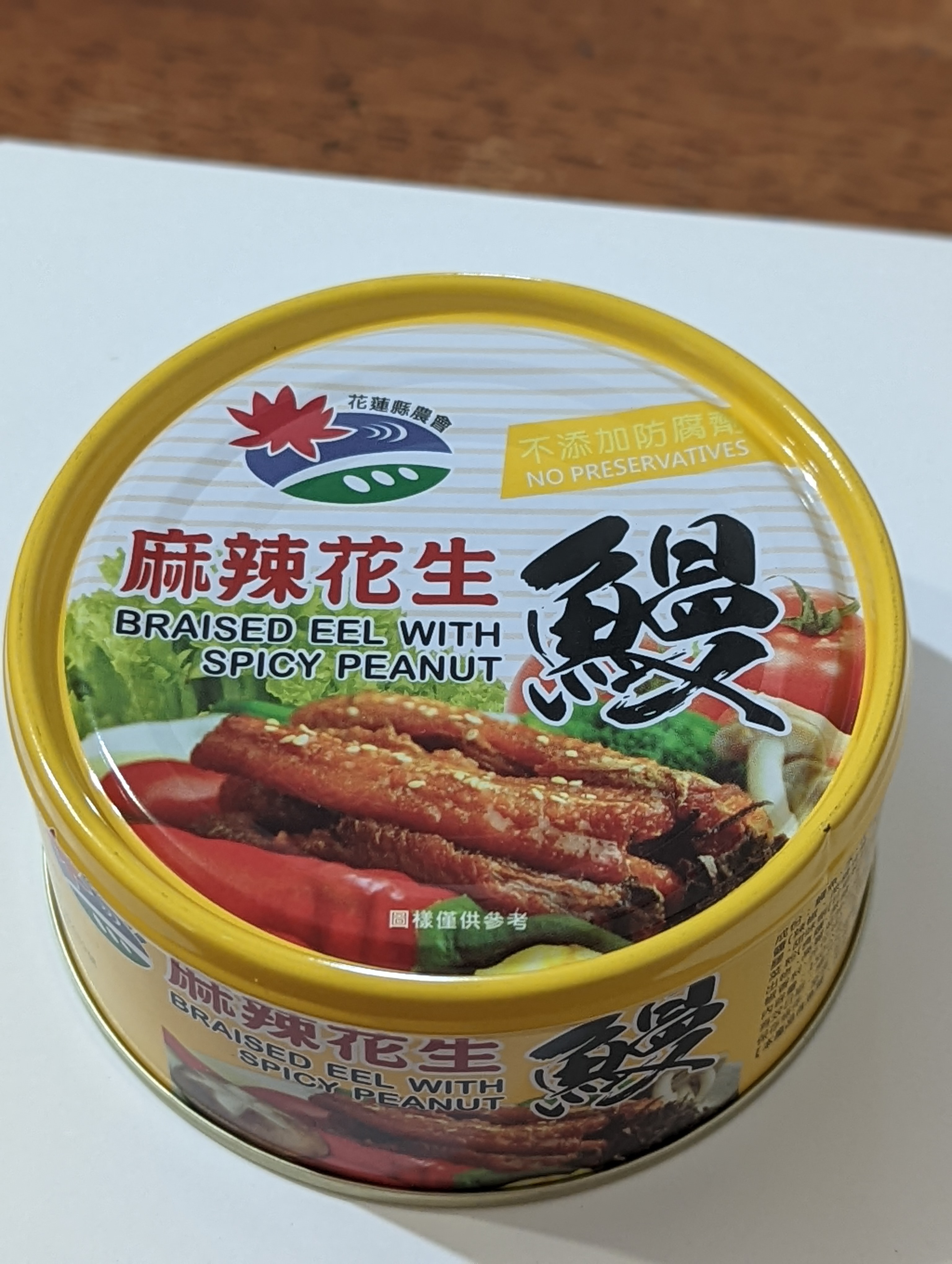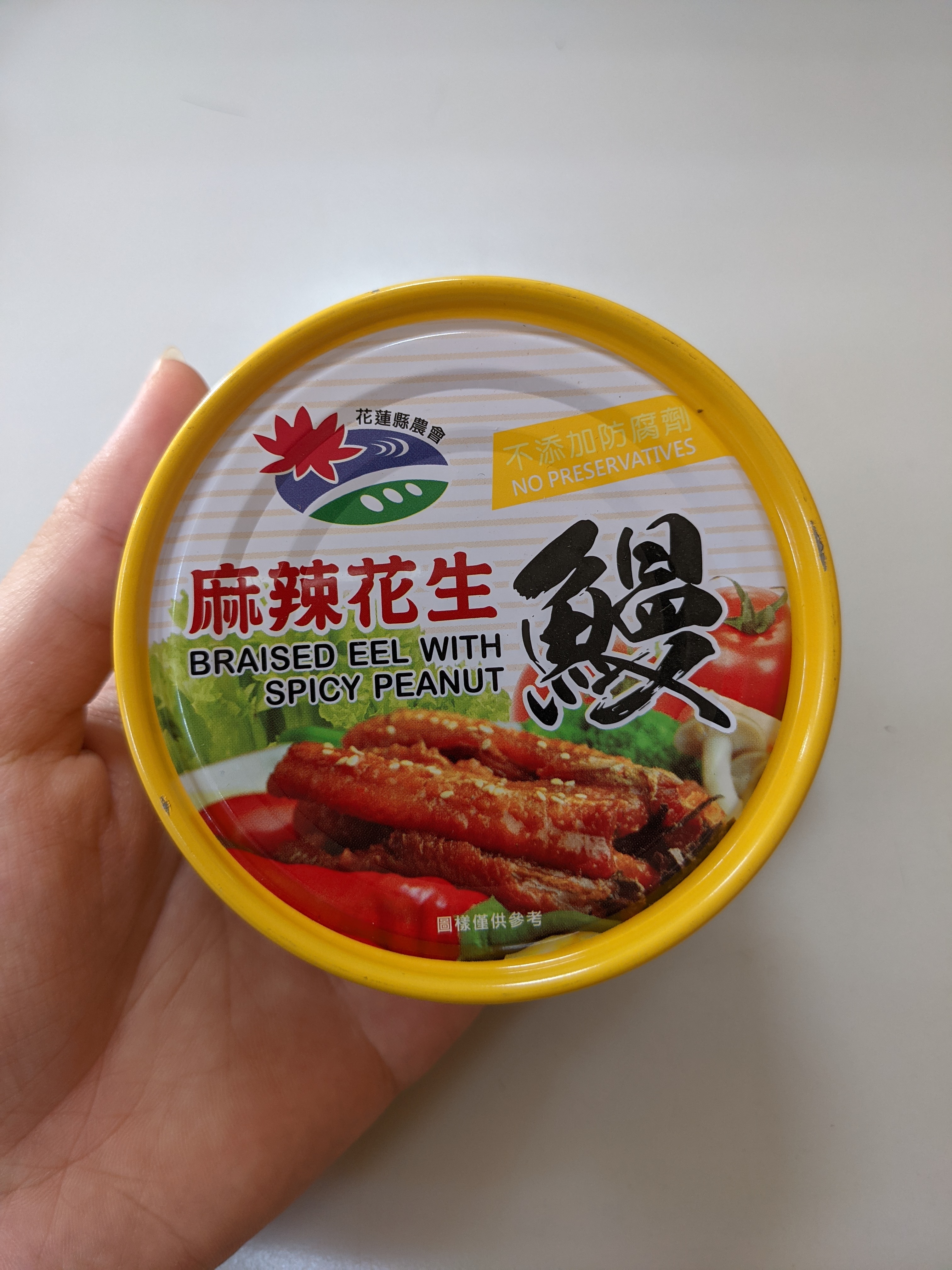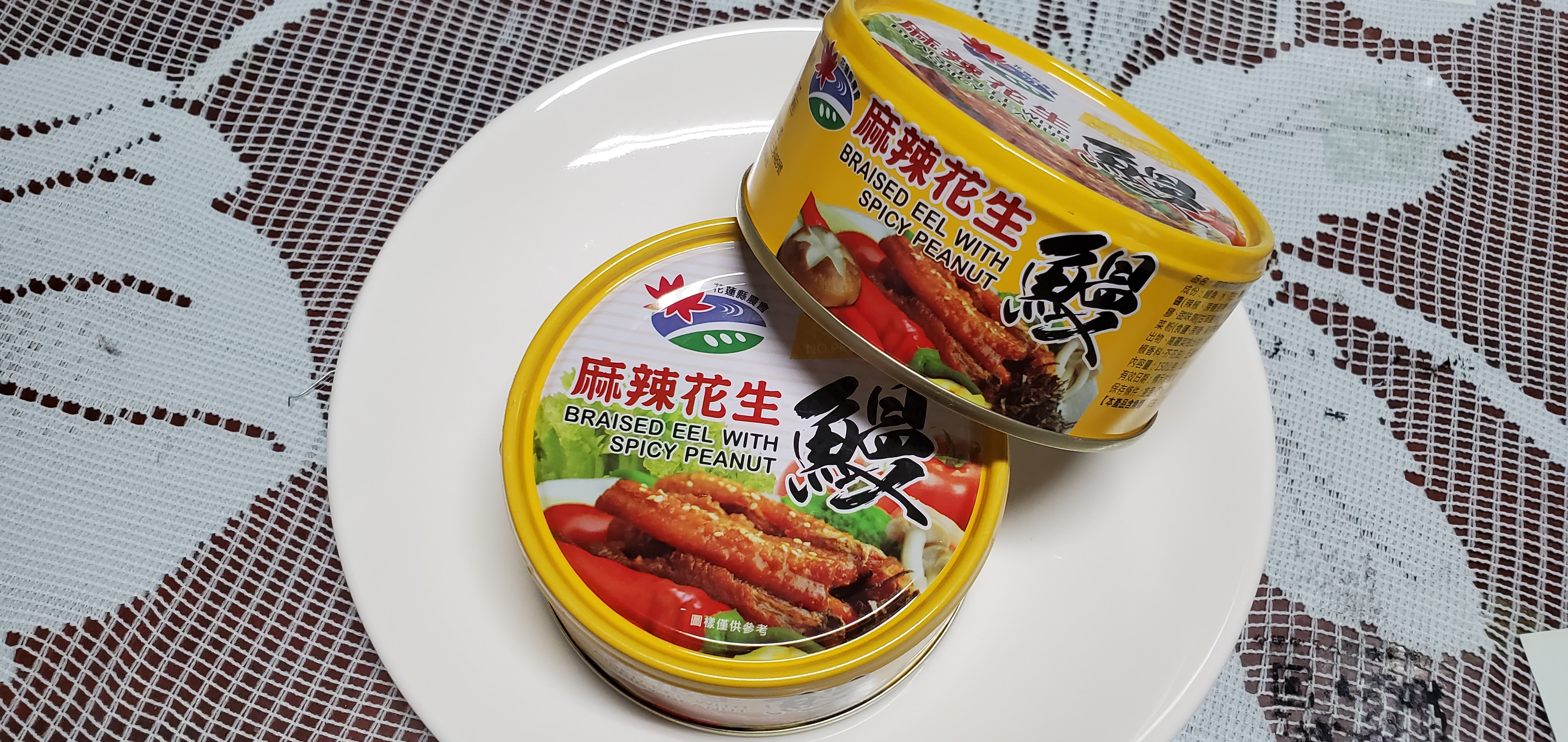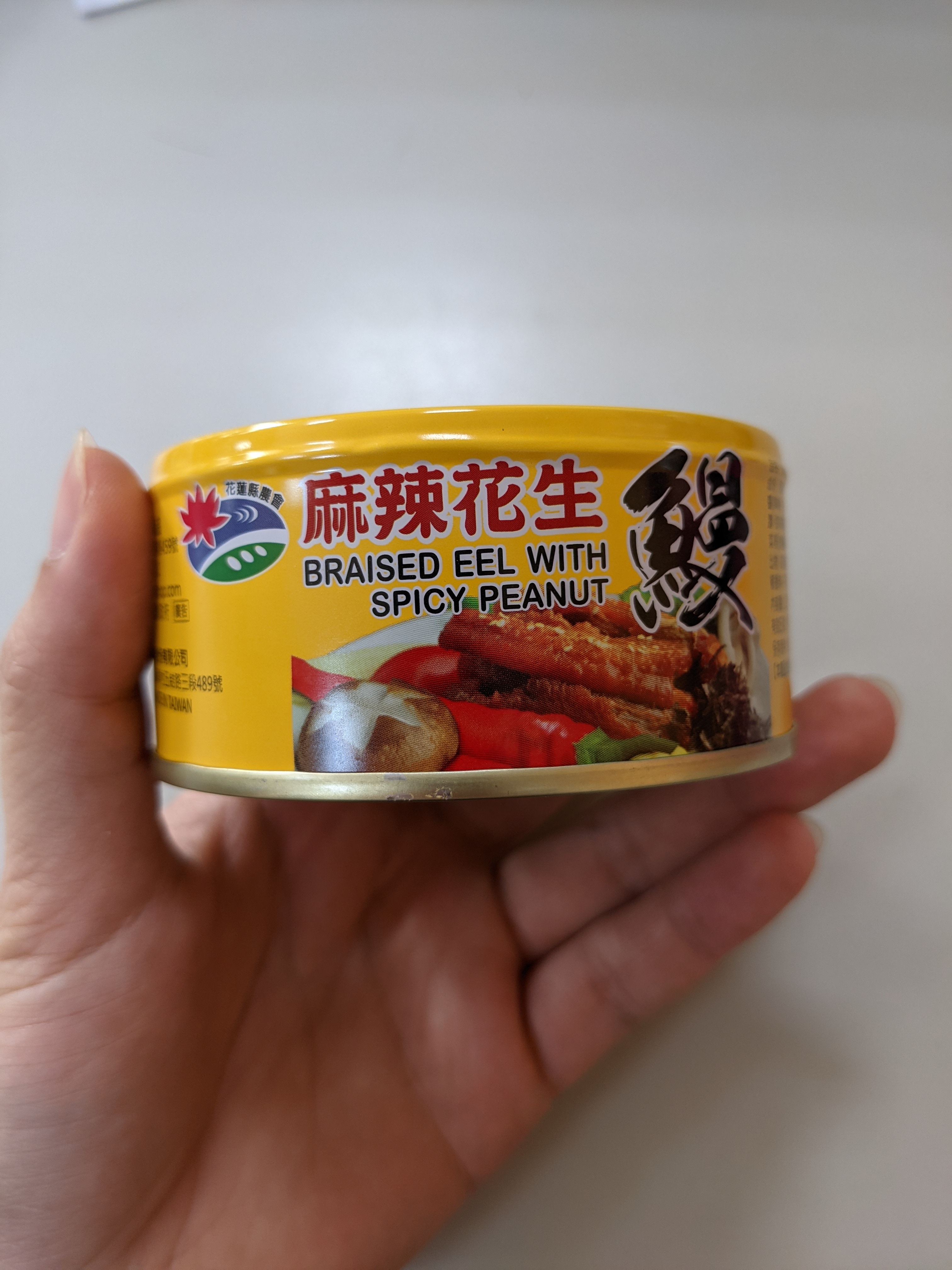 很幸運被抽到試吃花蓮縣農會出的「麻辣花生鰻魚罐頭」!
