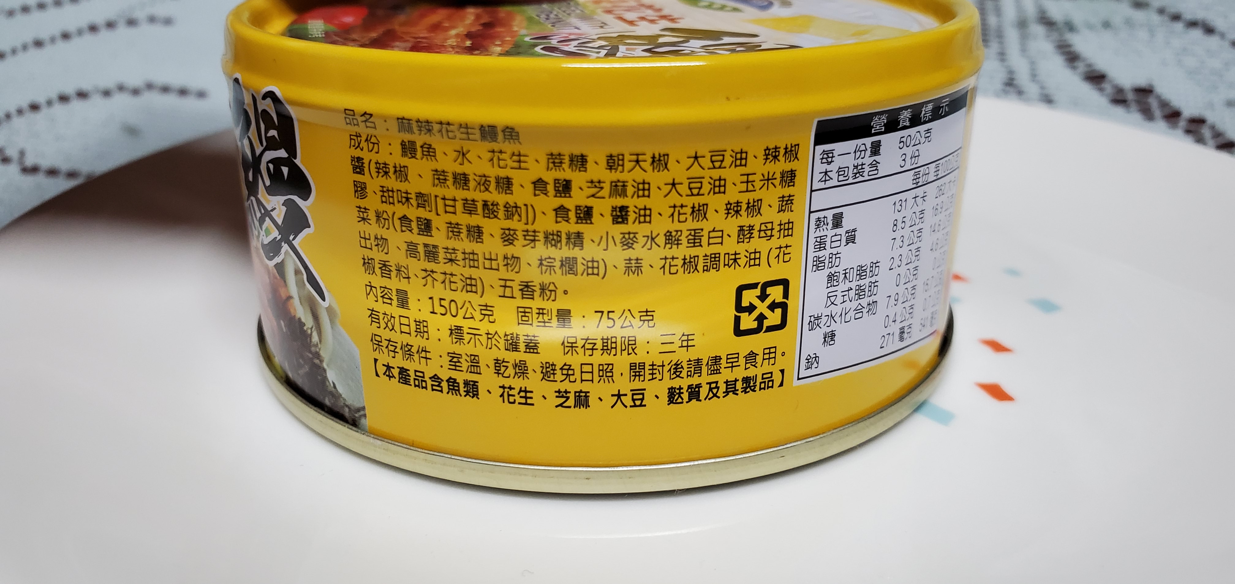 以往也吃過不少鰻魚罐頭,第一次看到除了鰻魚外還有加其他東西的鰻魚罐頭。花蓮縣農會的"麻辣花生鰻魚罐頭"有加花生很特別,還是麻辣口味,讓人好期待~圓形罐頭也跟其他鰻魚罐頭有所區別。