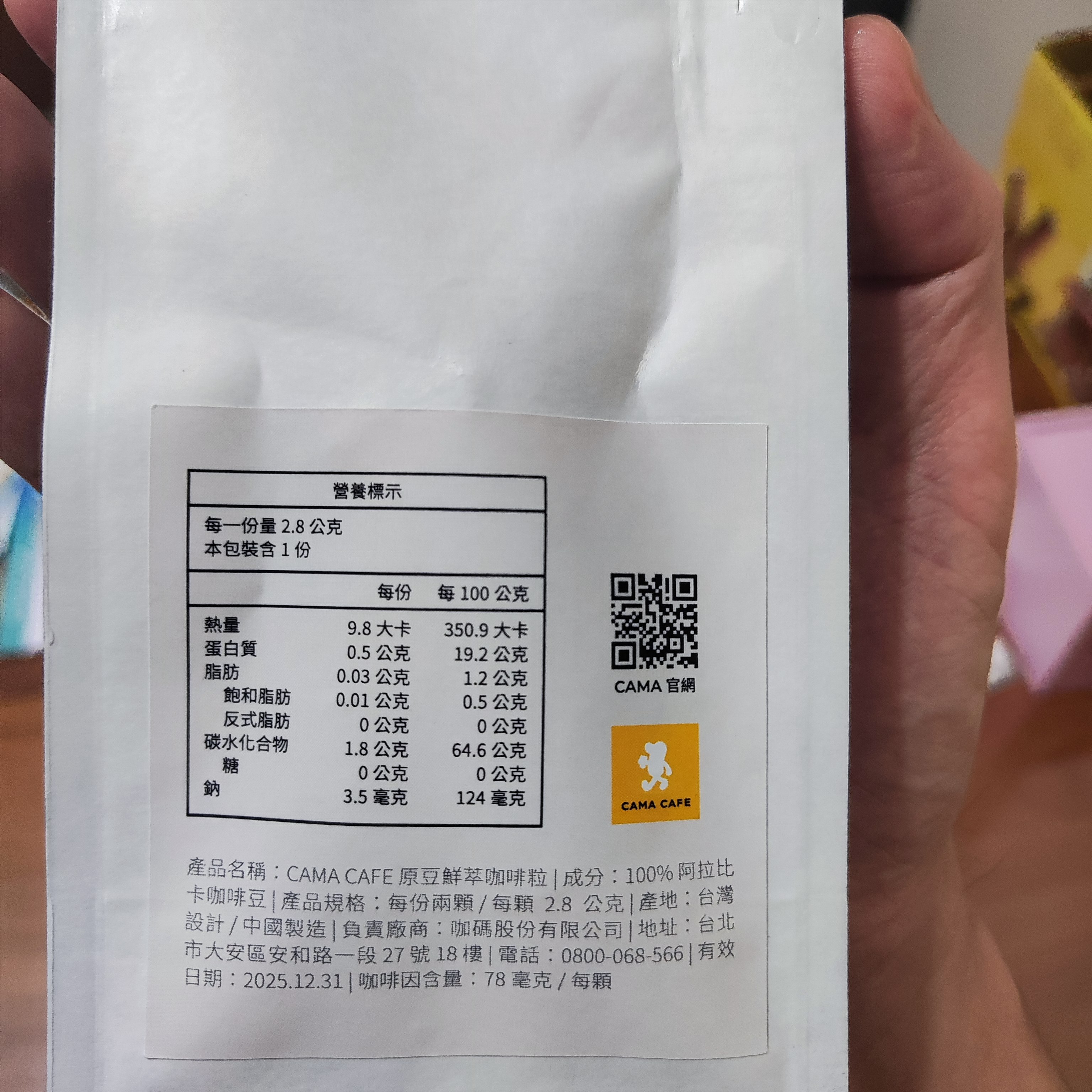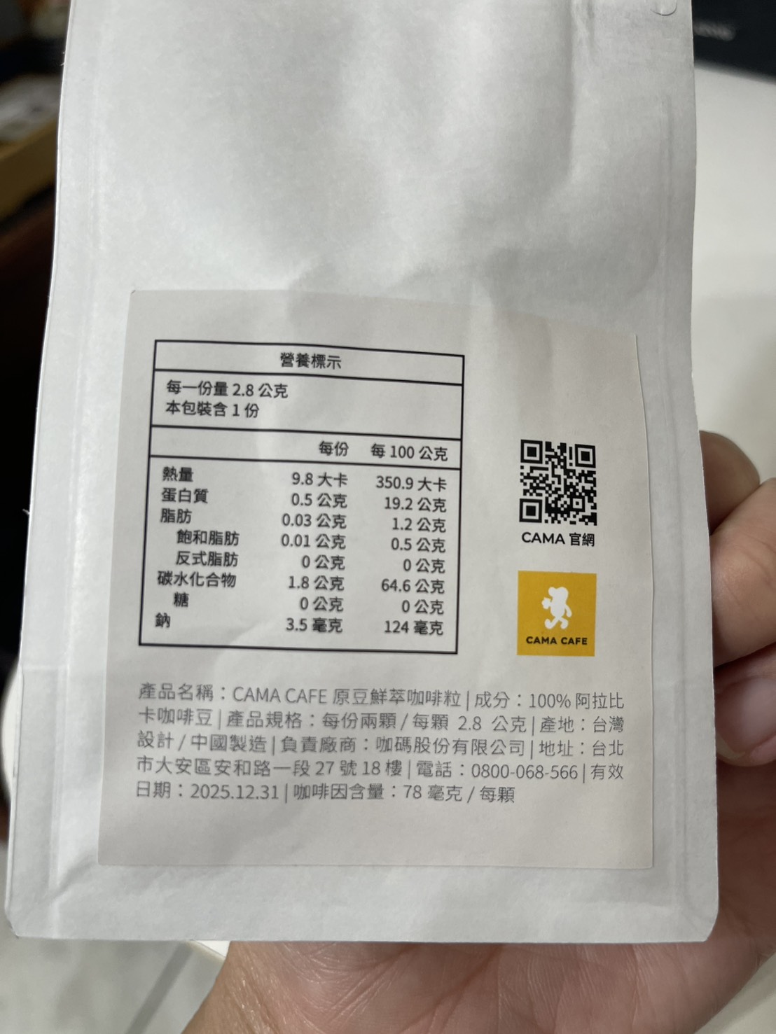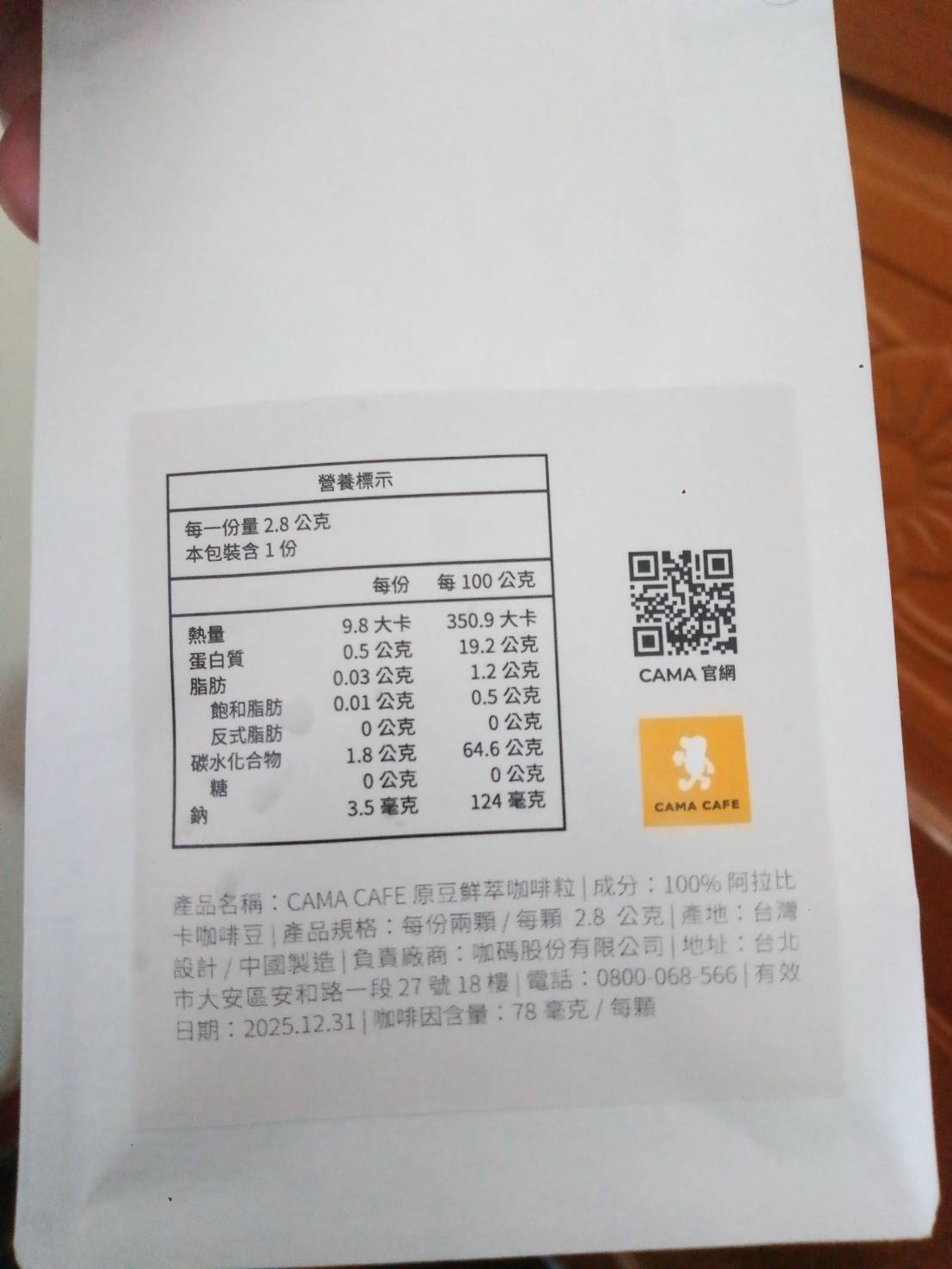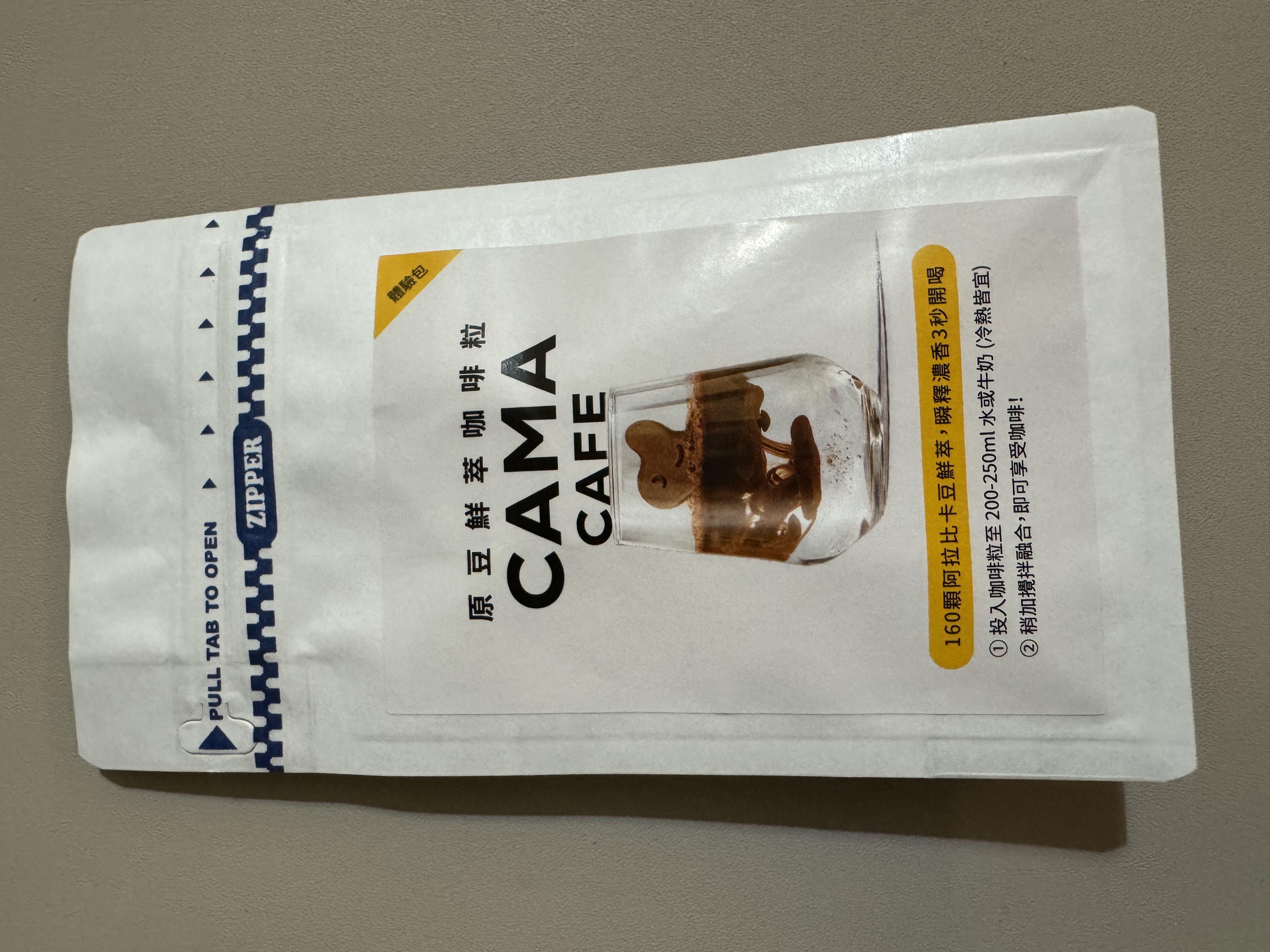 收到 CAMA CAFE 原豆鮮萃咖啡粒(160顆阿拉比卡豆),一打開就被它的包裝設計吸引,小巧可愛,攜帶超方便,完全顛覆我對即溶咖啡的印象。只要丟一顆進杯子,加水就能立刻享用,不需要任何攪拌工具,3秒鐘就能釋放濃郁香氣,真的超級省時又便利。喝起來味道濃厚順口,沒有一般即溶咖啡的苦澀感,冷熱都很好喝。我最喜歡加一點鮮奶,馬上變身香濃拿鐵,早上趕時間的時候非常實用。偶爾還會加燕麥奶或焦糖醬調味,變化出不一樣的風味,CP值非常高。對於喜歡咖啡、又不想耗時手沖的人來說,這款真的值得入手,隨時隨地都能來一杯療癒的好咖啡。