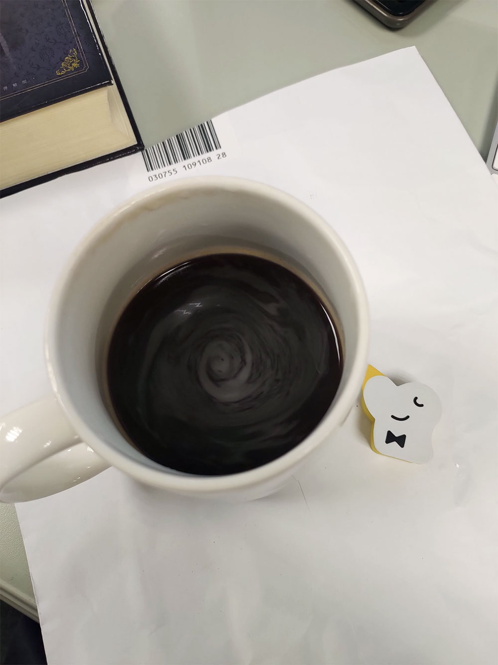 溶解的速度真的很快~如同包裝上寫的約 3 秒左右(我用的是冷水),一溶開咖啡的烘烤香就散發開來了。
