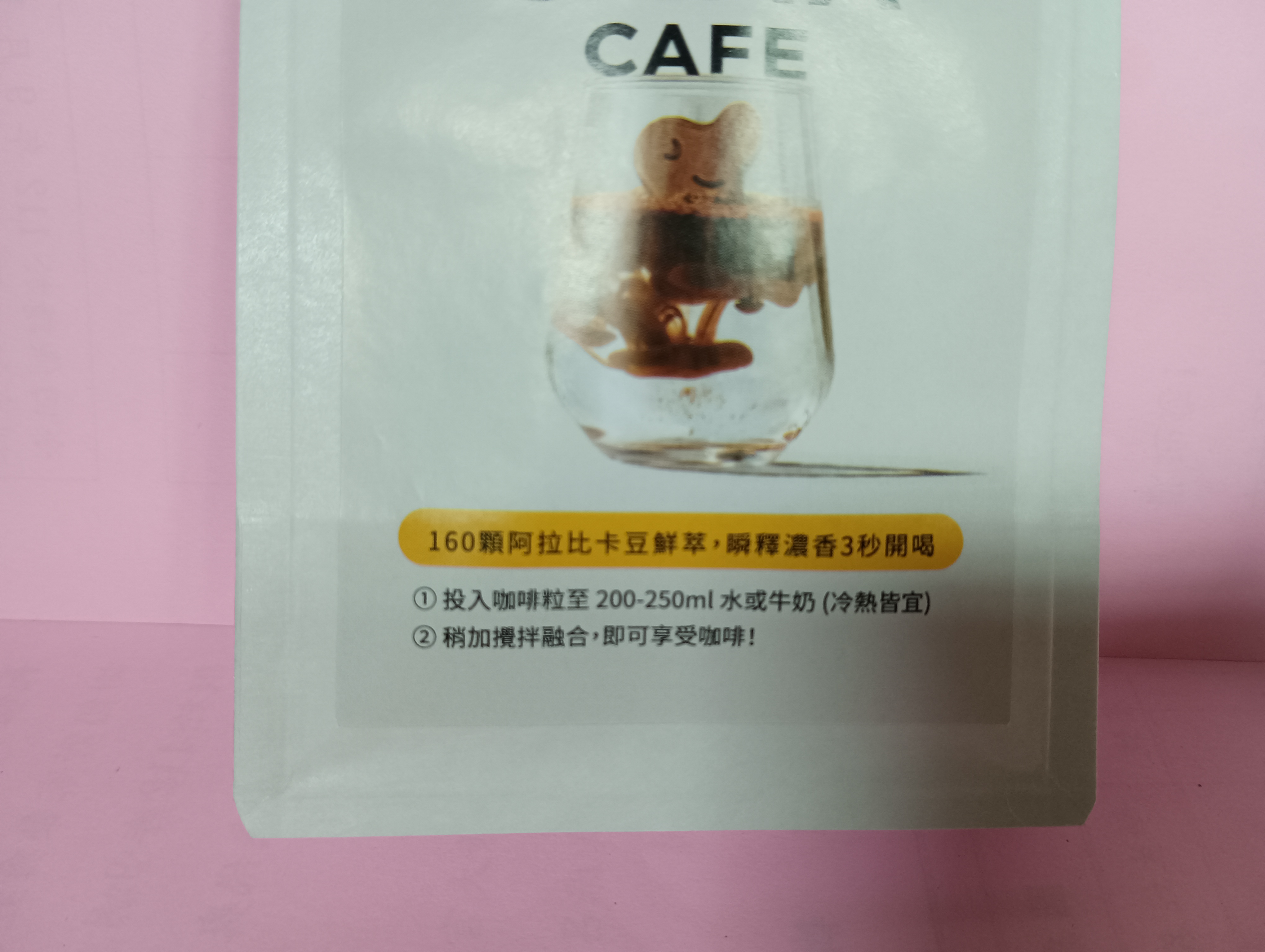 底部的使用說明也很簡單清楚:只需將咖啡粒加入200-250ml的水或牛奶中,再稍微攪拌即可飲用。這種即飲式的產品,不但省去了磨豆、萃取等繁複步驟,也大大提升了咖啡飲用的便利性。