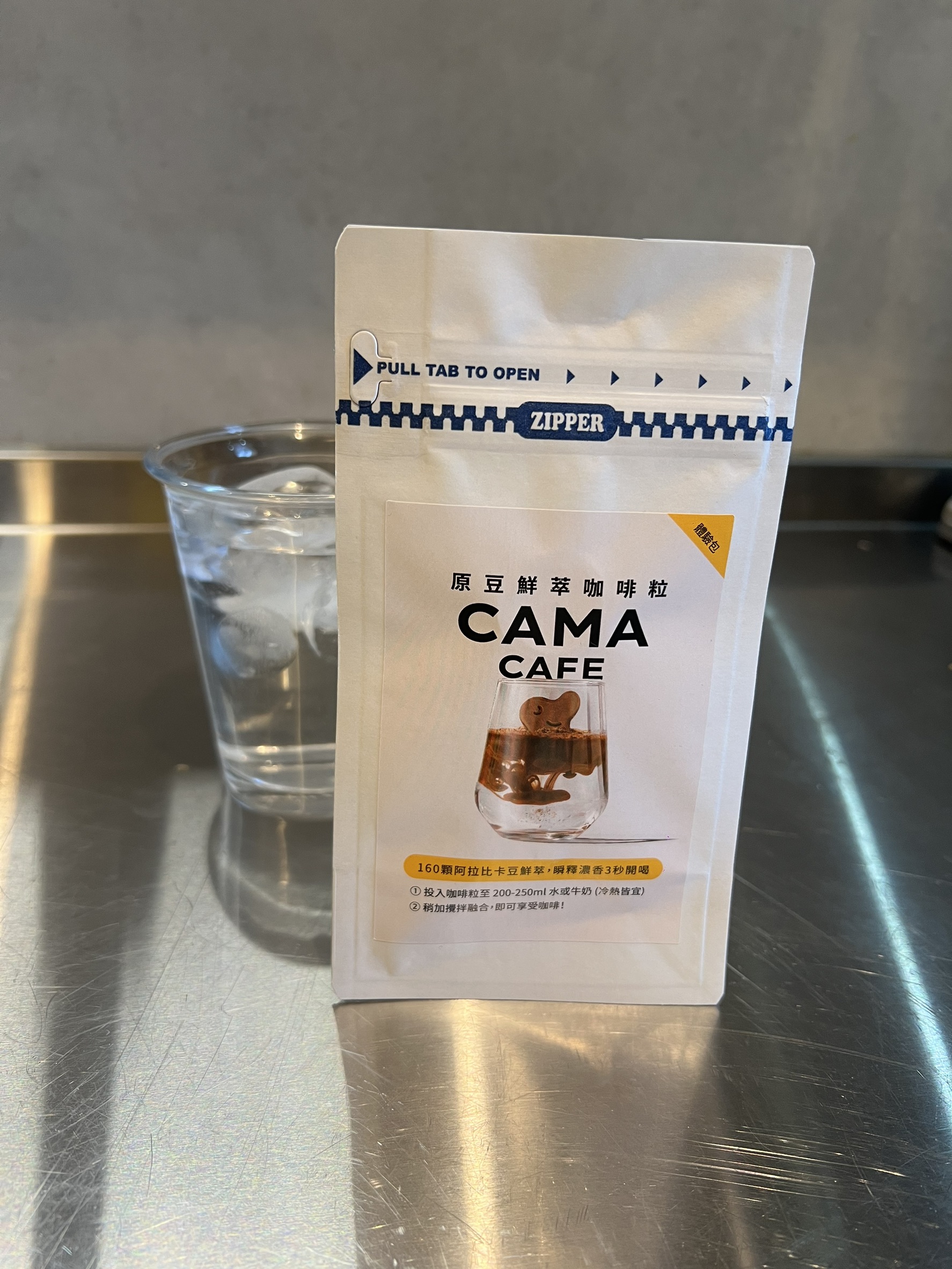 CAMA CAFÉ這次出的新商品很特別,有別於一般即溶咖啡,這款是由100%阿拉比卡咖啡豆作為成分,無任何添加物,較有單品及水洗風味,不管是香氣還是風味,更多了一般花果香和酸感。沖泡非常方便,溶解度佳,不用繁複的步驟,就能馬上享受到高級單品咖啡。由於咖啡風味較為柔和清新,不是強烈的苦味或濃厚感,搭配牛奶會稍微蓋過咖啡本身的風味,失去咖啡帶有的花果香氣,較為可惜,個人偏好直接做成冰美式,也很適合現在炎熱的天氣,方便快速享受到好咖啡的滋味。