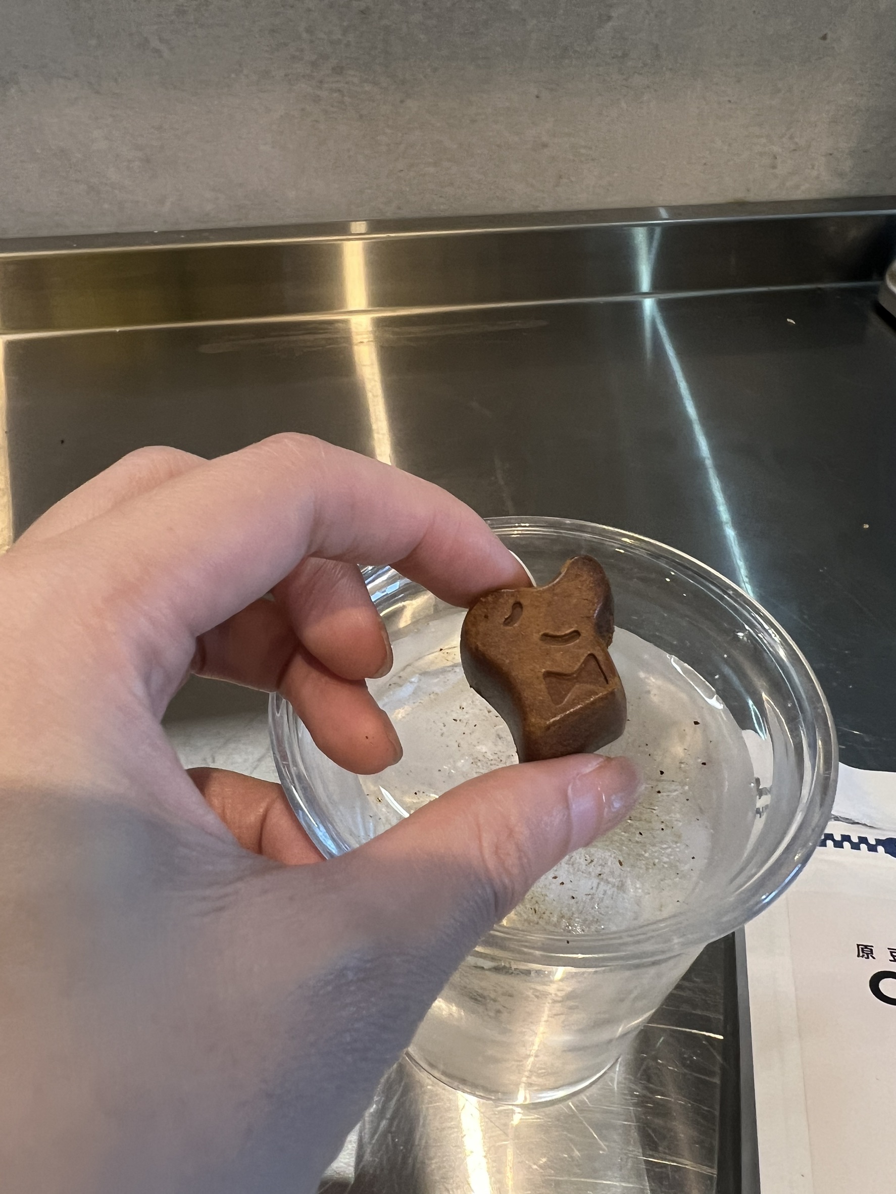 41歲 新北市但為了嘗味道,欣賞了一陣子還是丟下去,我使用的是偏熱的水,一瞬間,真的是一瞬間就化光了,根本拍不到過程哈哈哈,攪拌一下很快就有咖啡香氣飄出來,喝起來是偏酸的口感,讓我滿驚訝的,因為外觀已經太可愛,沒想到味道居然也沒在客氣,喝起來不會水水的,是認真的咖啡。