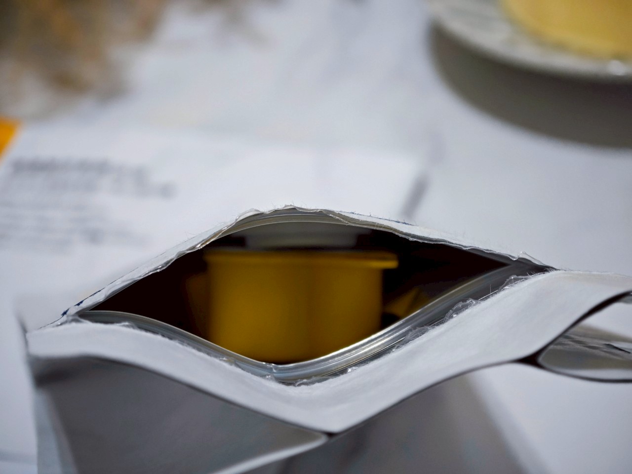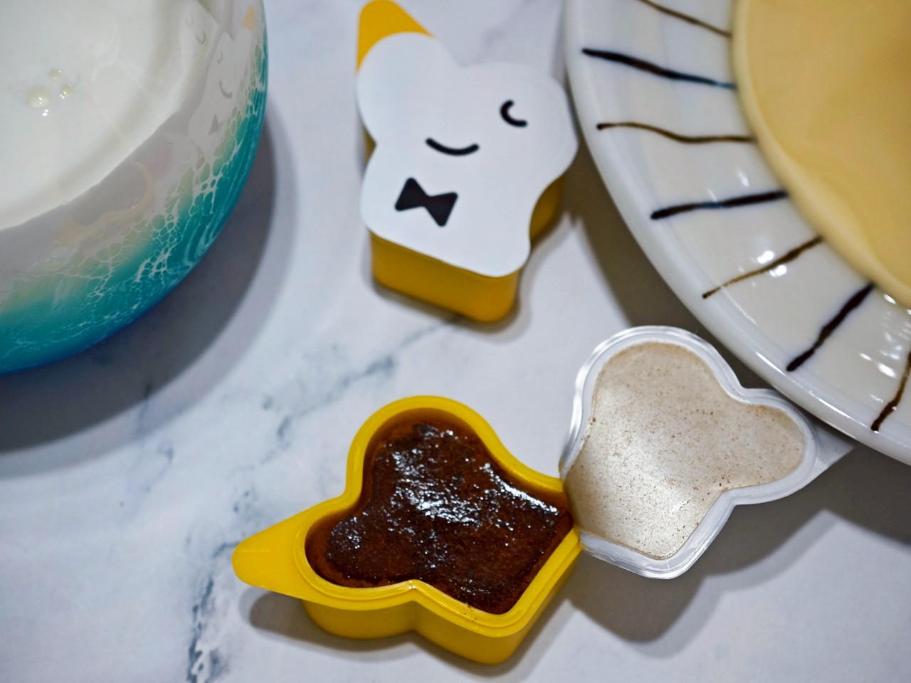 本次抽到試用的是【 CAMA CAFE 原豆鮮萃咖啡粒 】,體驗包非常精巧,共兩個咖啡粒仍用小小的防潮夾鏈袋包裝得很嚴密。開袋後共有兩個咖啡粒,分別獨立包裝在CAMA吉祥物造型的黃色小塑膠盒中,並以印有吉祥物Beano側臉表情的鋁箔封膜,非常精緻可愛。咖啡粒鋁箔開啟處則是有醒目黃色標示與未黏合的掀角,二者都巧妙融合在吉祥物圖案中,設計感與功能兼具。而且黃色小膠盒翻到背面後,也有用凹版印刷將吉祥物Beano側臉表情在交河表面做出凹陷效果,除了設計細節完整,應該也有幫助取出咖啡粒的作用。