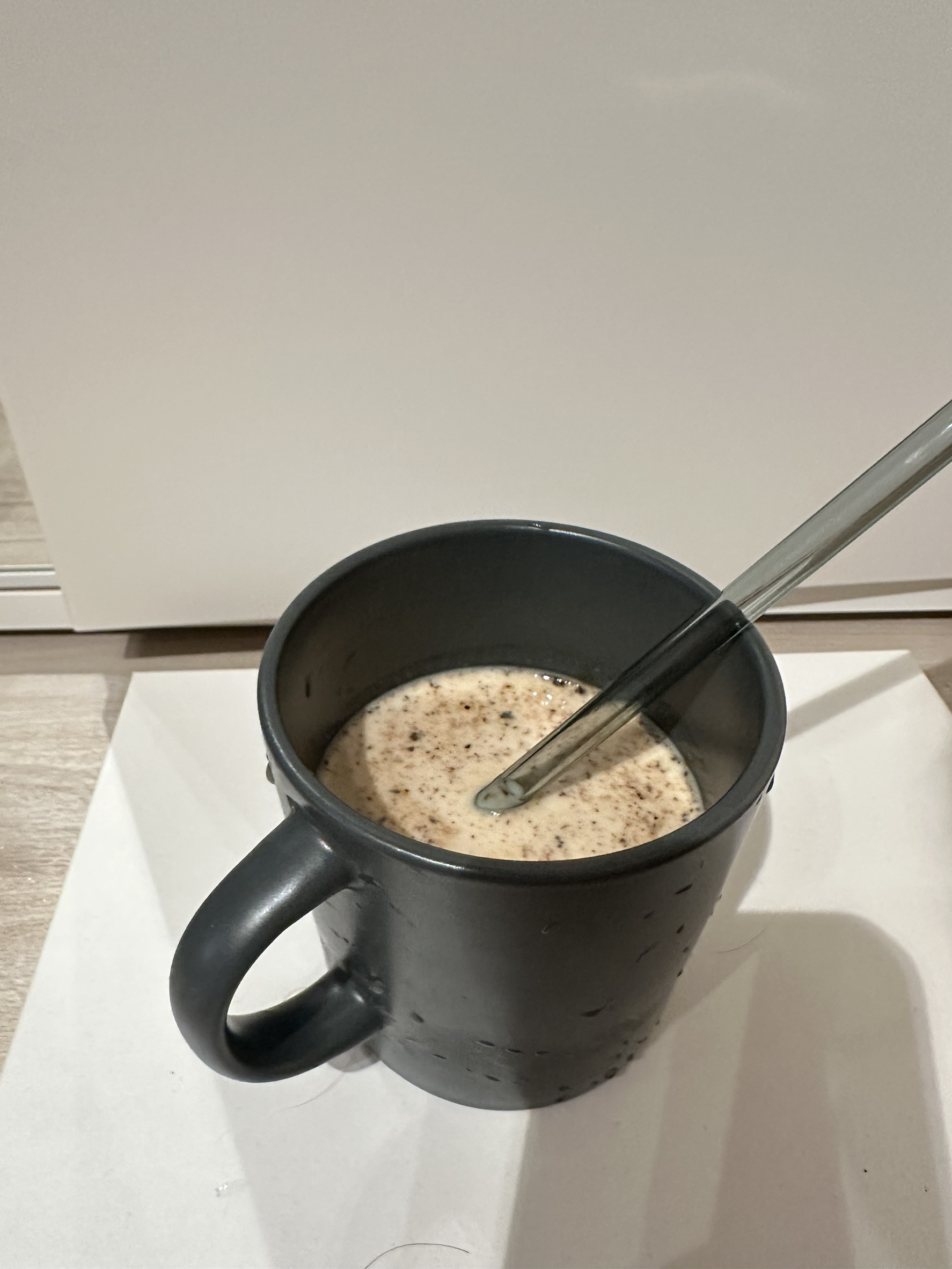 35歲 臺北市對於租屋族來說非常方便,在量販店購買一小瓶牛奶,加入咖啡錠,幾乎無需攪拌或搖晃,就能融化約80%左右,可見粉的細度!