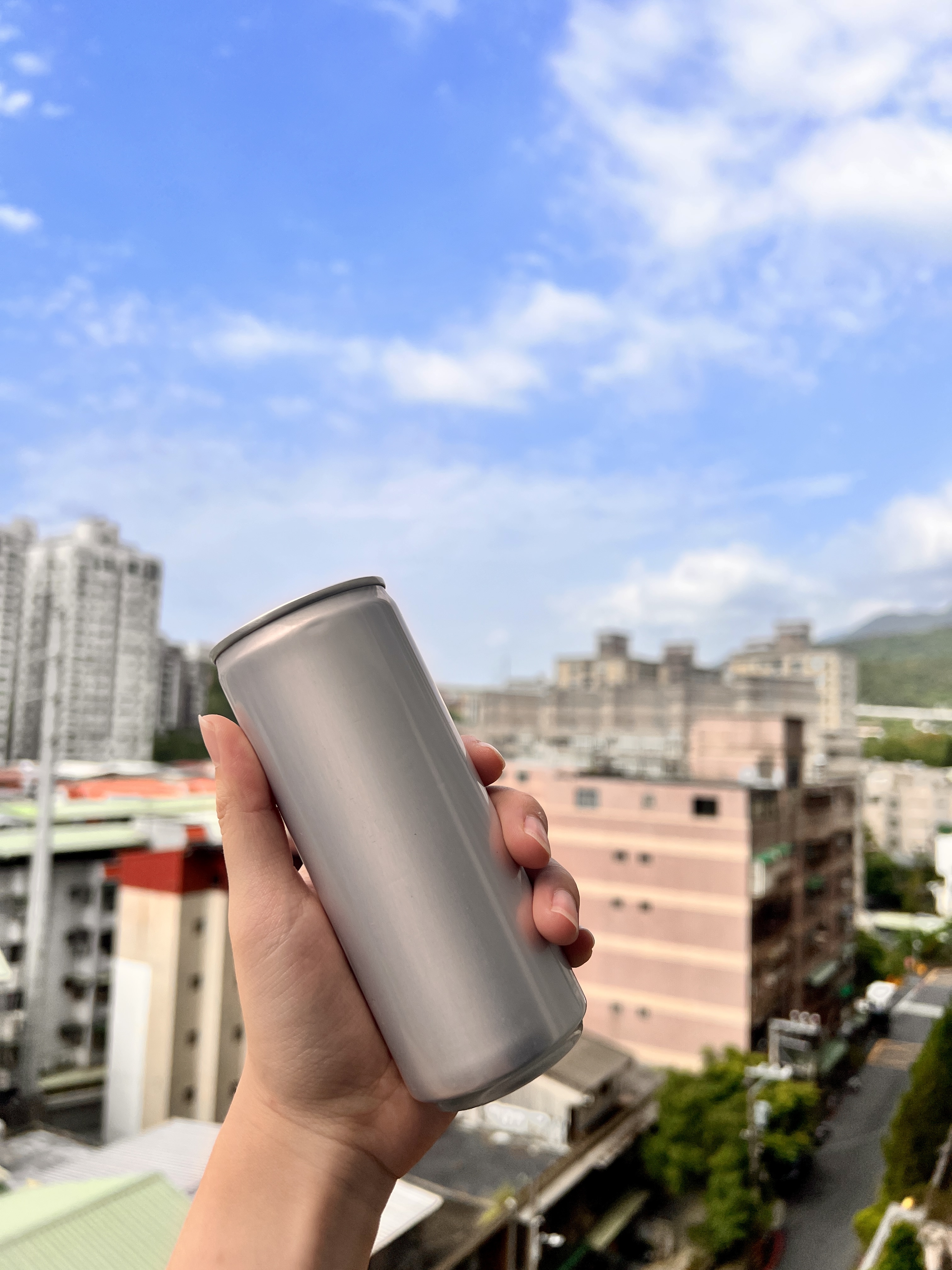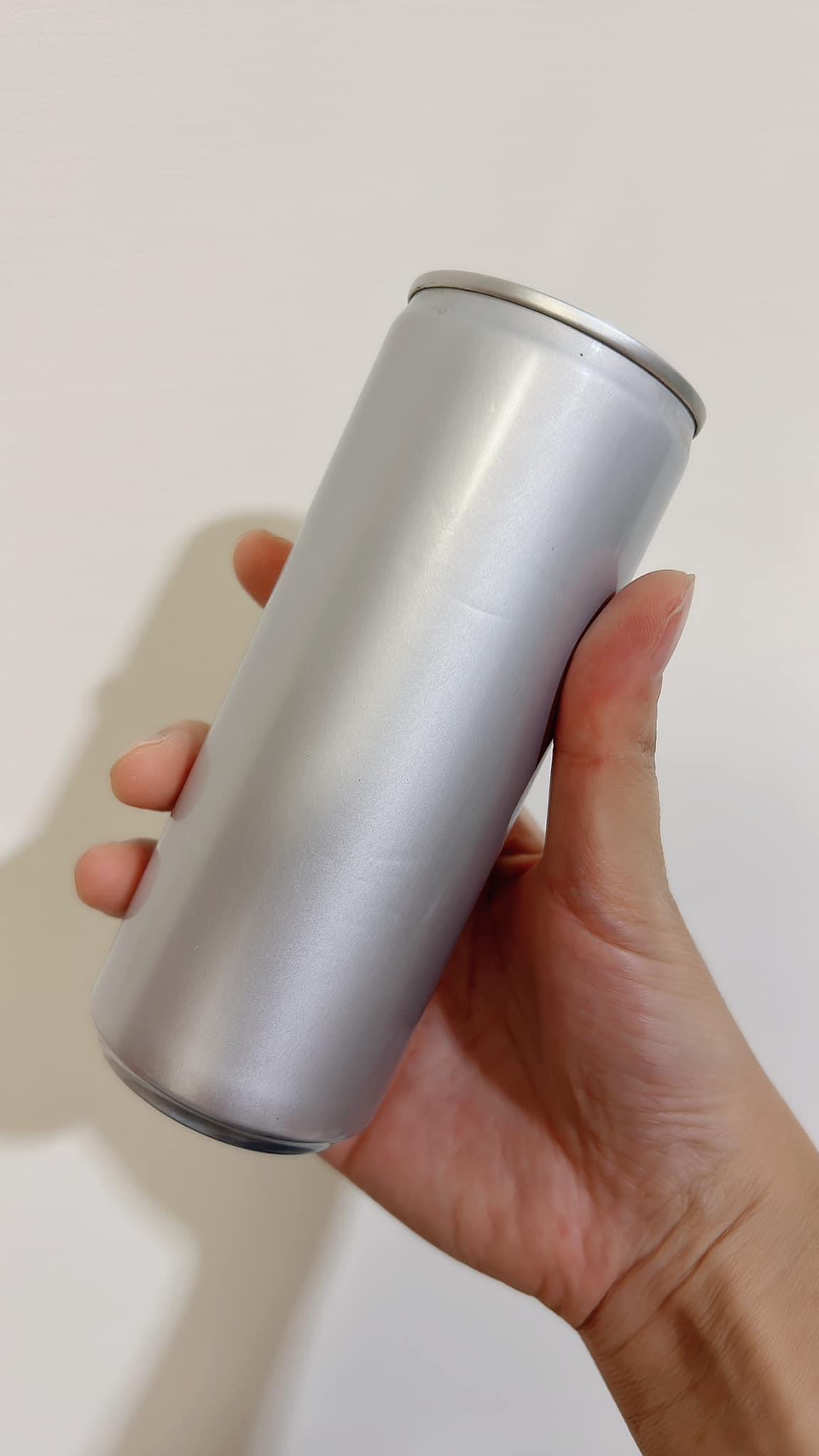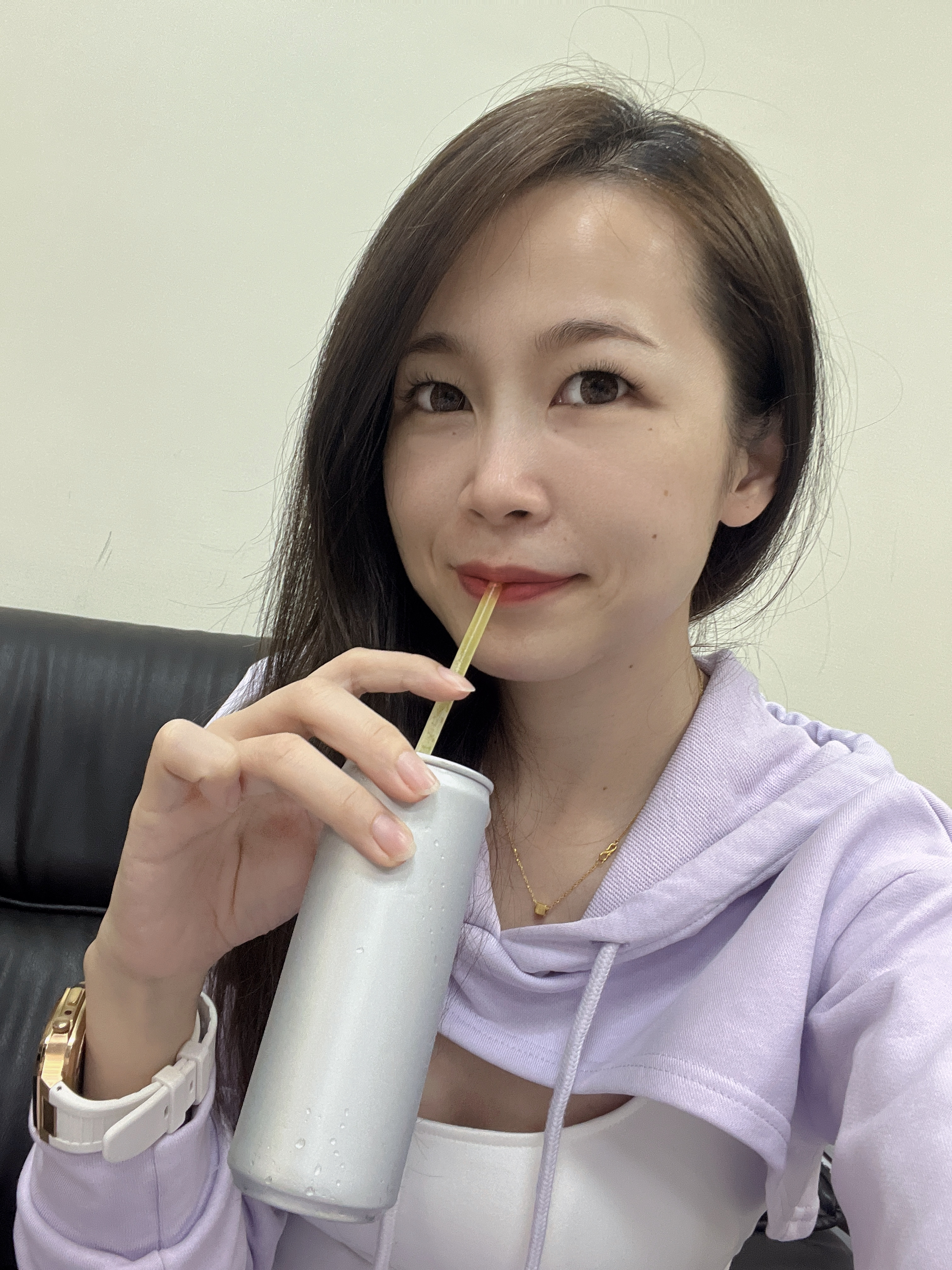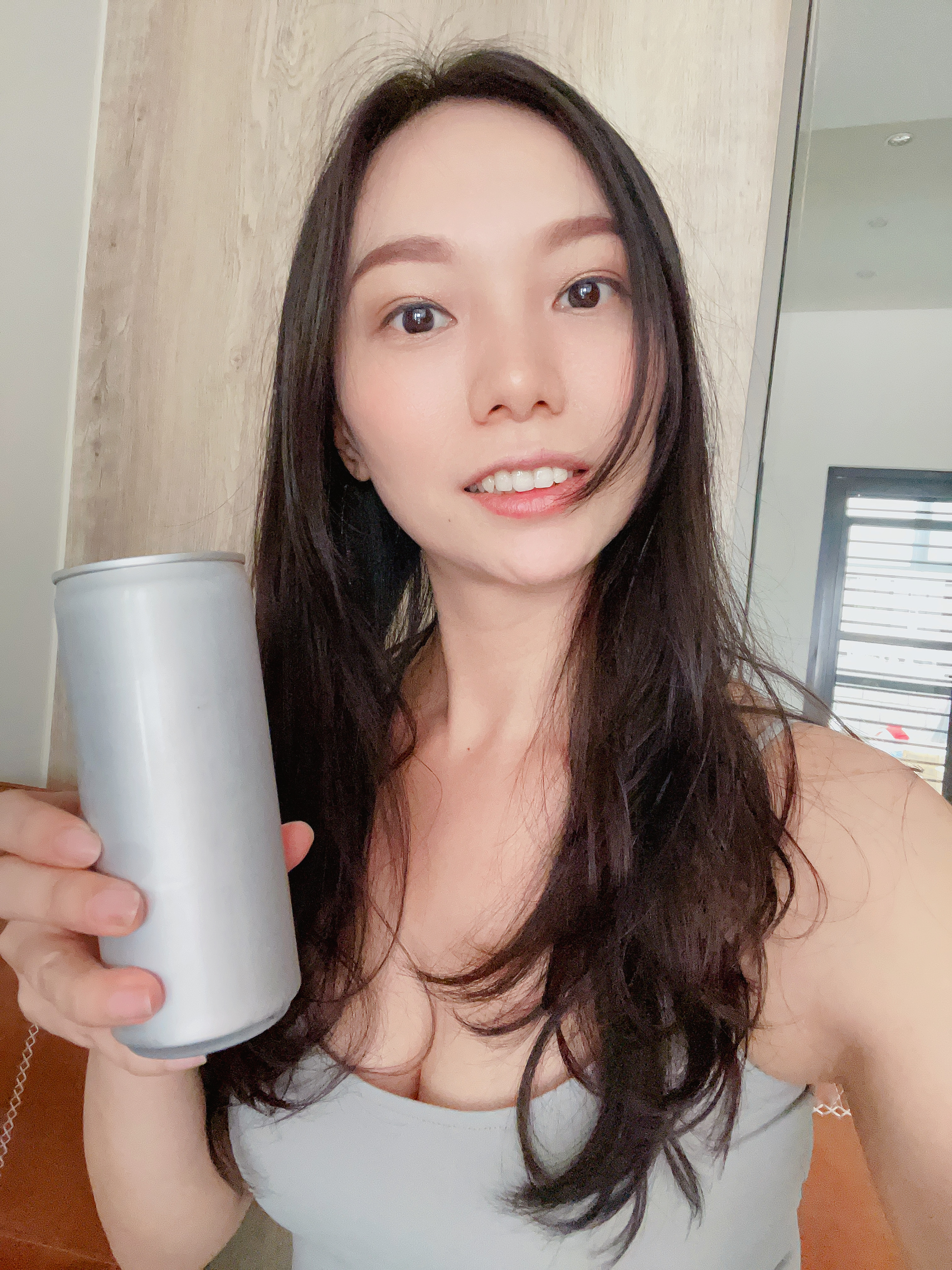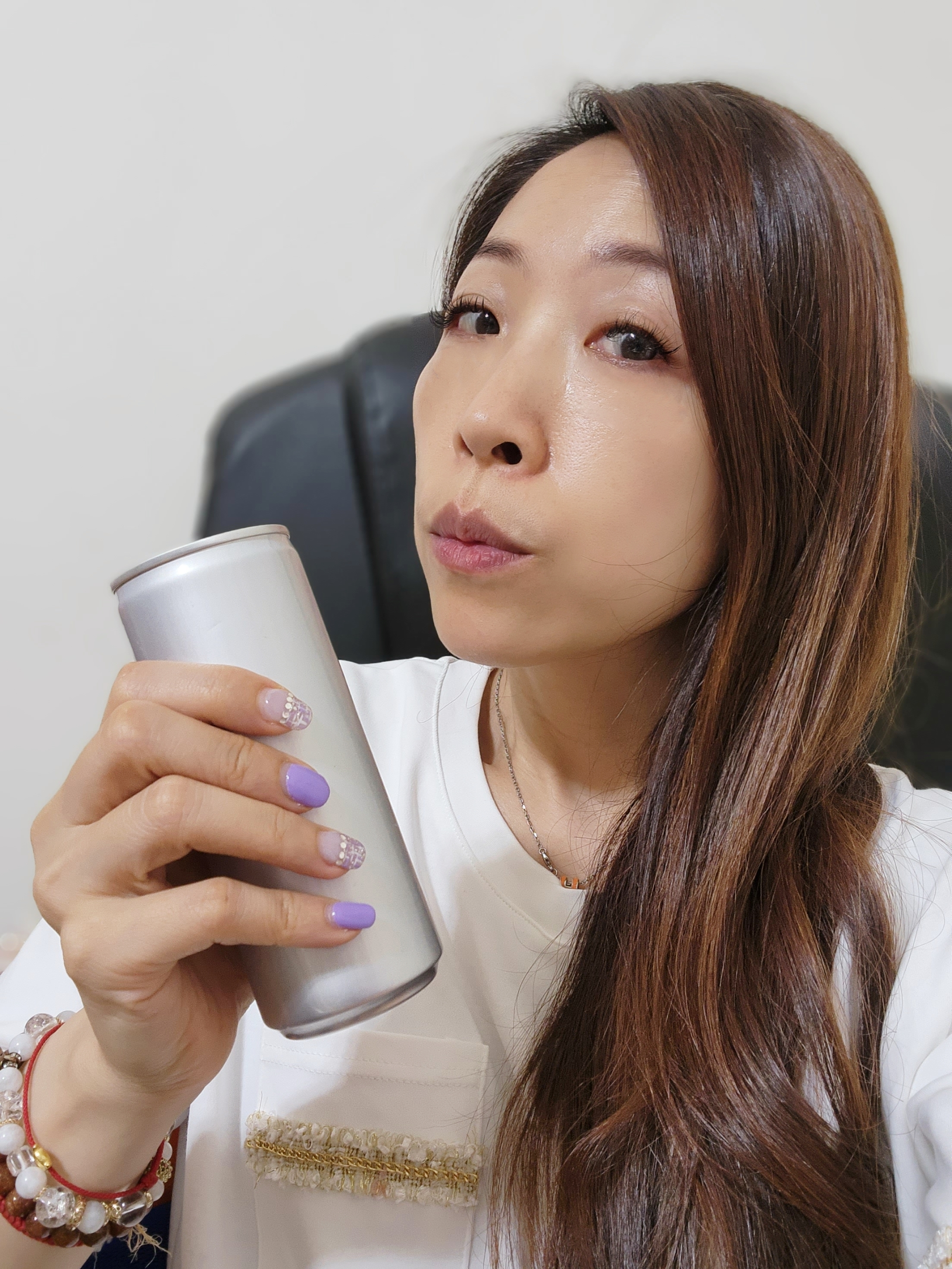 本次體驗是裸裝,但其實是原來的包裝我也覺得沒差,因為原本的銀色包裝設計無法凸顯出這款飲料的高級感,反倒是視覺圖中的粉紫帶有漸層,這樣的包裝比較好看。