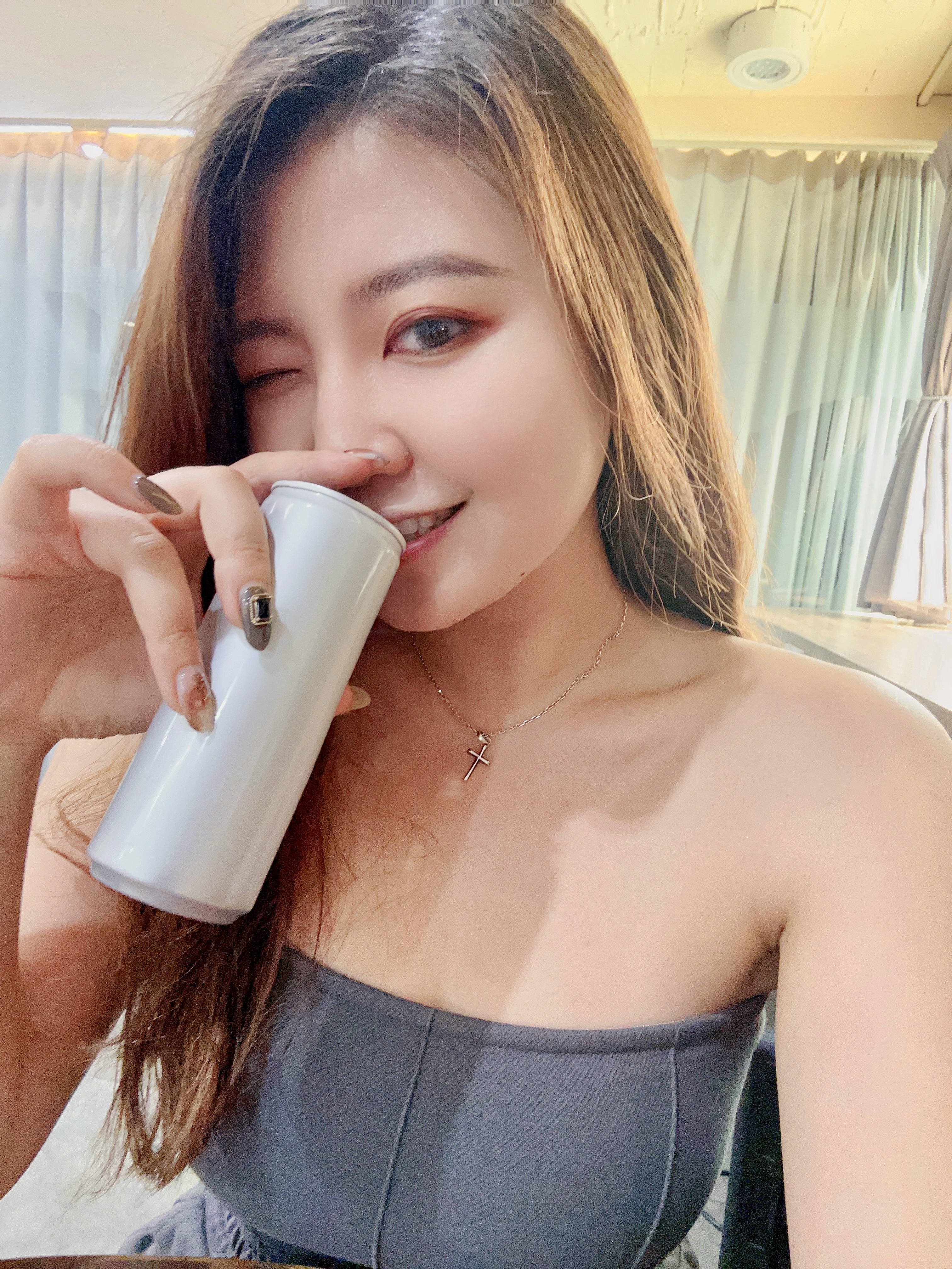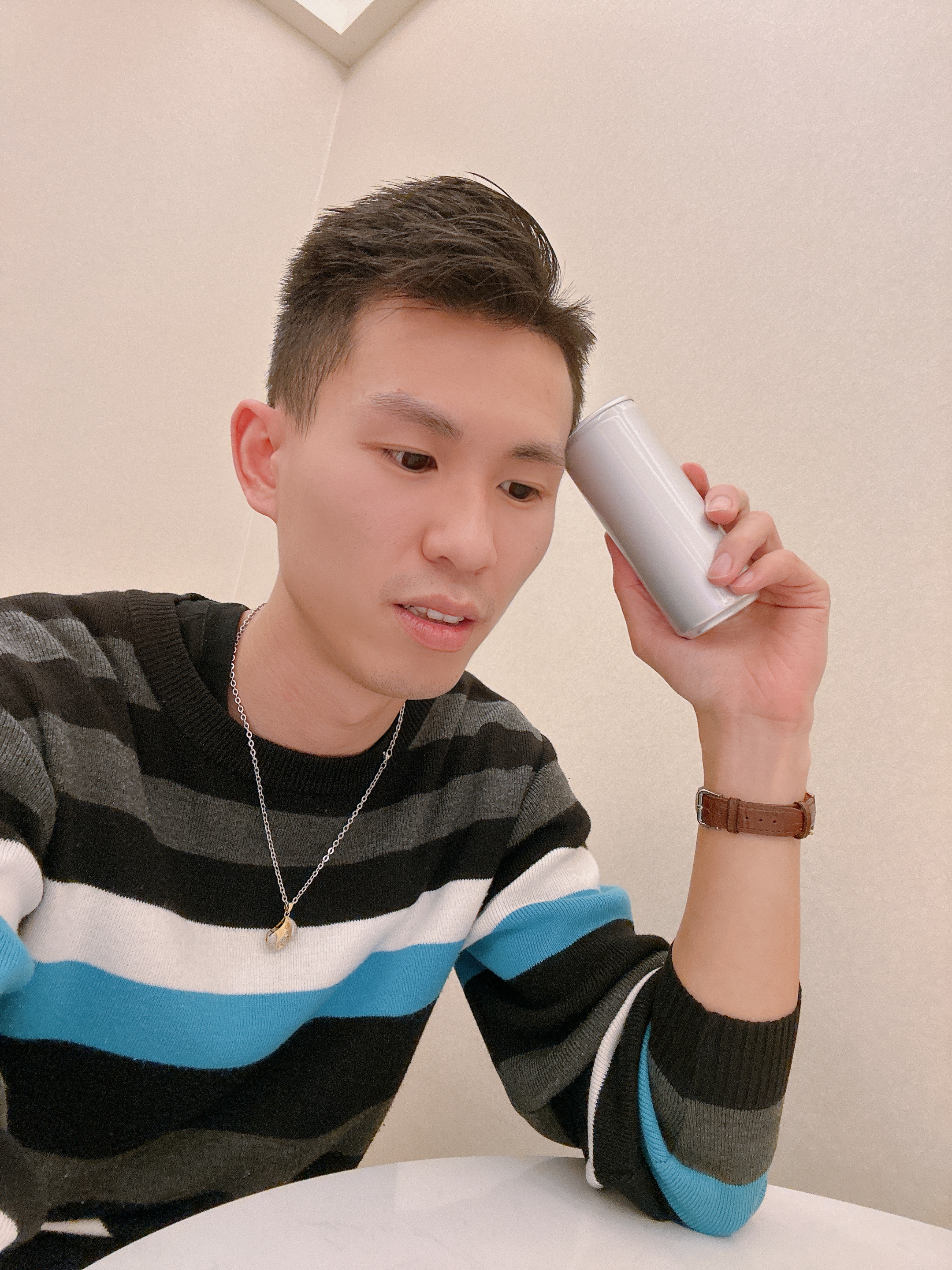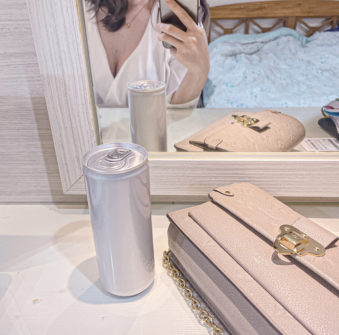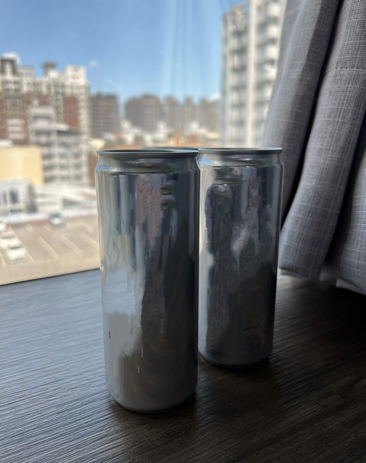 本次體驗是裸裝,但其實是原來的包裝我也覺得沒差,因為原本的銀色包裝設計無法凸顯出這款飲料的高級感,反倒是視覺圖中的粉紫帶有漸層,這樣的包裝比較好看。