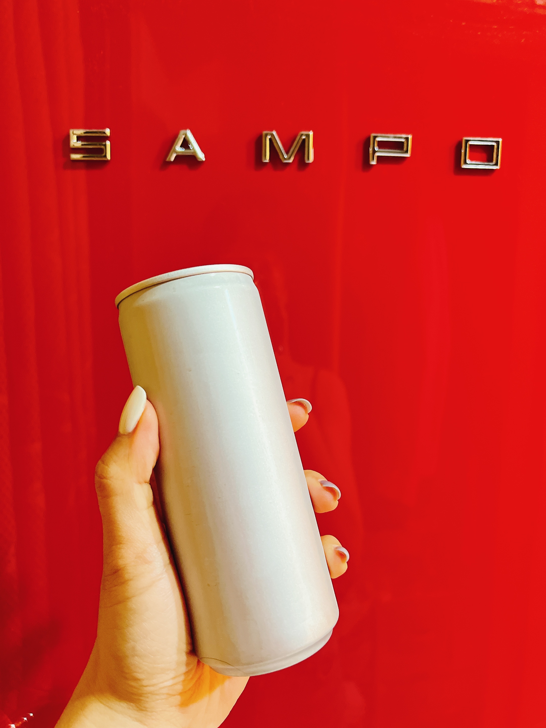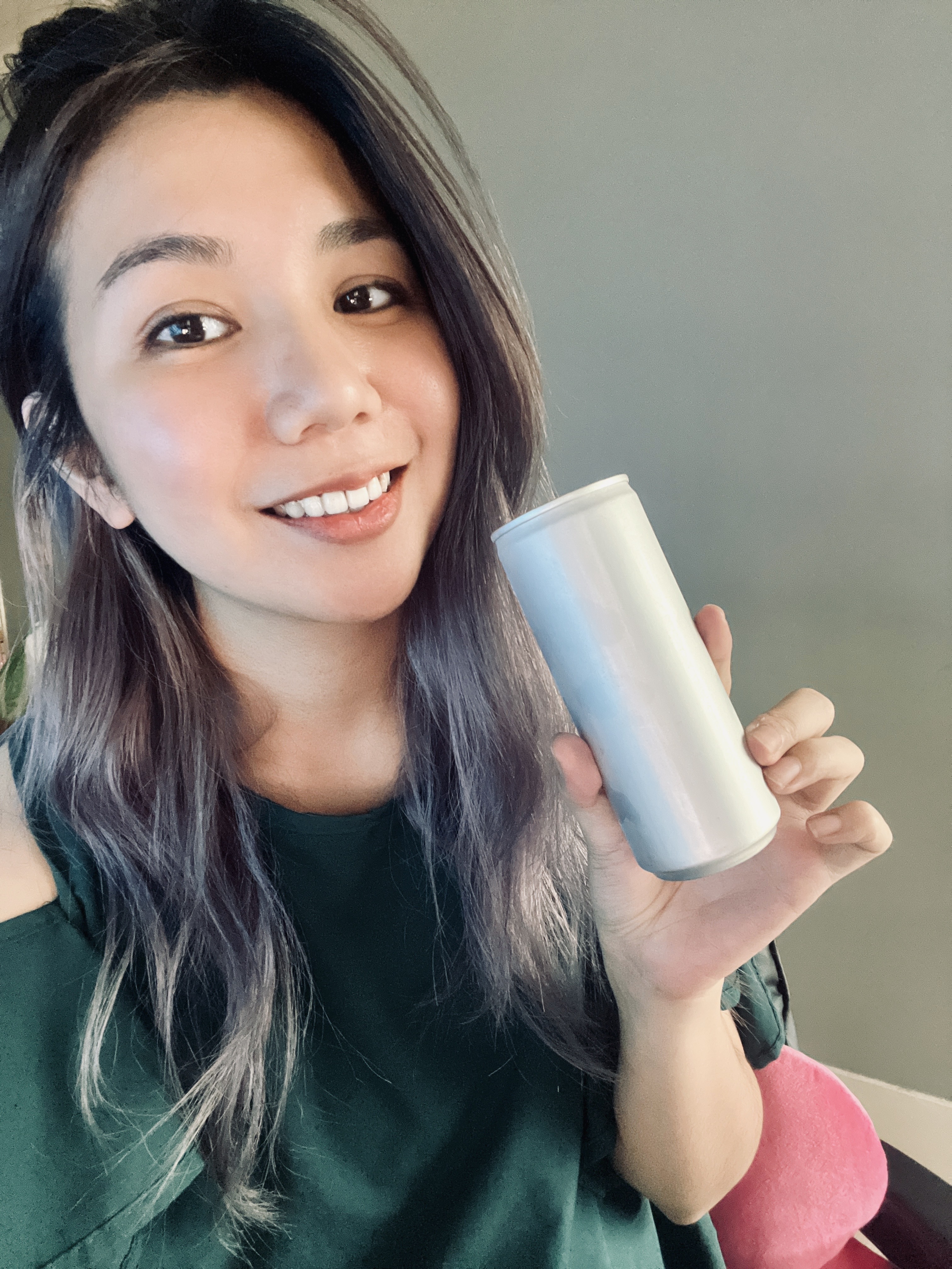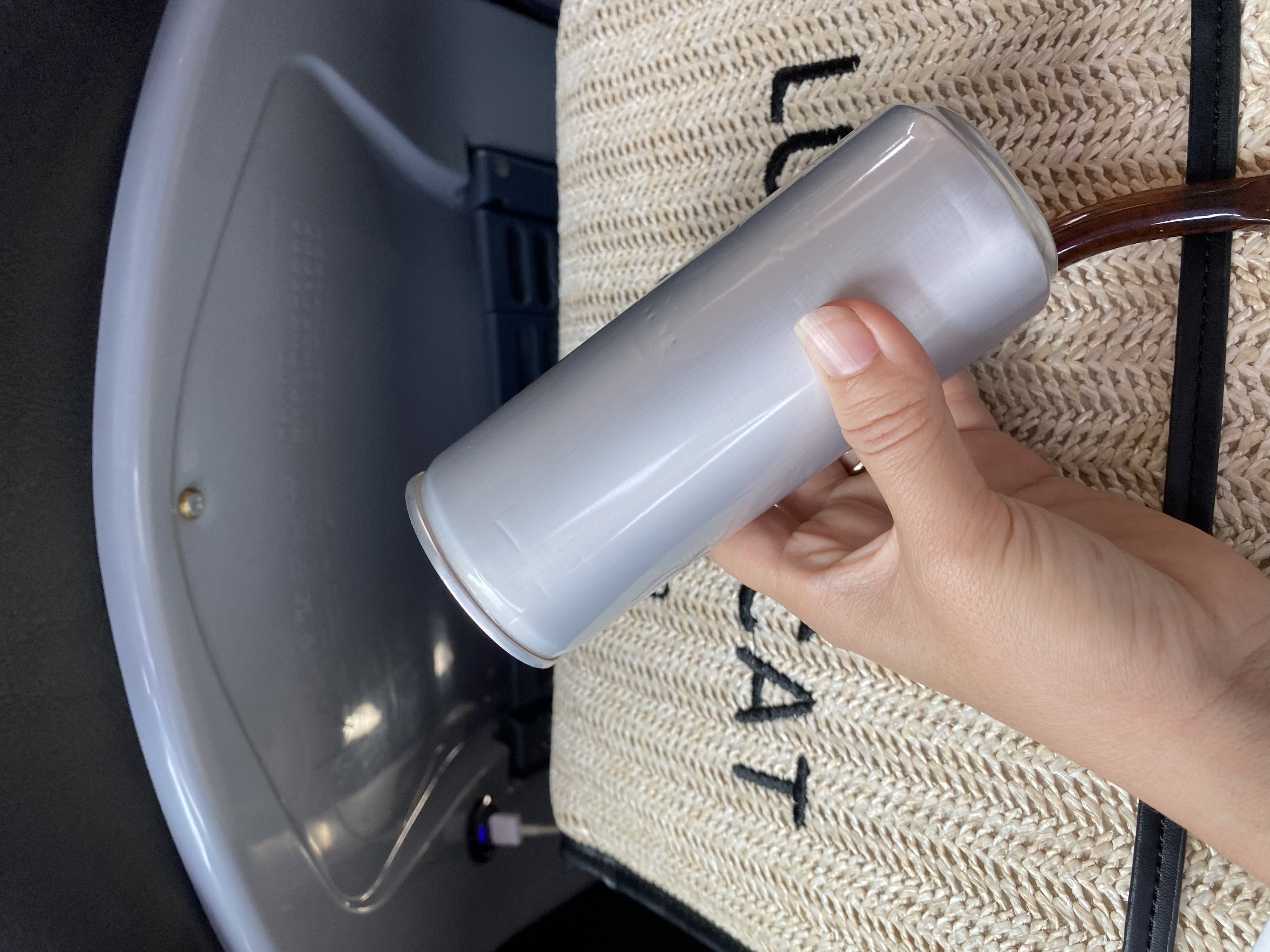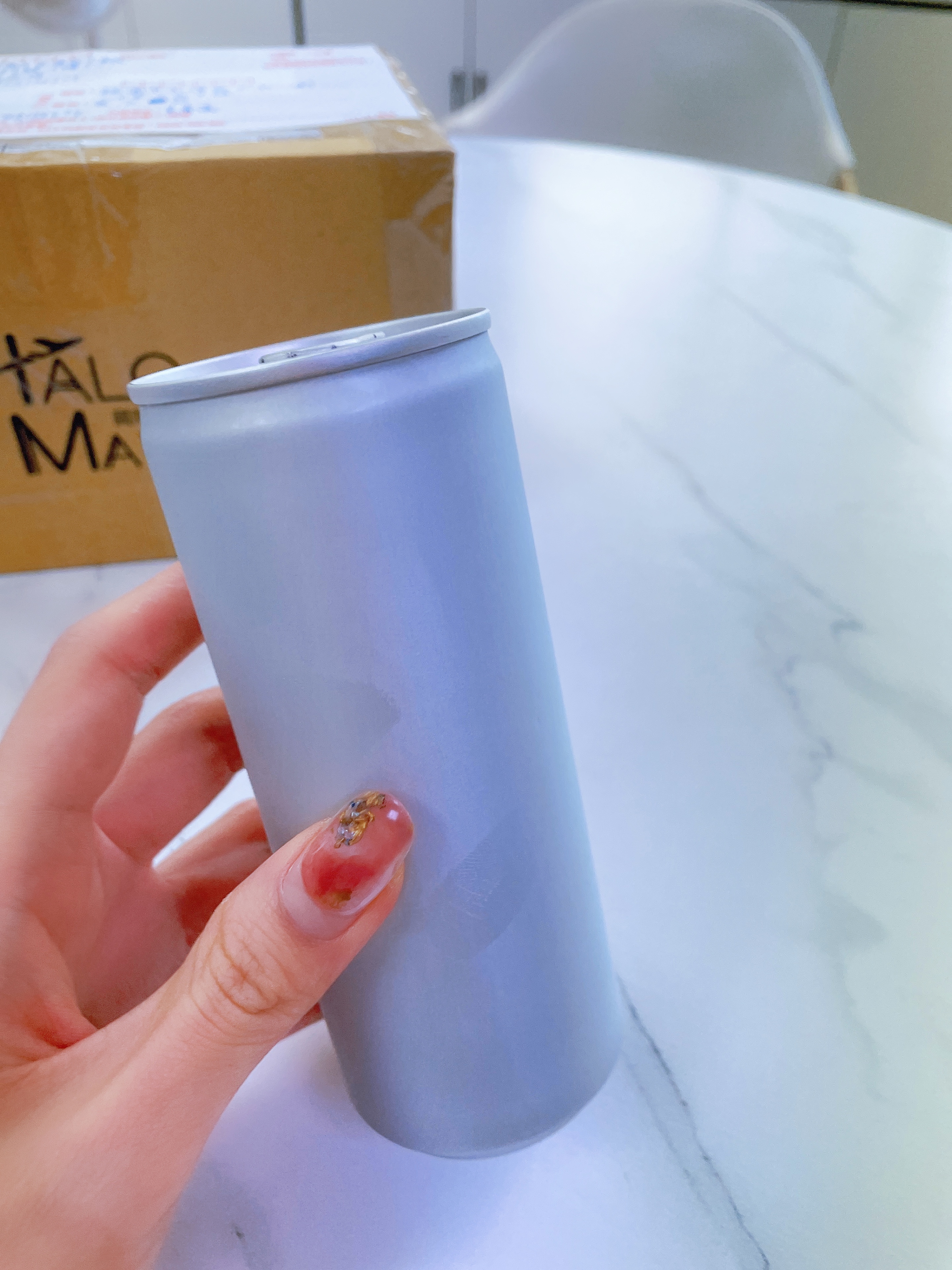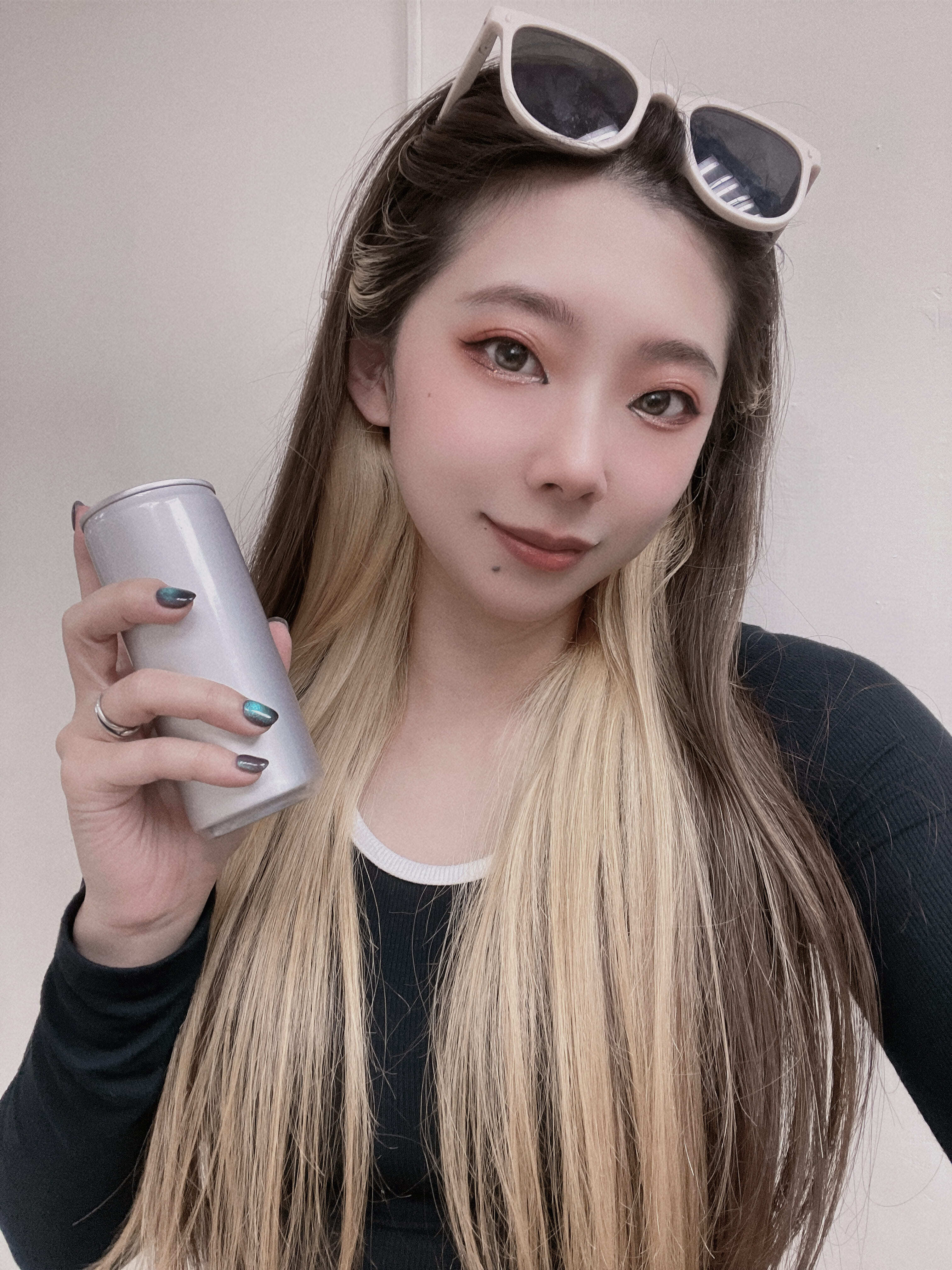 本次體驗是裸裝,但其實是原來的包裝我也覺得沒差,因為原本的銀色包裝設計無法凸顯出這款飲料的高級感,反倒是視覺圖中的粉紫帶有漸層,這樣的包裝比較好看。