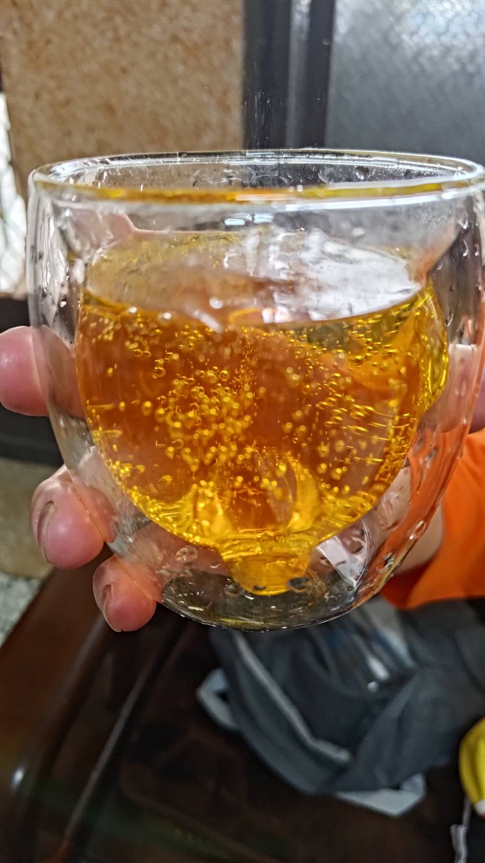 33歲 新北市黃澄澄的顏色讓人看了就很有元氣,有氣泡感,口感不錯。跟市售常見的能量飲料相比,偏酸一些,後段有微微藥草中藥味,喝起來感受不差。