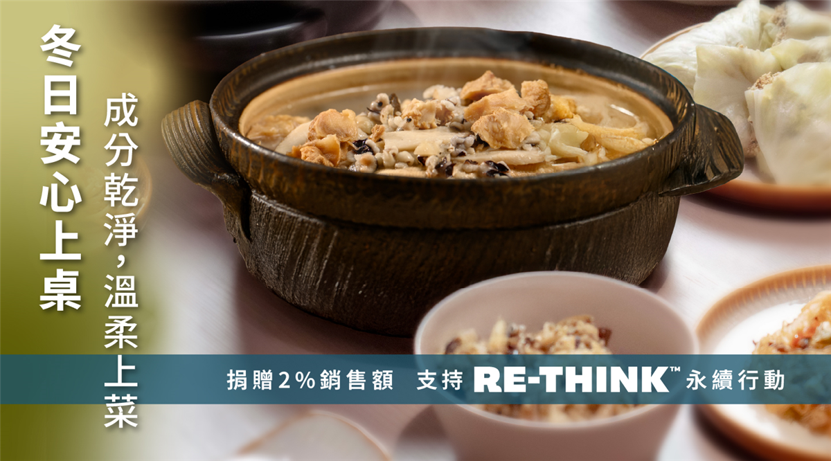 攜手環保組織RE-THINK,長期捐贈2%銷售額,支持永續教育,享用美食之餘也能為環境做公益。
