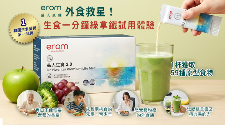 erom公司1984年於韓國創立,自然醫學及預防醫學權威黃聖周博士,超過30年研發,持續提供創新和優質的健康產品和服務,始終如一地將自然與科學融為一體,研究自然食物、冷凍乾燥技術的結合,對人體恢復健康或維持健康的有效性和安全性。