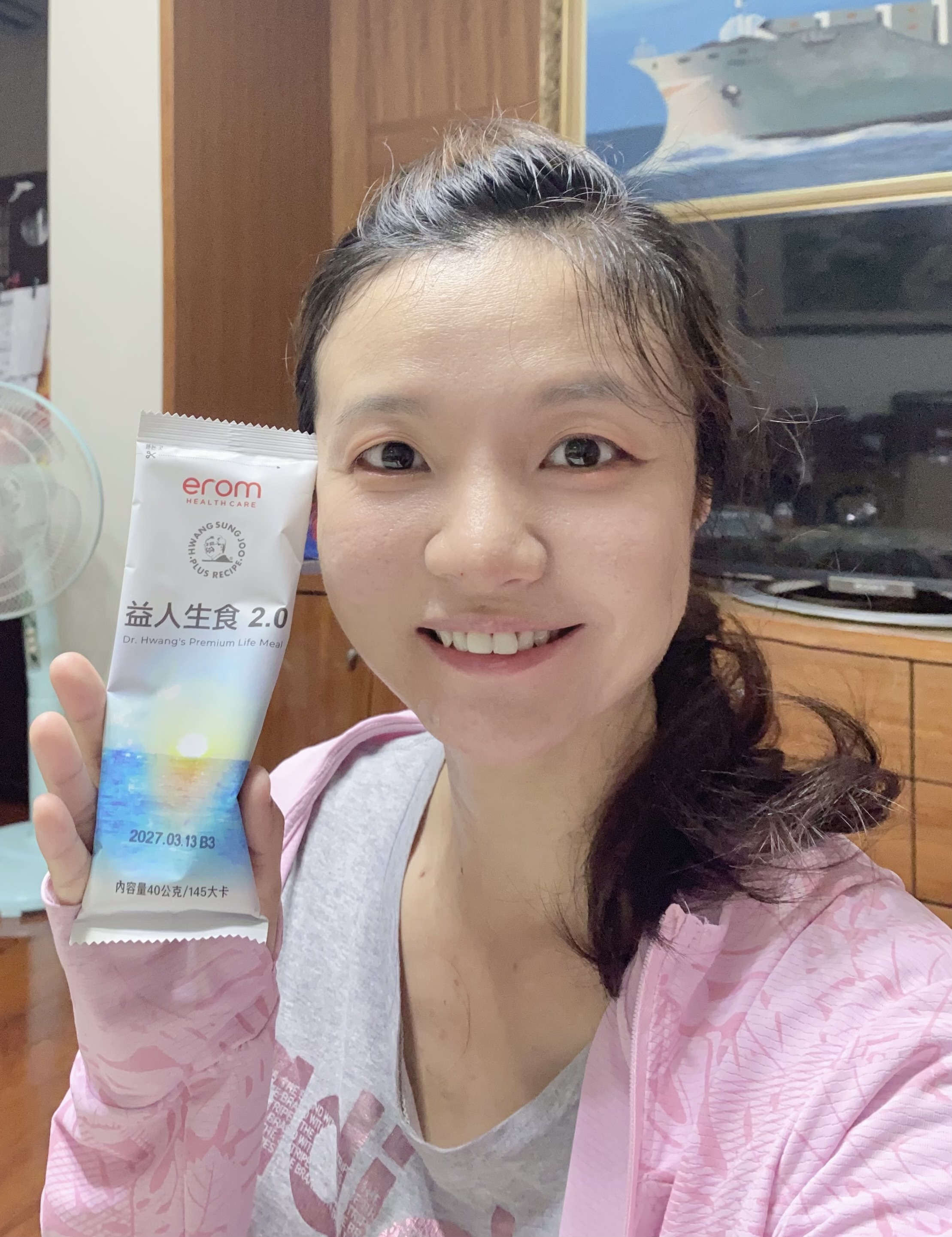 45歲 基隆市疫情後更加注重健康,看很多相關資訊,發現最重要而基本的就是吃,要多元攝取各類原型食物,但一人在外生活,冰箱空間有限,買很多食材會沒地方冰而且也吃不完,再加上工作忙碌,常常沒有心力自己煮,所以早餐常用多穀粉取代,但多穀粉沒有蔬果和蛋白質的營養。erom益人生食解決了這些問題,有豆類、蛋白質含量高的螺旋藻、蔬菜、水果,還有好幾種超級食物,營養均衡又健康,完勝一般榖粉。