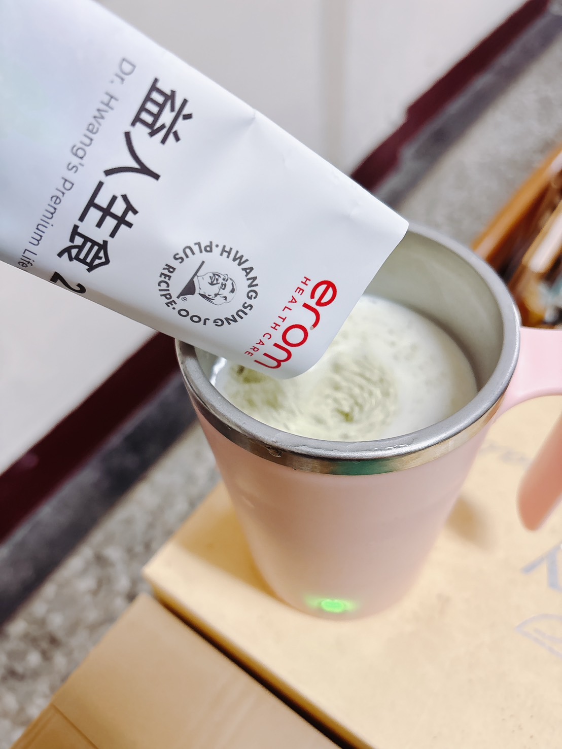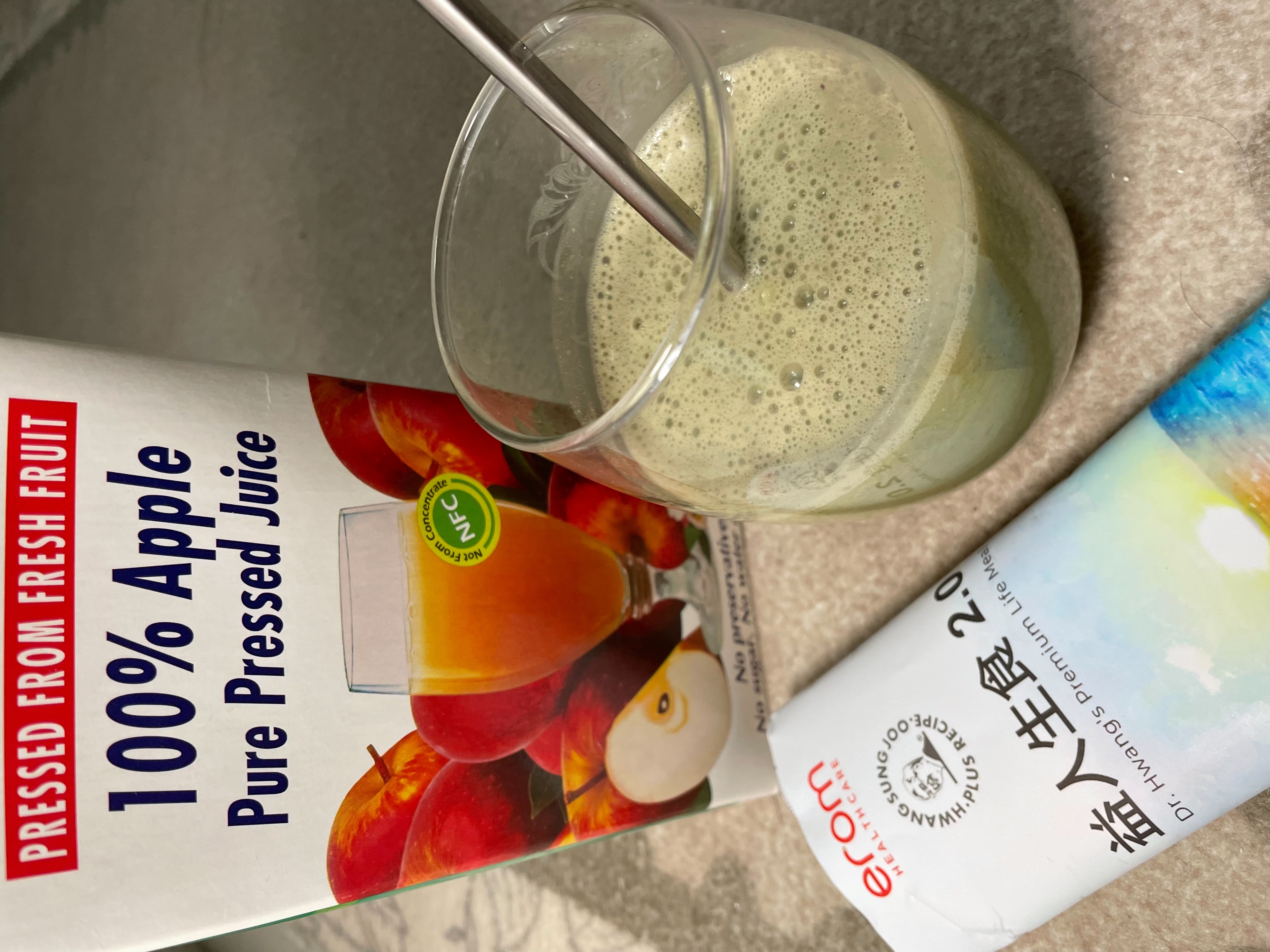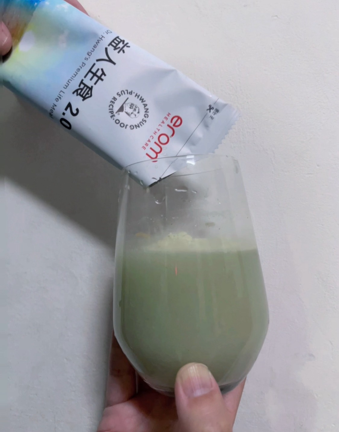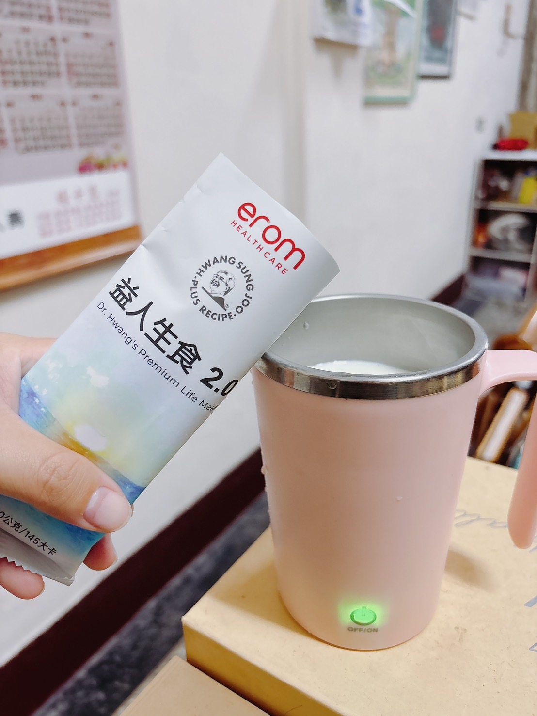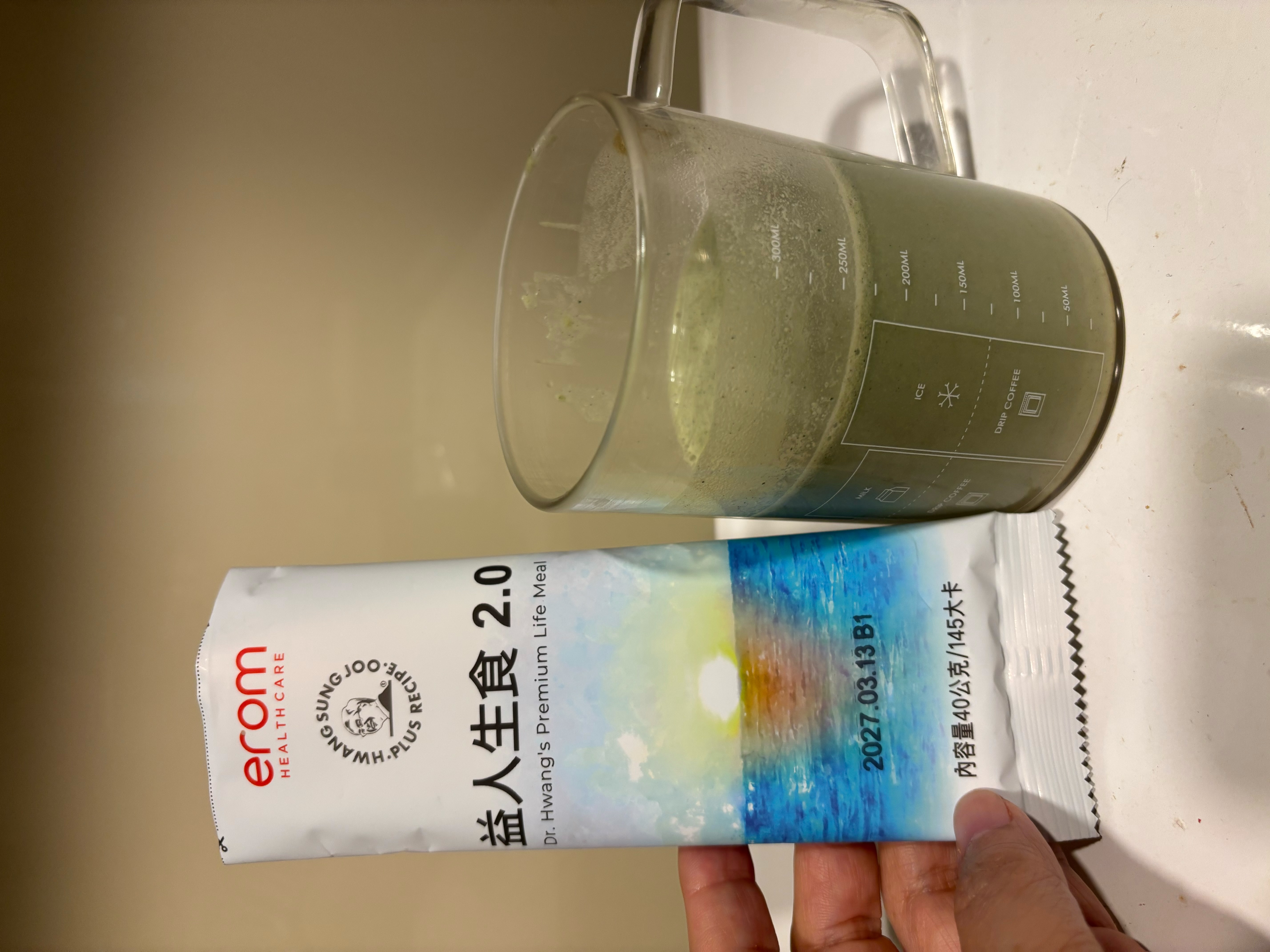 身為媽媽,早餐對我來說一定要有熱熱的主食,像是包子、饅頭加蛋,再配上一杯豆漿,才有飽足感。不過這樣的組合,常常蔬果攝取就比較不足。這次體驗 erom 益人生食 2.0,我就直接把它加入豆漿裡一起喝,結果非常搭,口感溫和滑順,像豆漿加了淡淡抹茶香,沒有可怕的菜味,小孩也能接受(還很喜歡)。