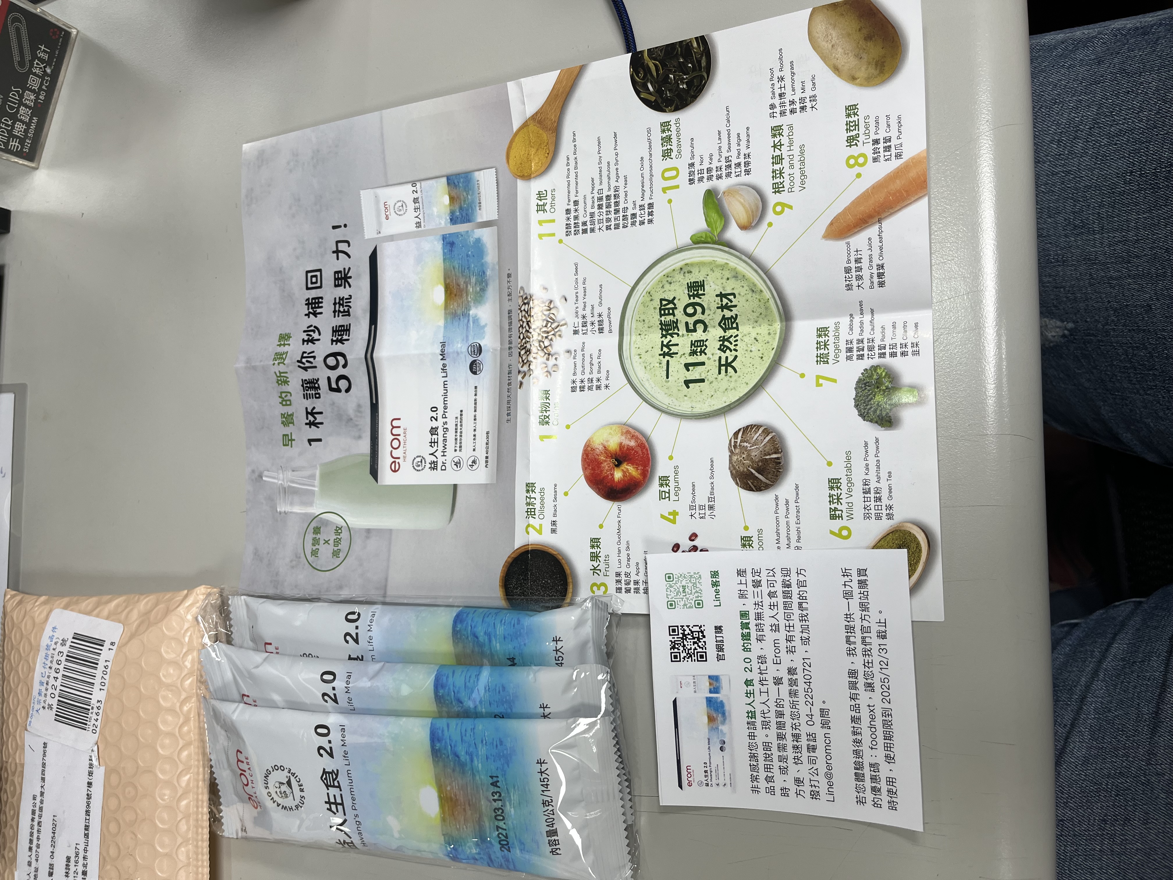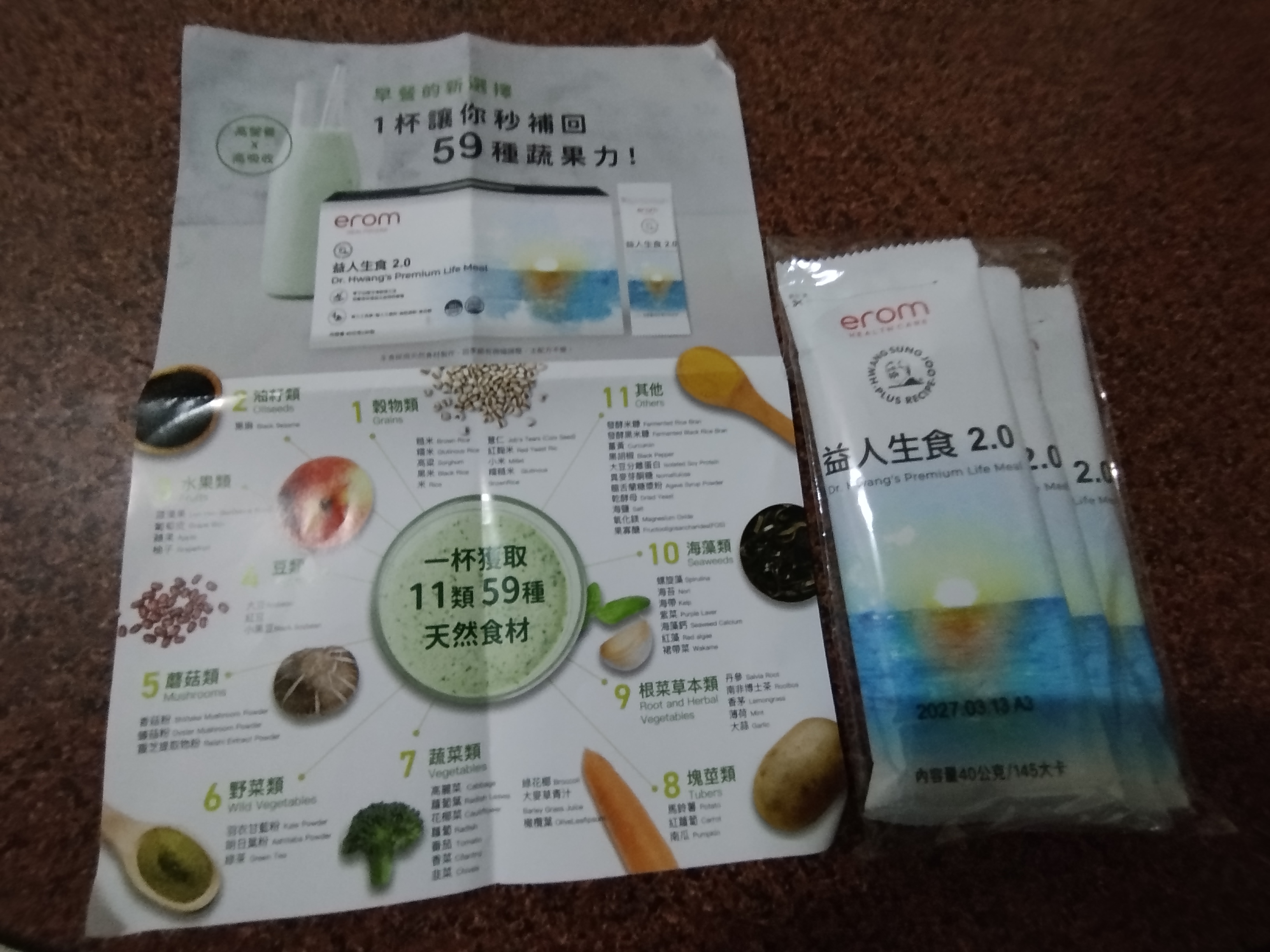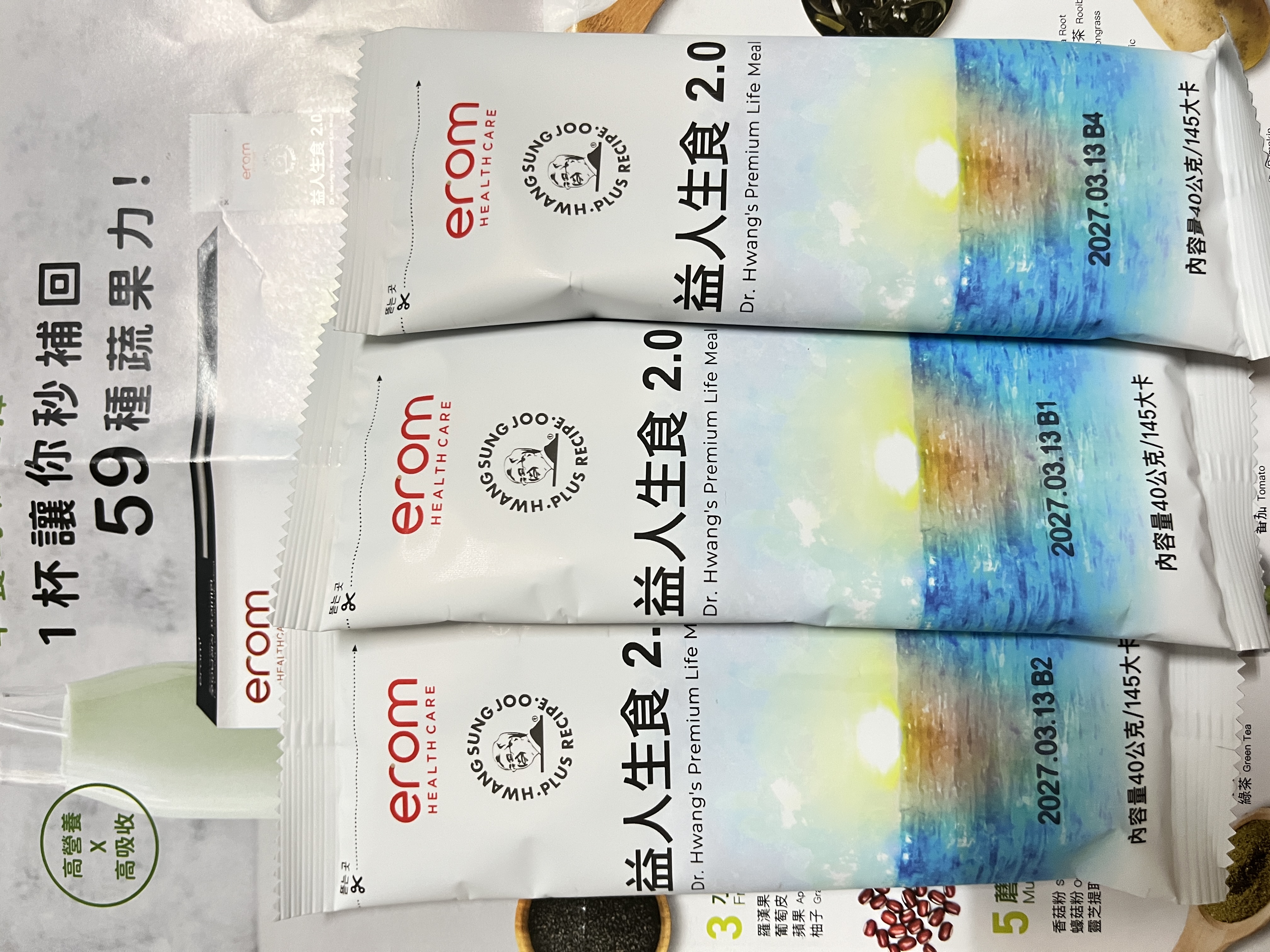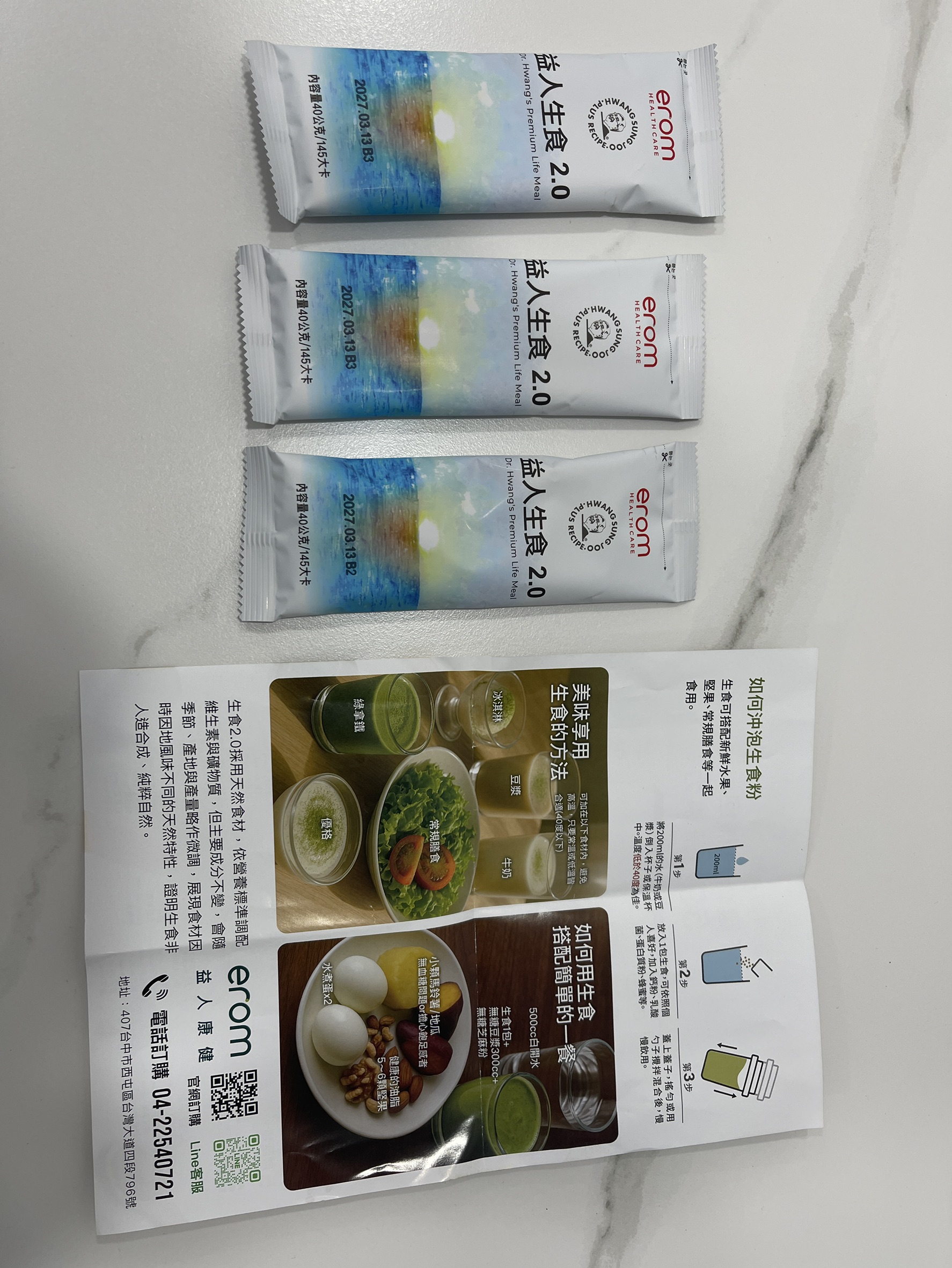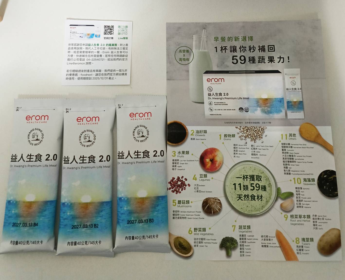 34歲 雲林縣這次收到erom益人生食營養粉包共3包,及使用介紹跟說明。