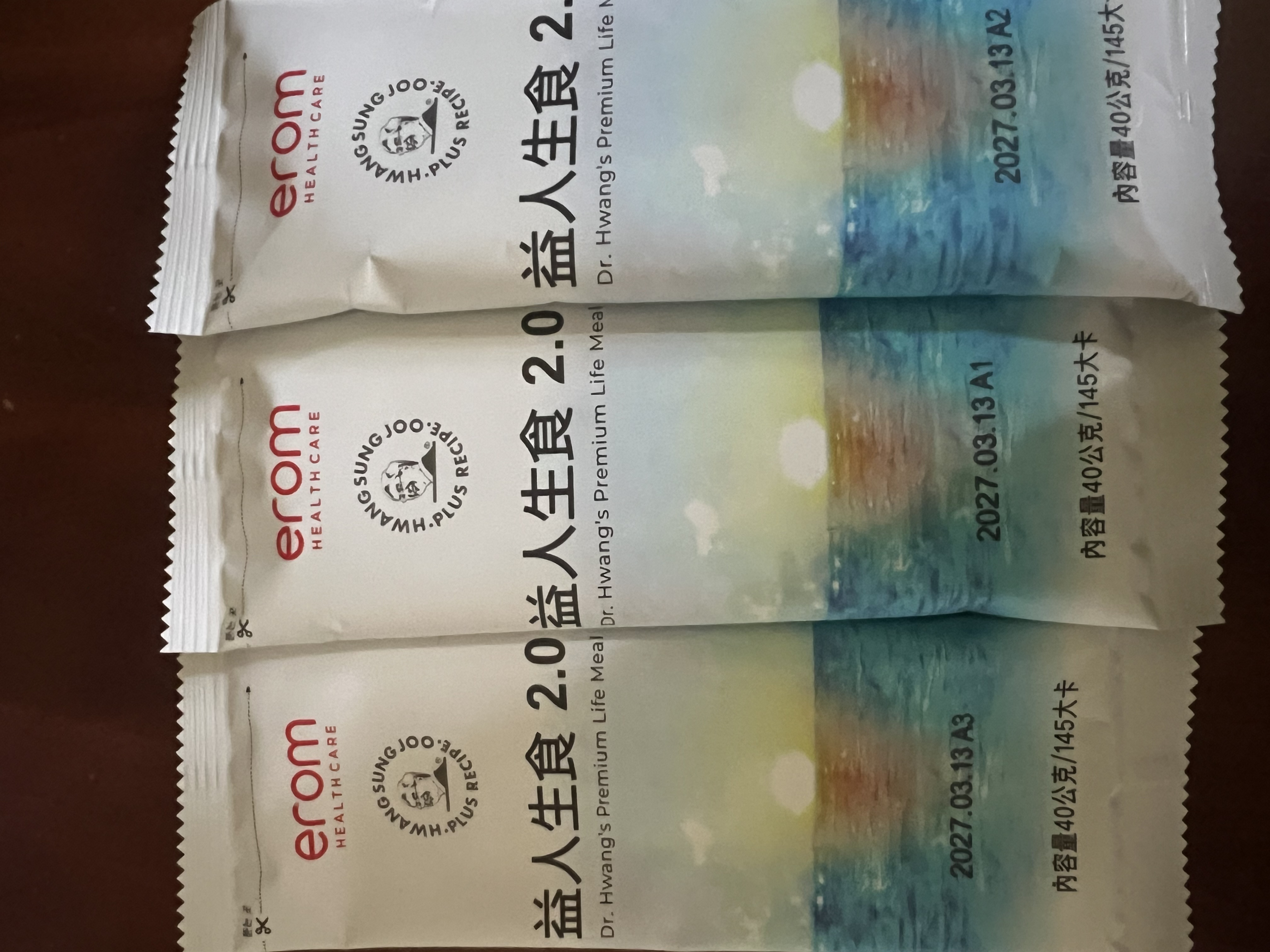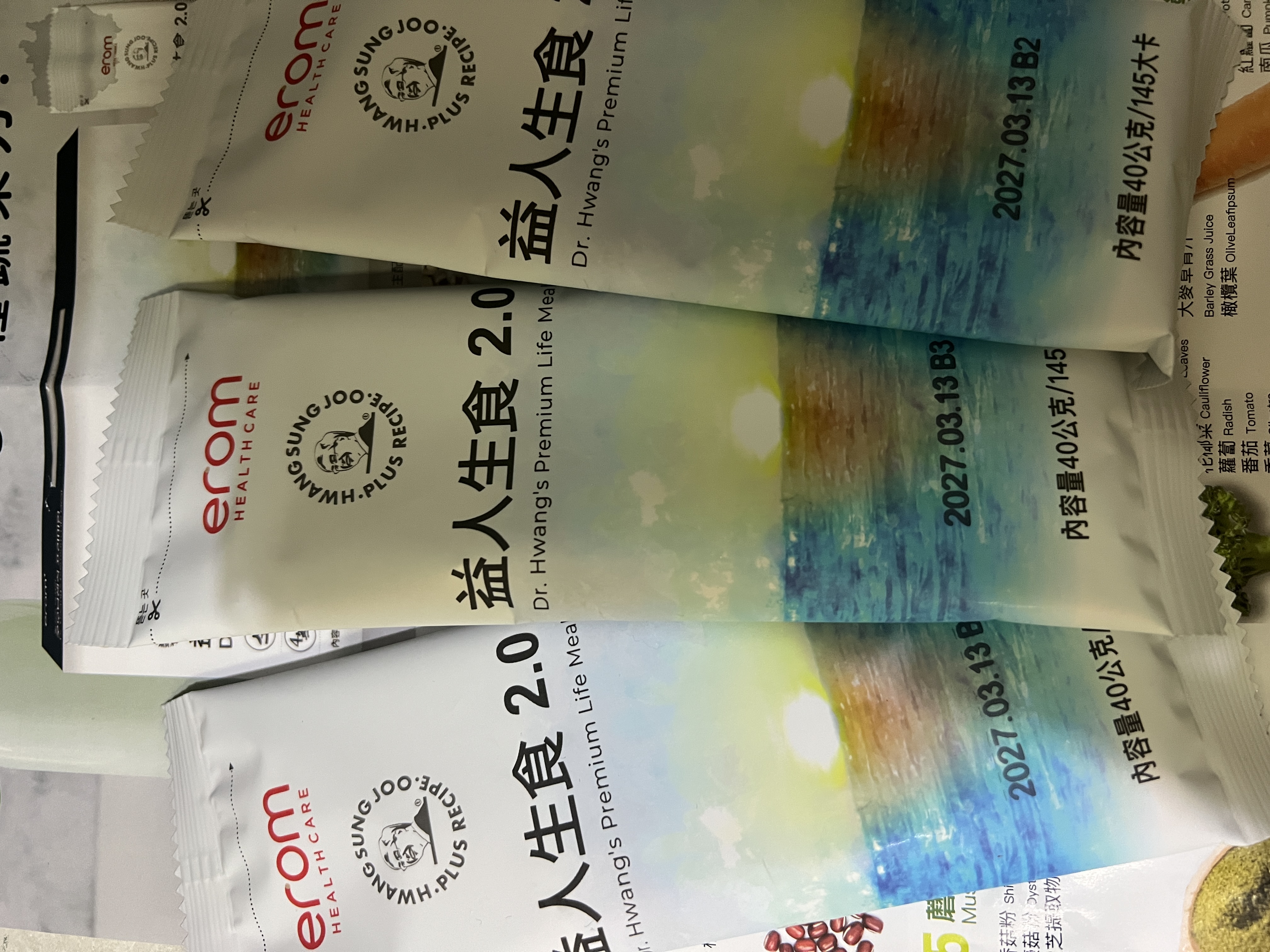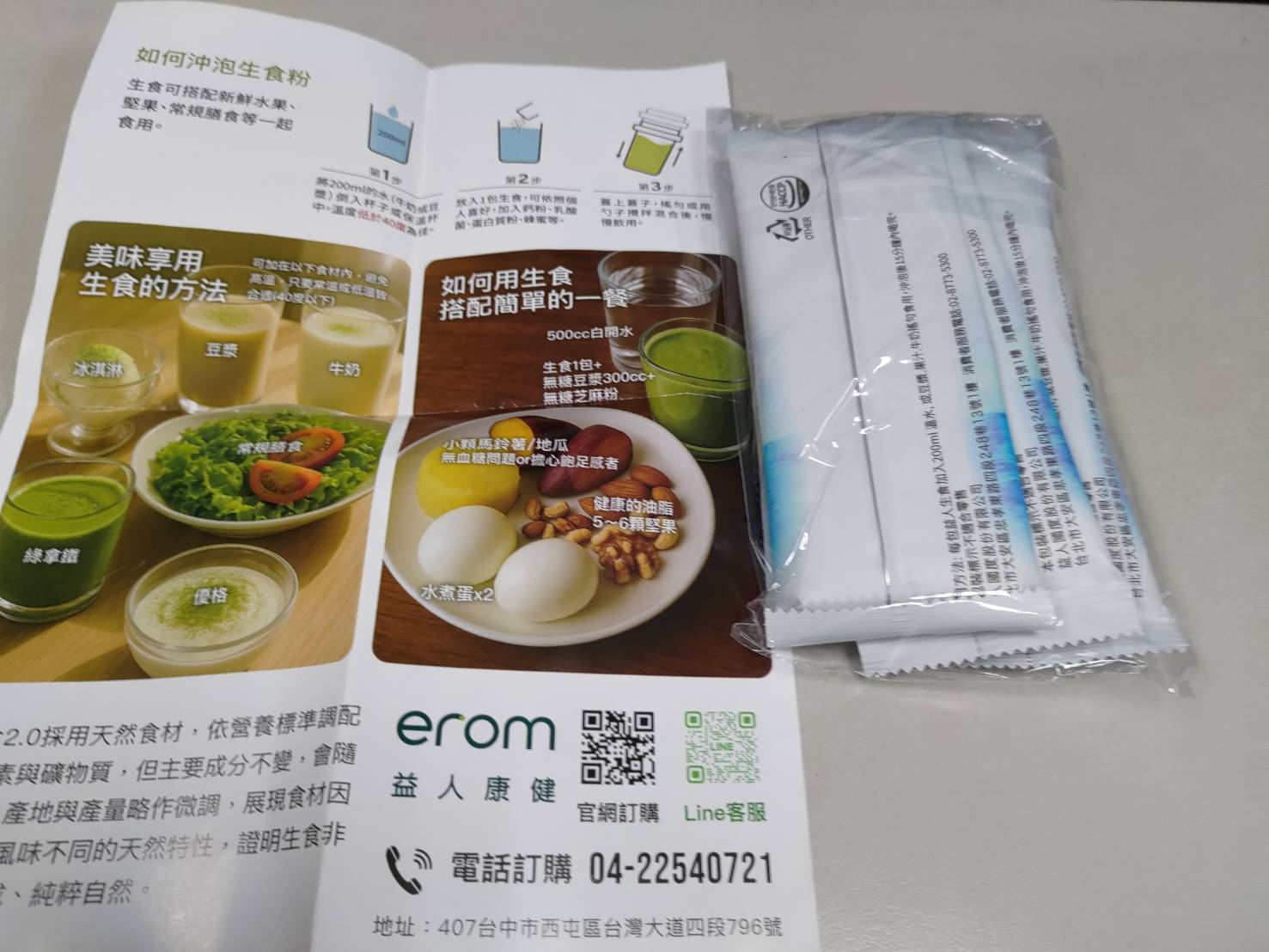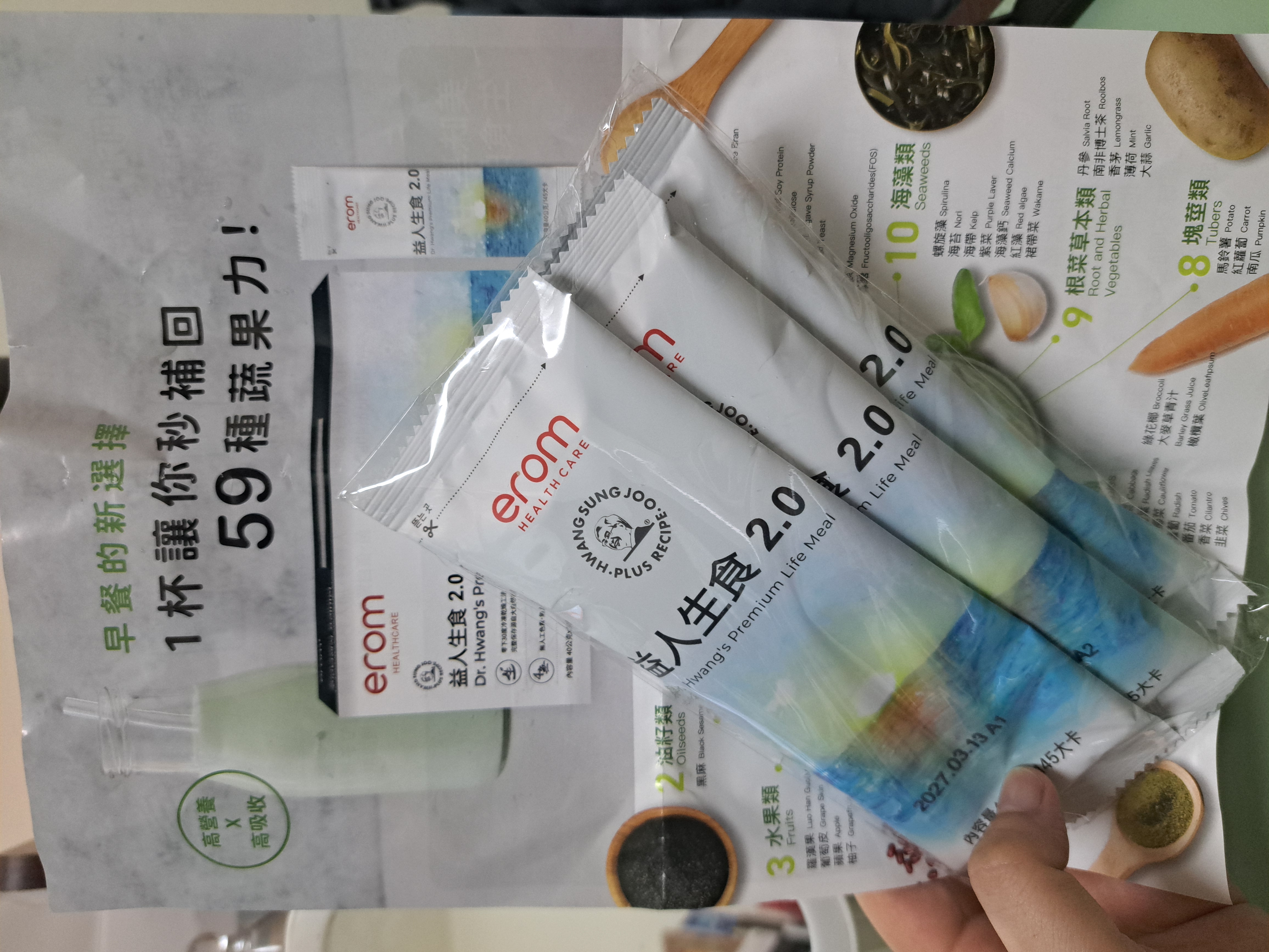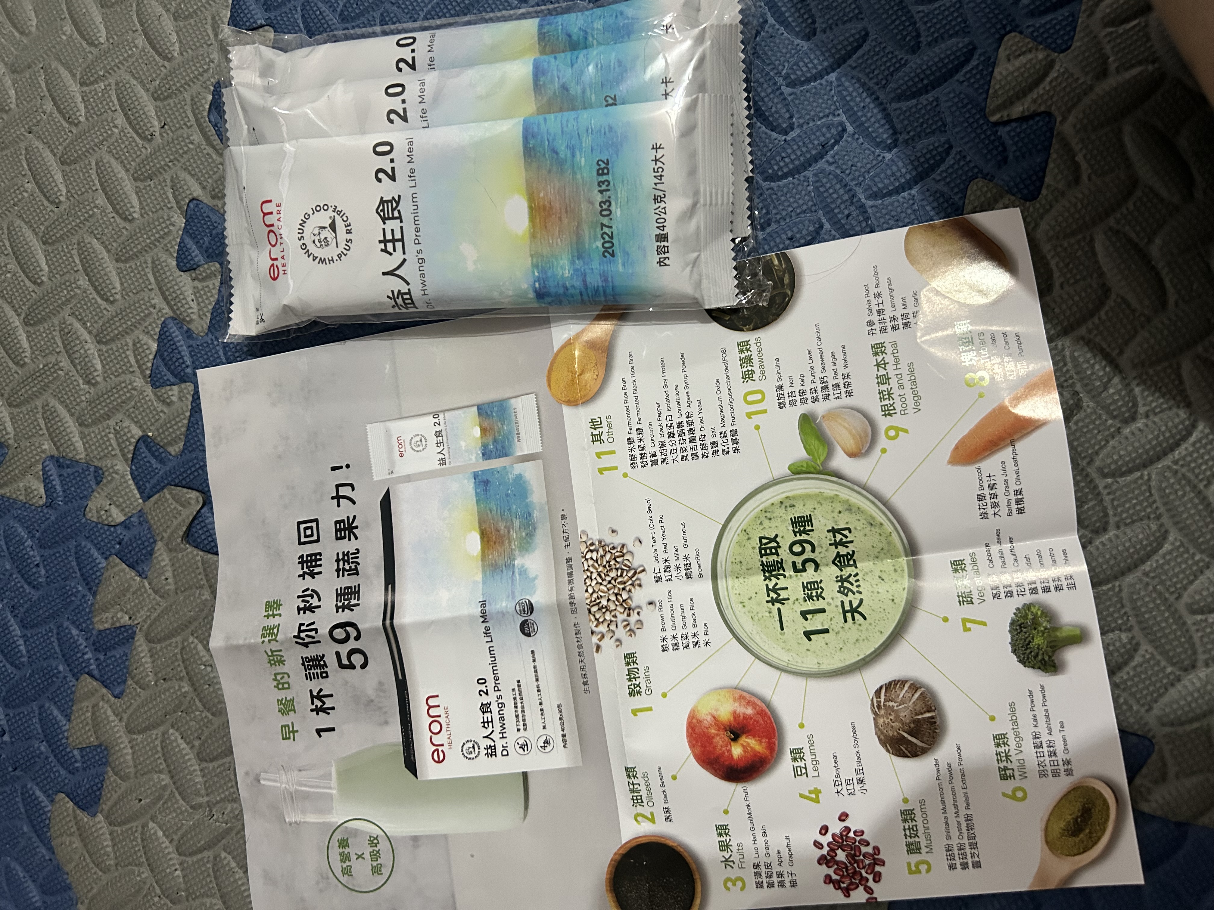 34歲 雲林縣這次收到erom益人生食營養粉包共3包,及使用介紹跟說明。