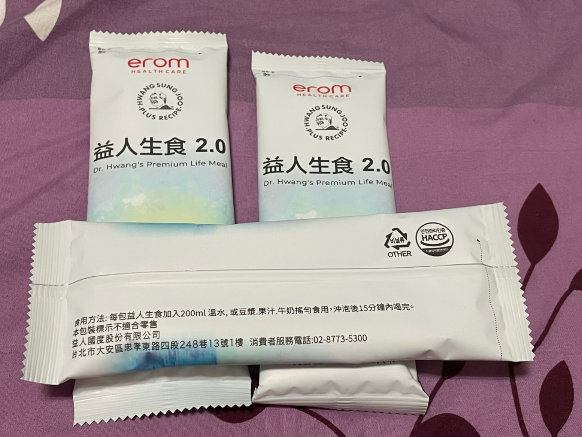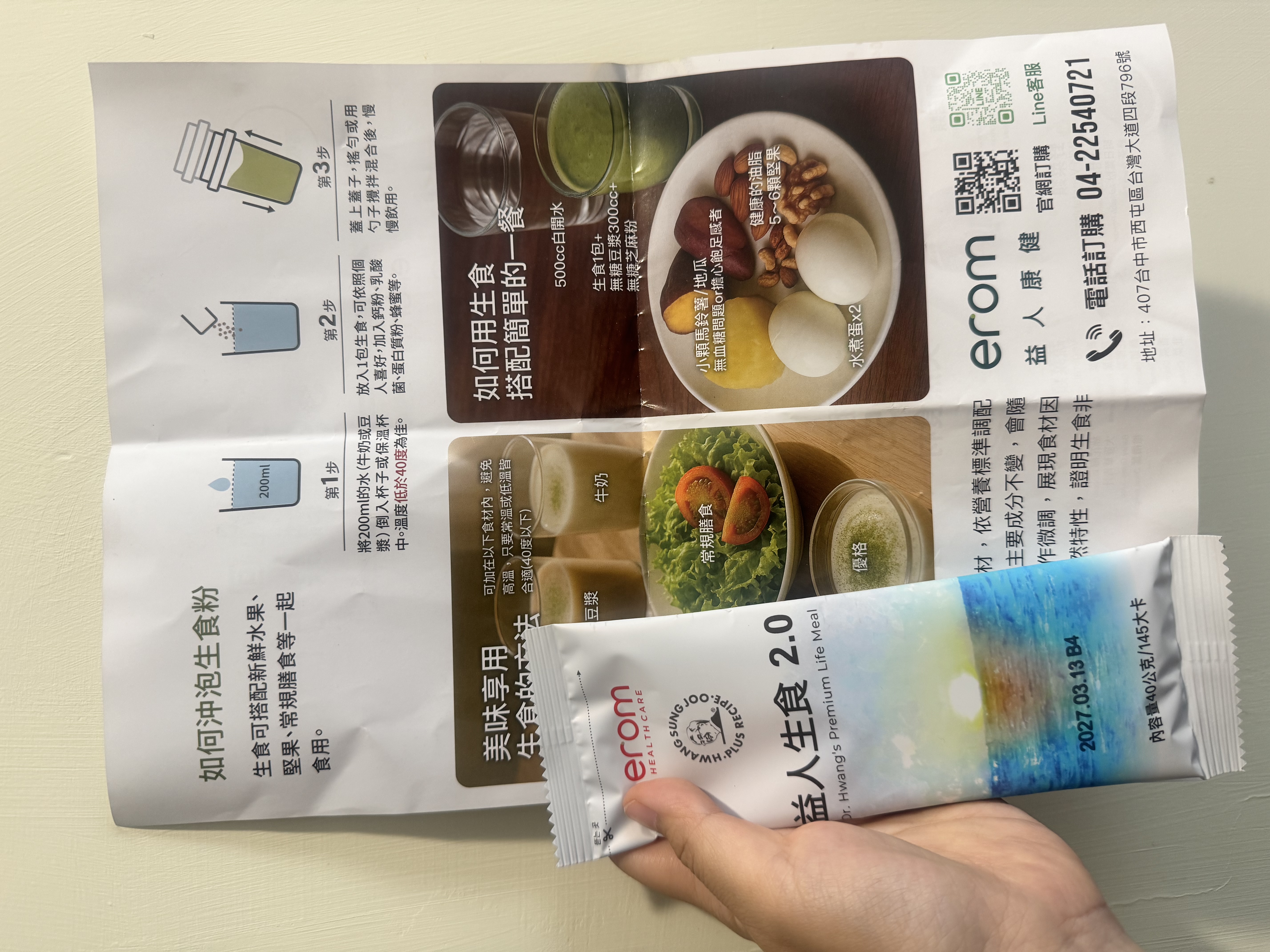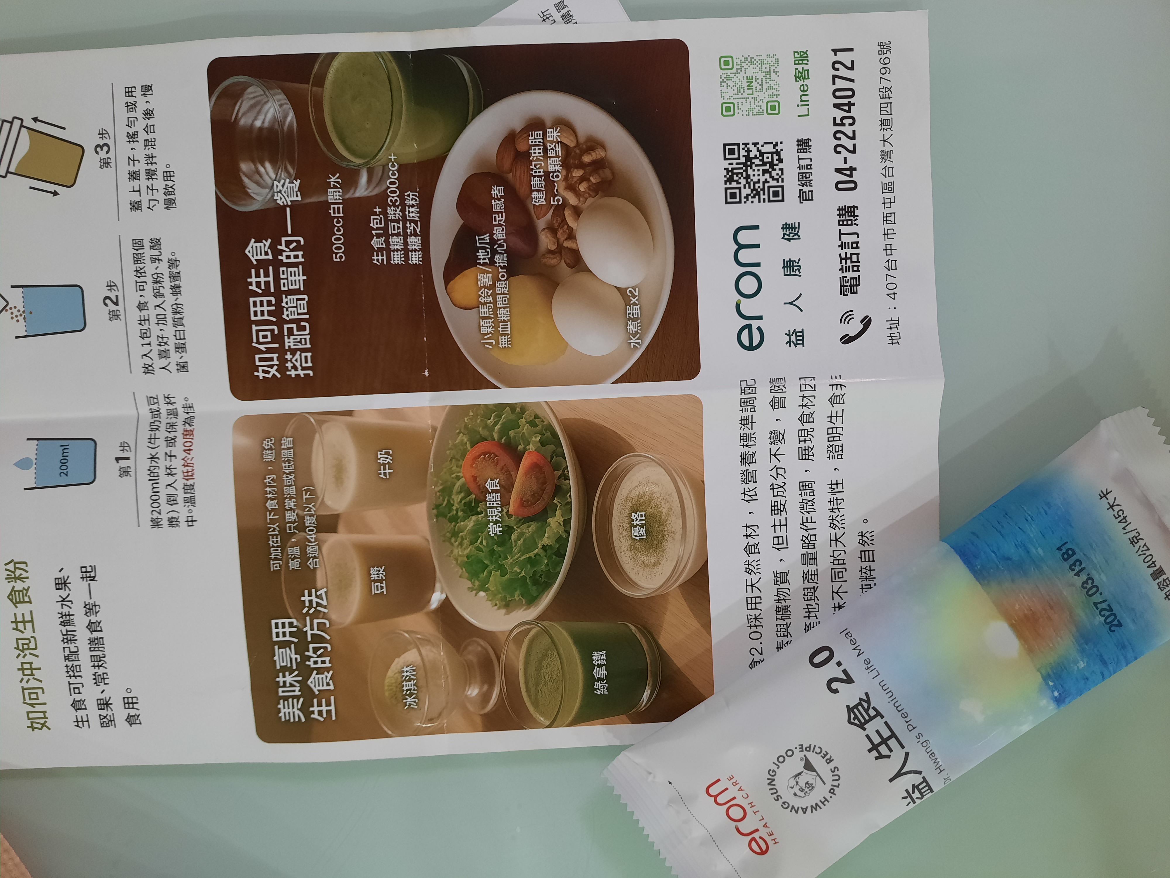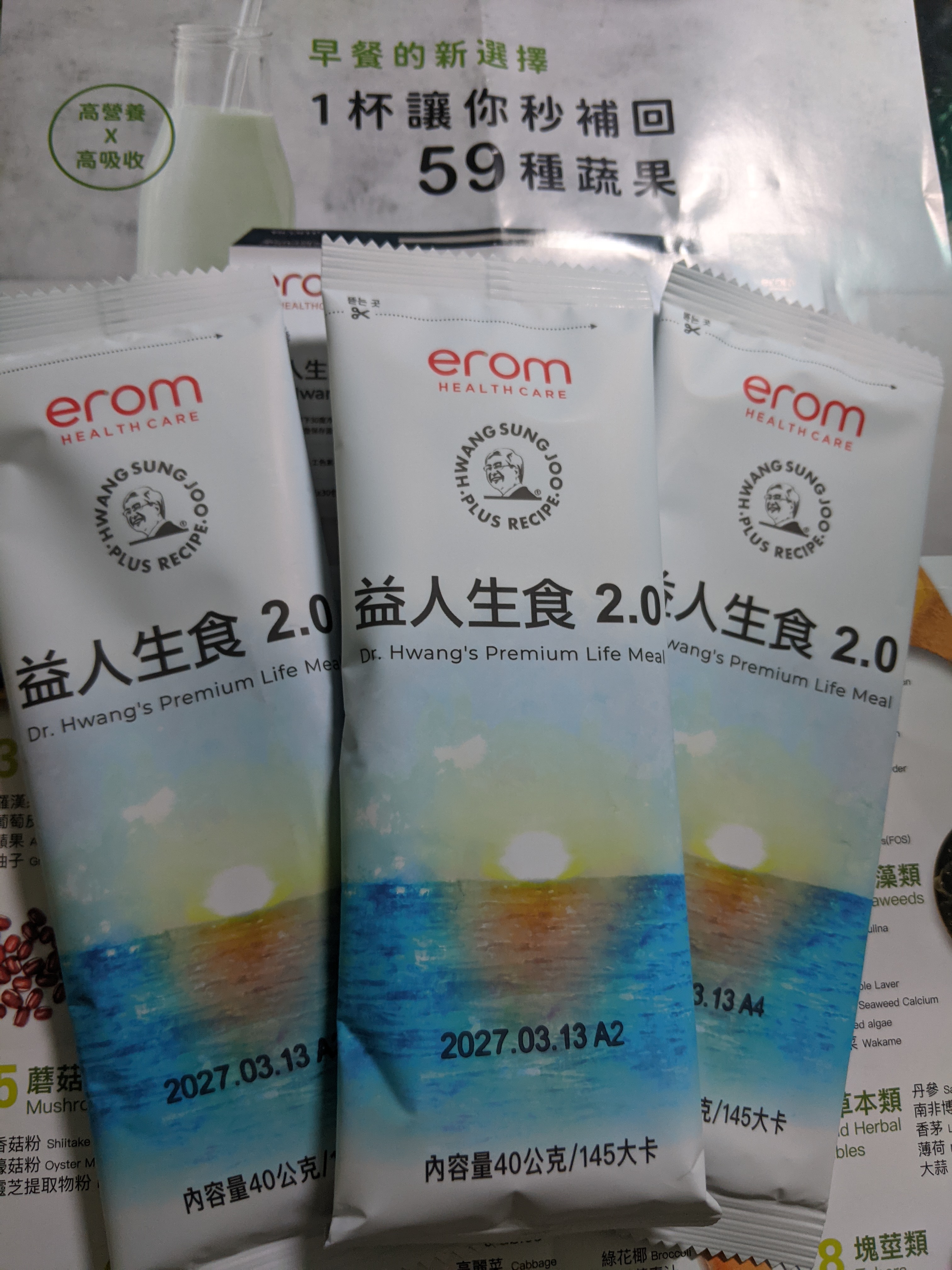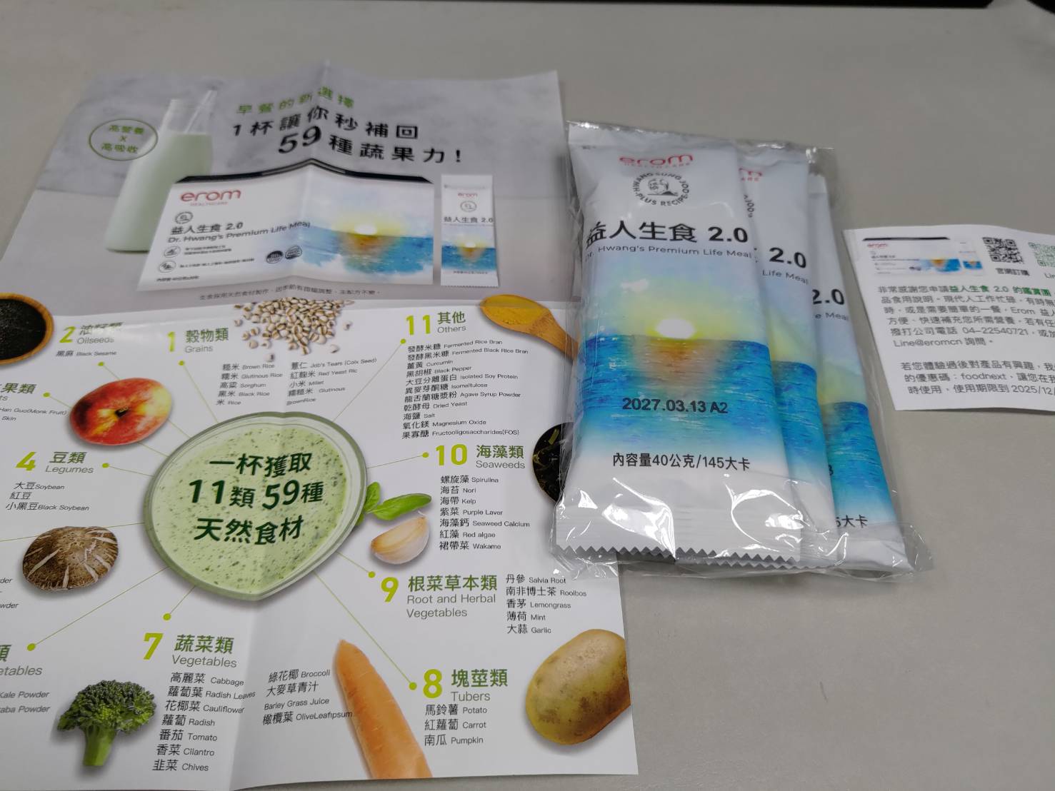 34歲 雲林縣這次收到erom益人生食營養粉包共3包,及使用介紹跟說明。