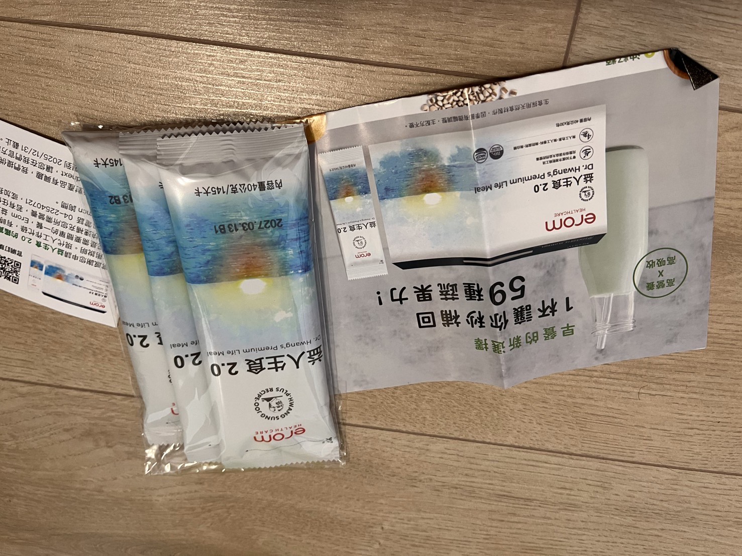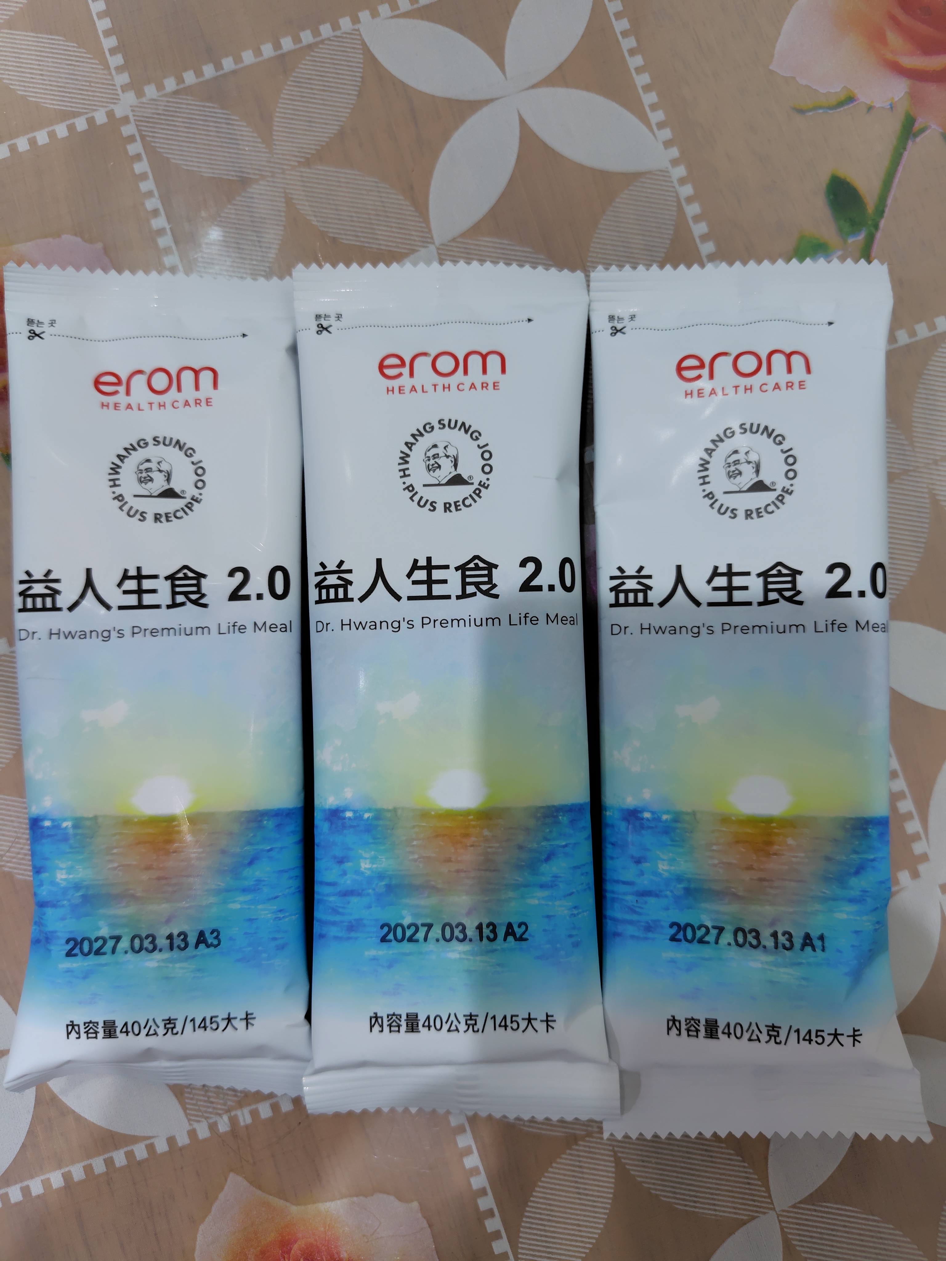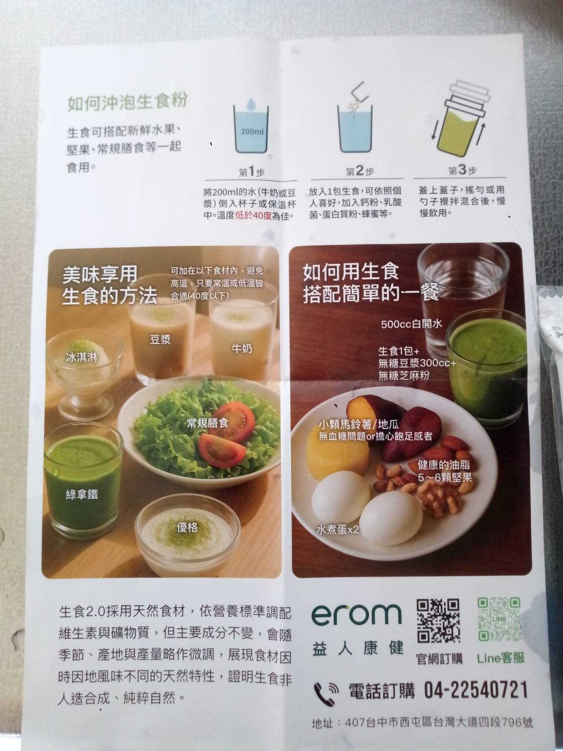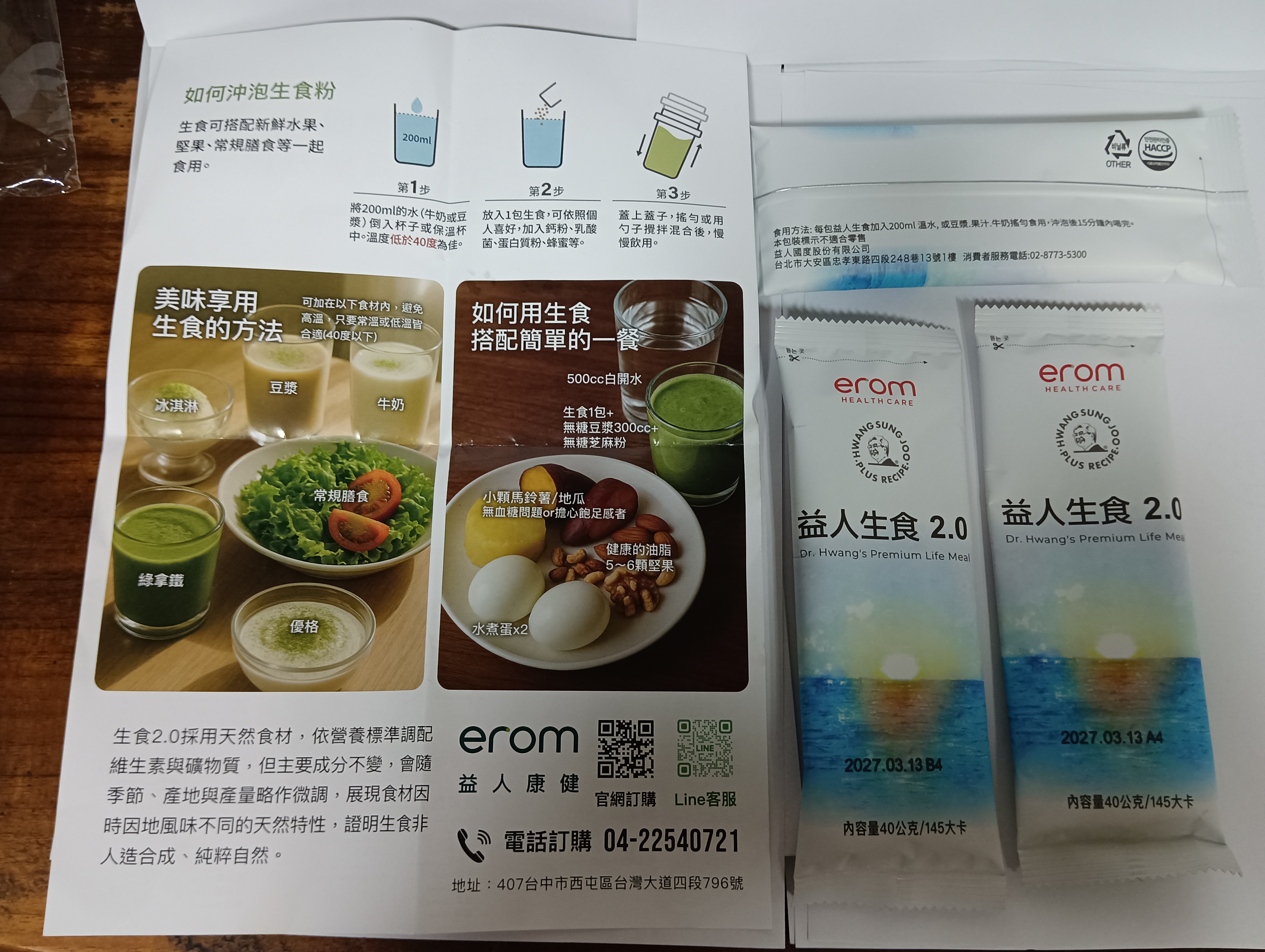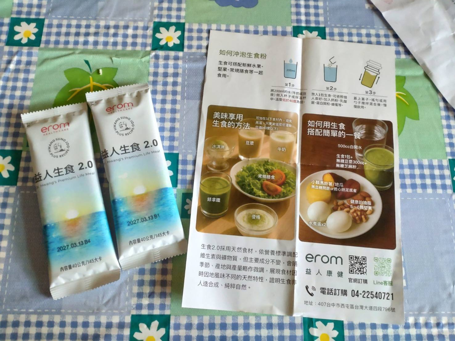 34歲 雲林縣這次收到erom益人生食營養粉包共3包,及使用介紹跟說明。
