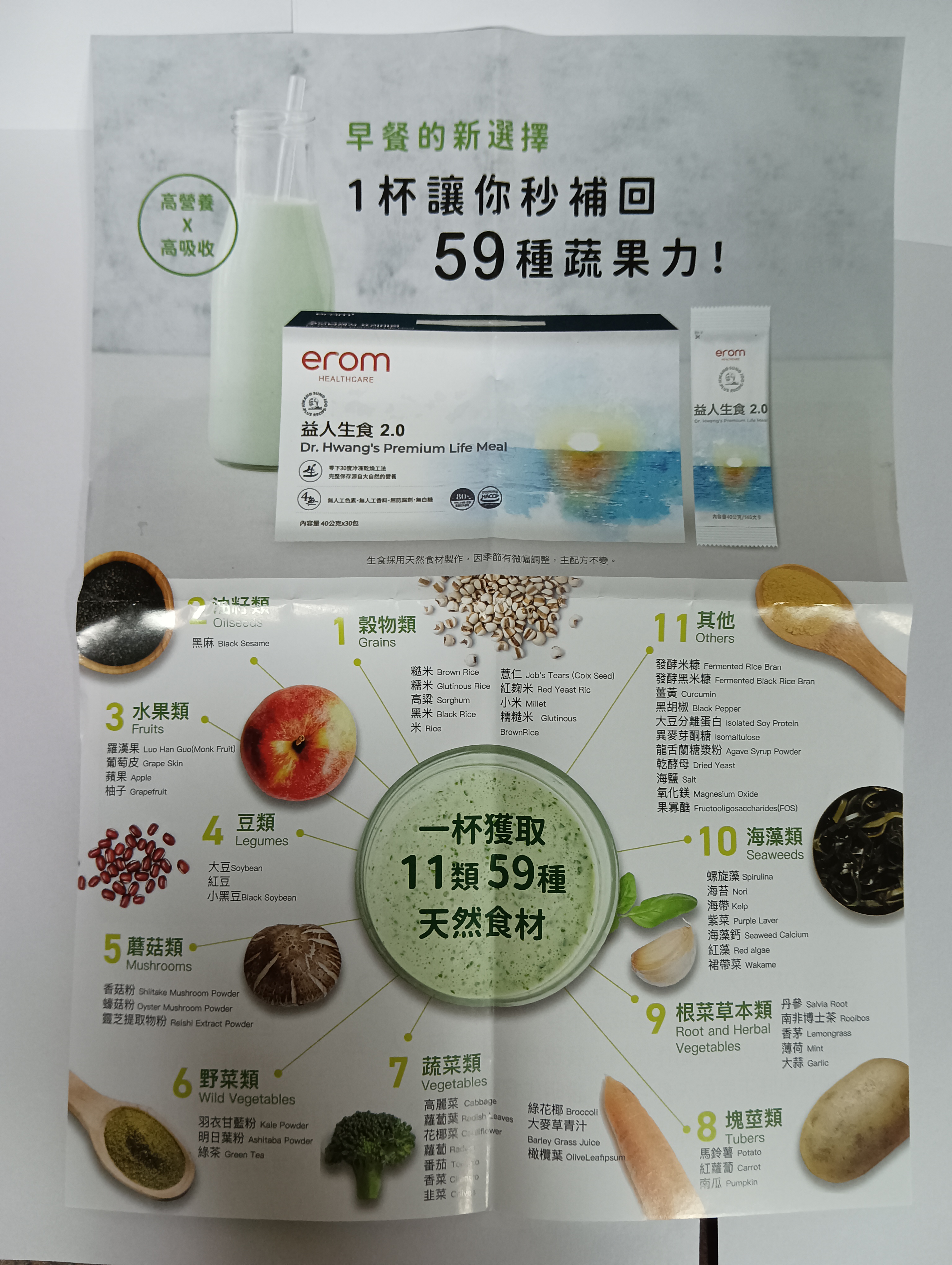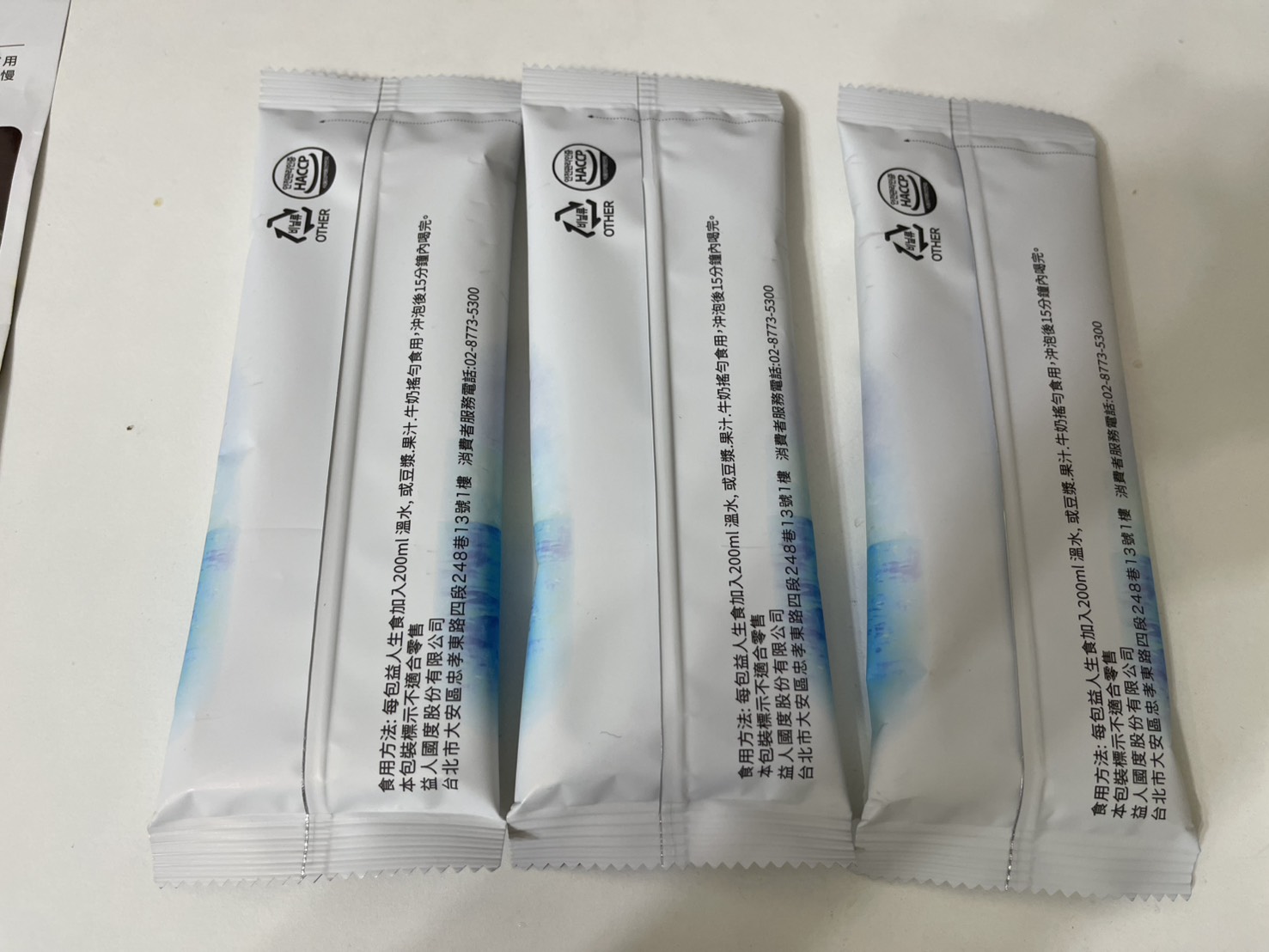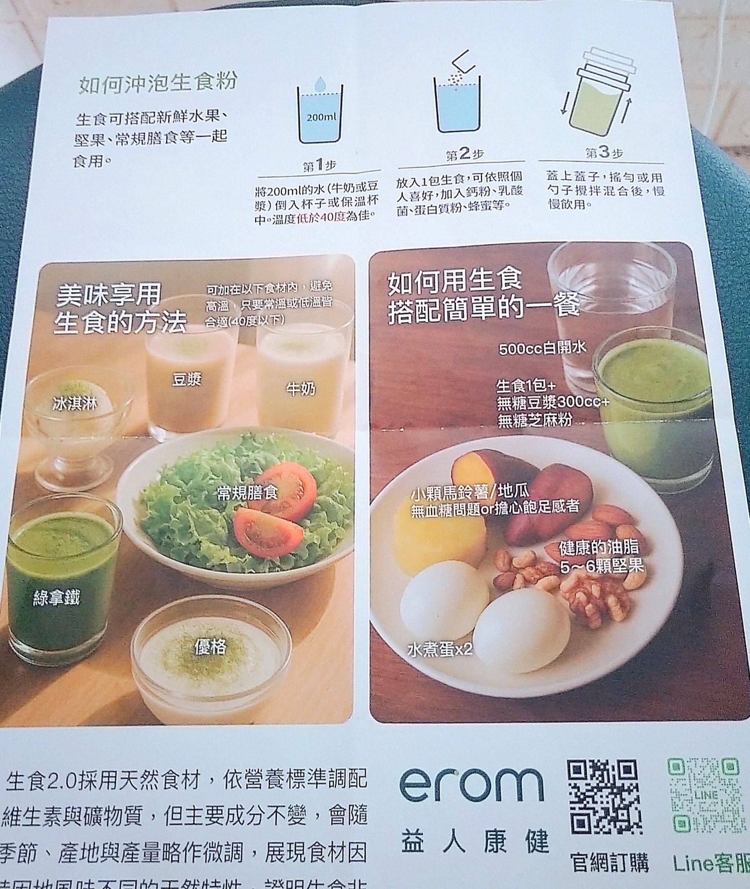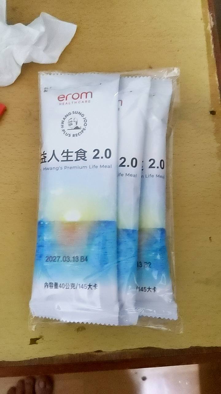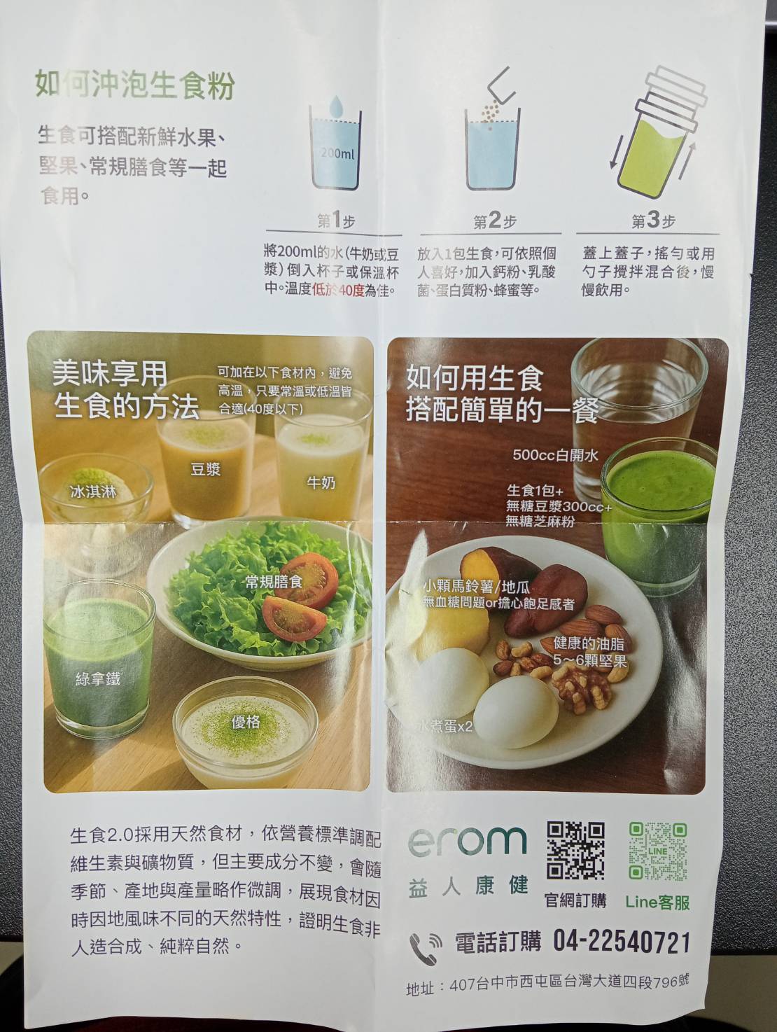34歲 雲林縣這次收到erom益人生食營養粉包共3包,及使用介紹跟說明。