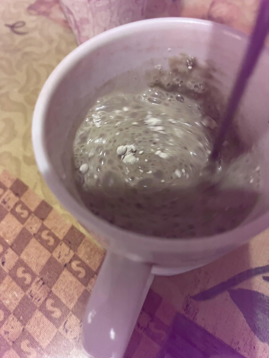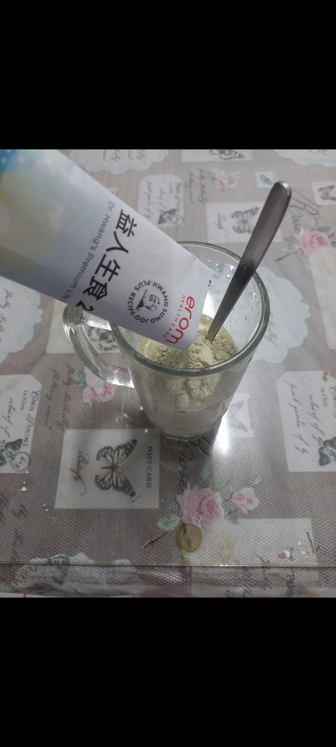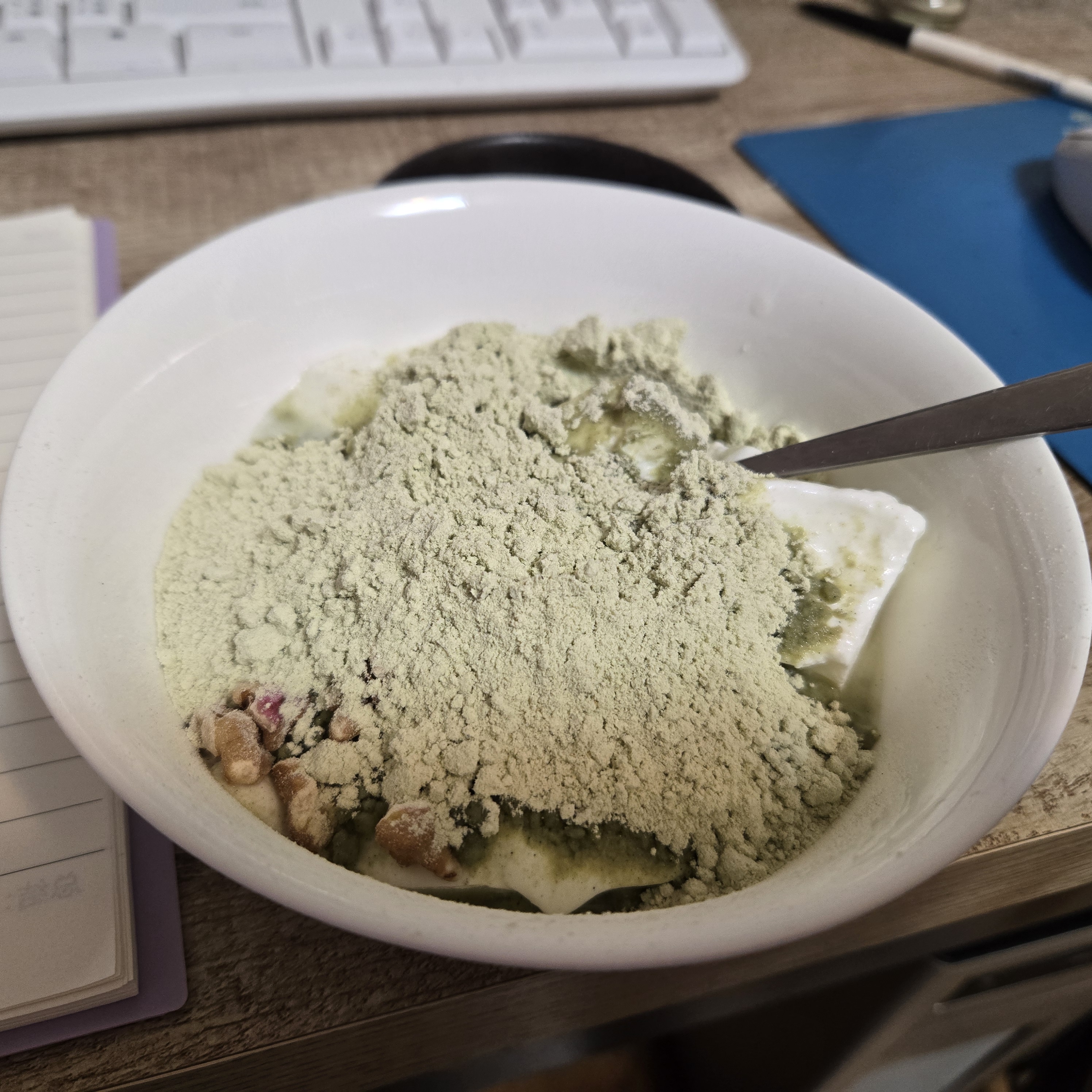45歲 新北市食用時,像是抹茶色的細粉很特別。可單一食用加常溫不用太熱的熱水直接攪拌飲用,入口即化很順喉,最後喝完勺子有殘留細渣吃的到果食成份,也可以添加豆漿或牛奶一起食用,喝起來口感也是很搭,而且飲用完還真的很有飽足感,可以省下來早餐的費用回購還蠻值得。