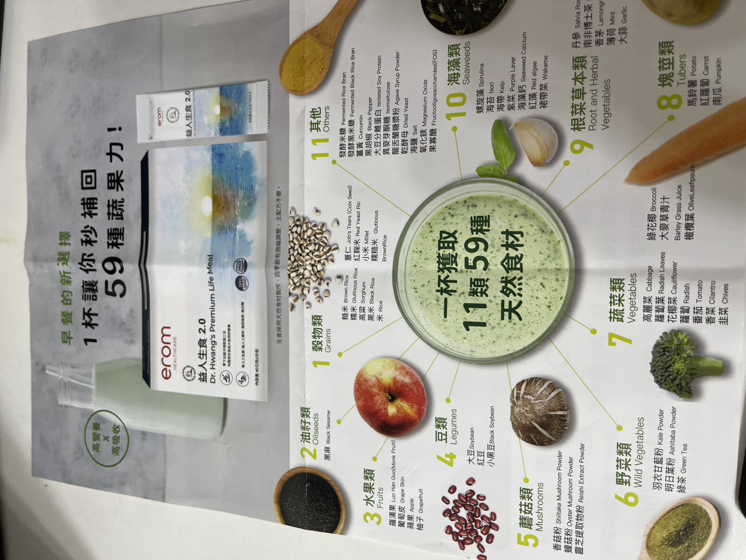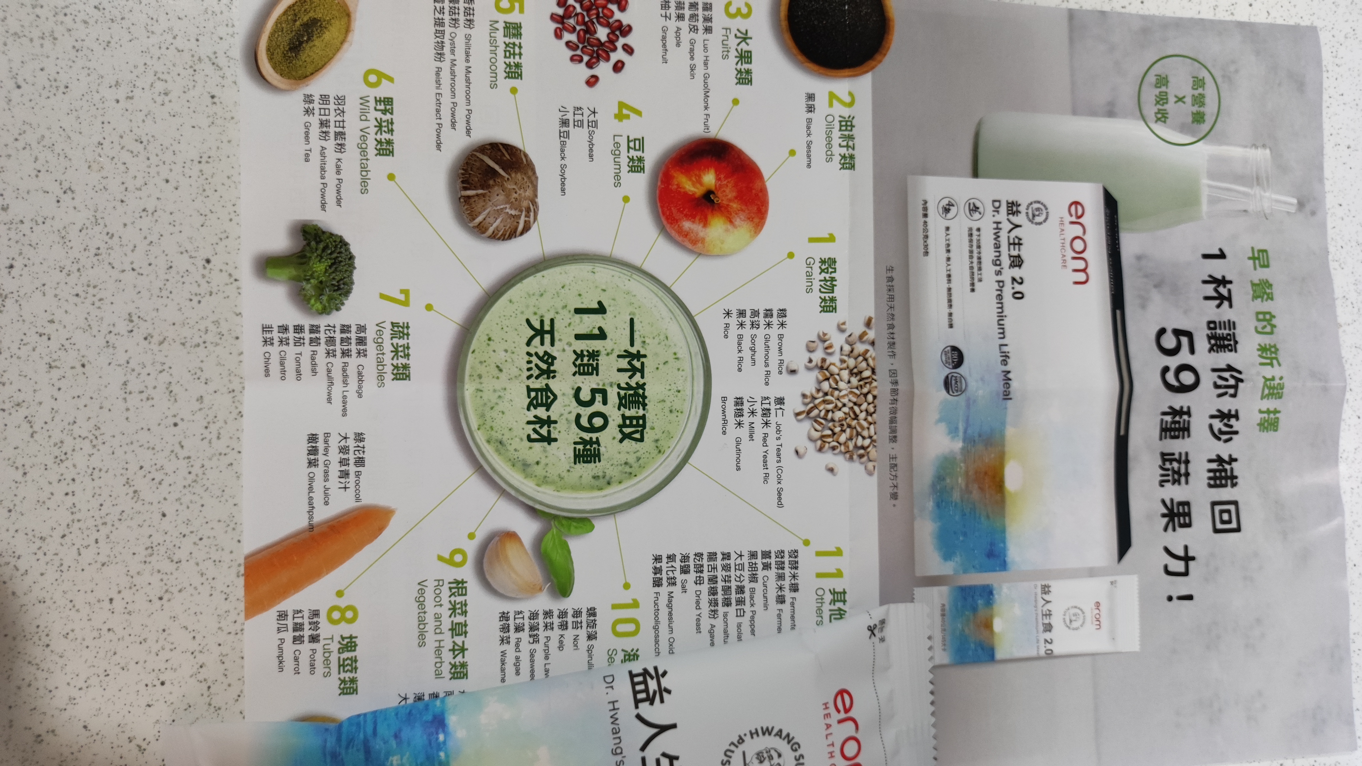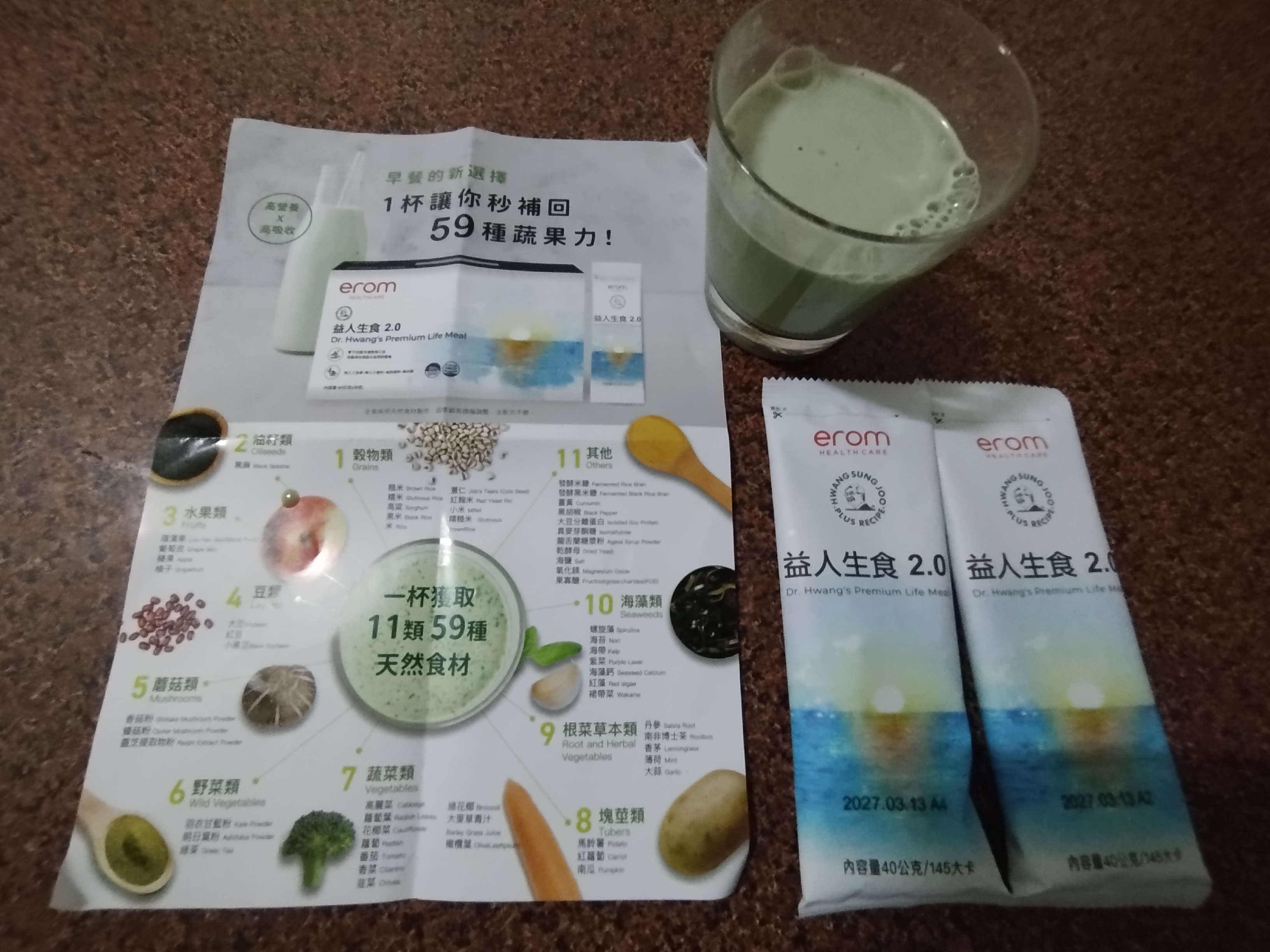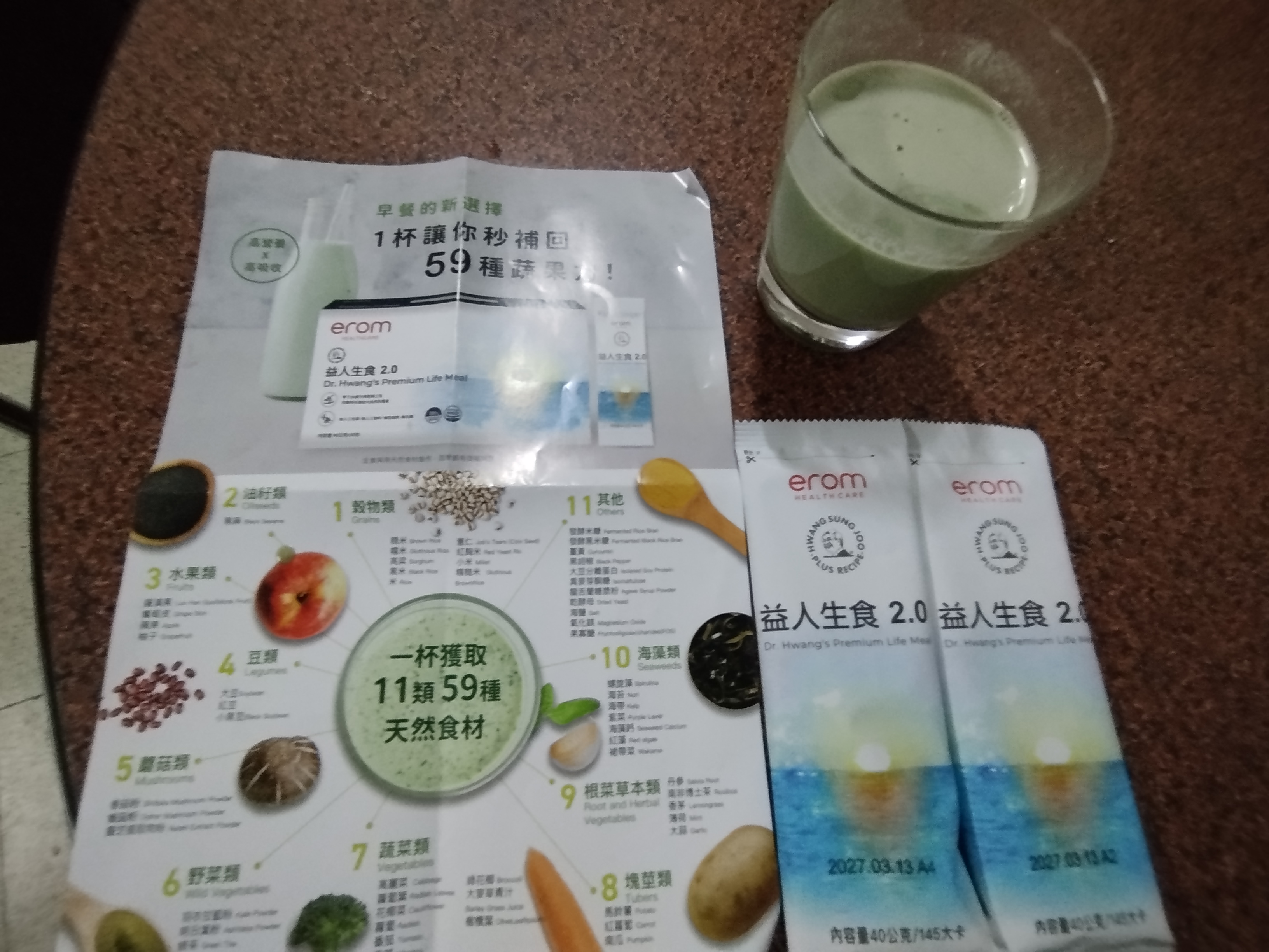63歲 新北市現在正夯的「erom益人生食」~含59種天然食材,一杯就輕鬆搞定。這麼方便的營養補充品,當然想體驗看看!很幸運獲選了!!