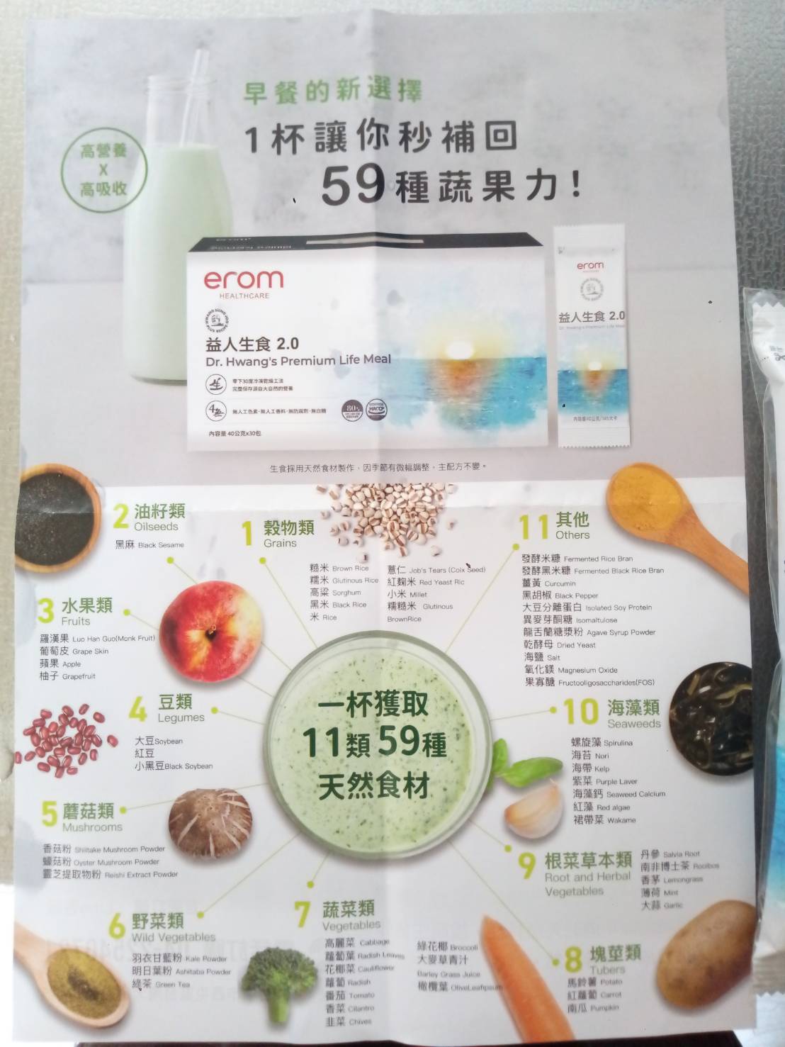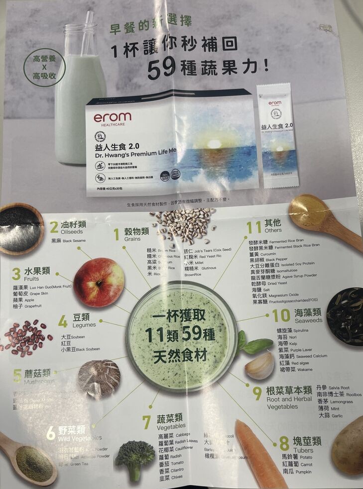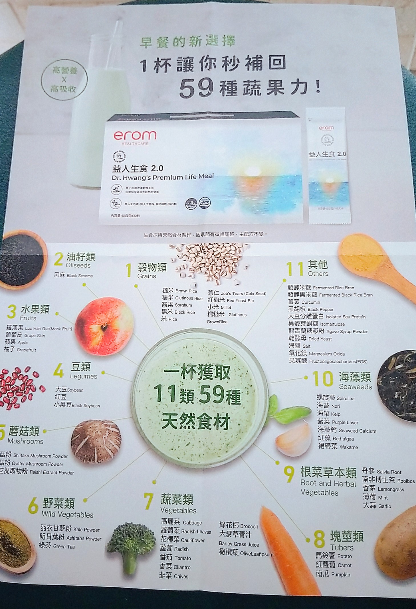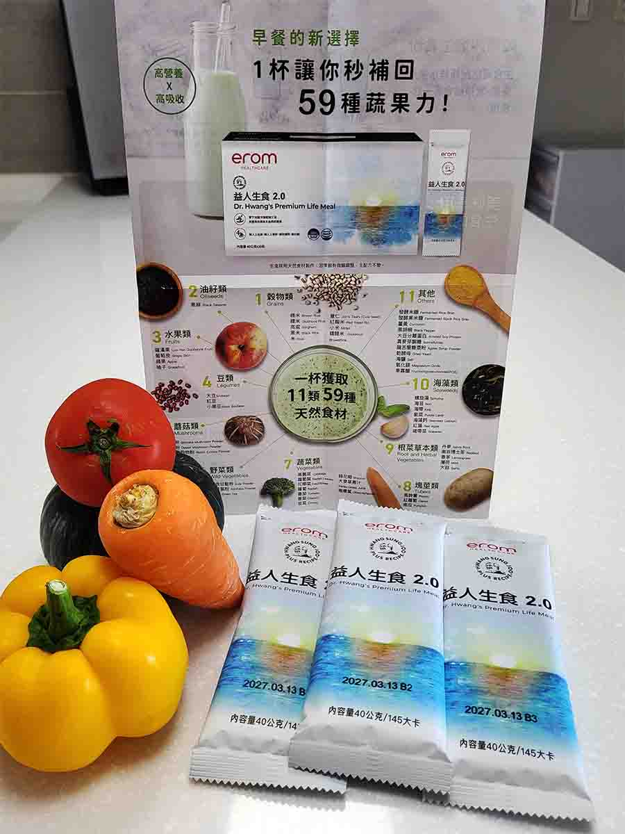 63歲 新北市現在正夯的「erom益人生食」~含59種天然食材,一杯就輕鬆搞定。這麼方便的營養補充品,當然想體驗看看!很幸運獲選了!!