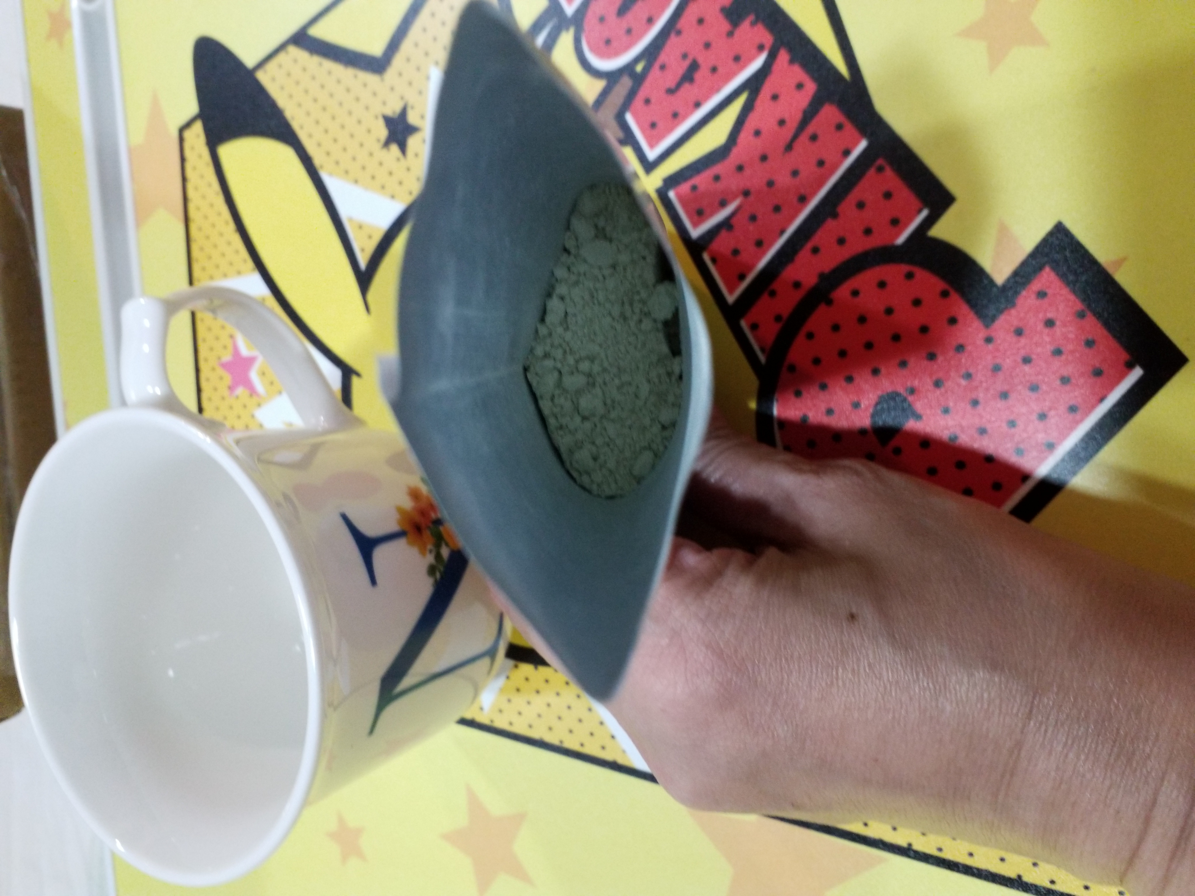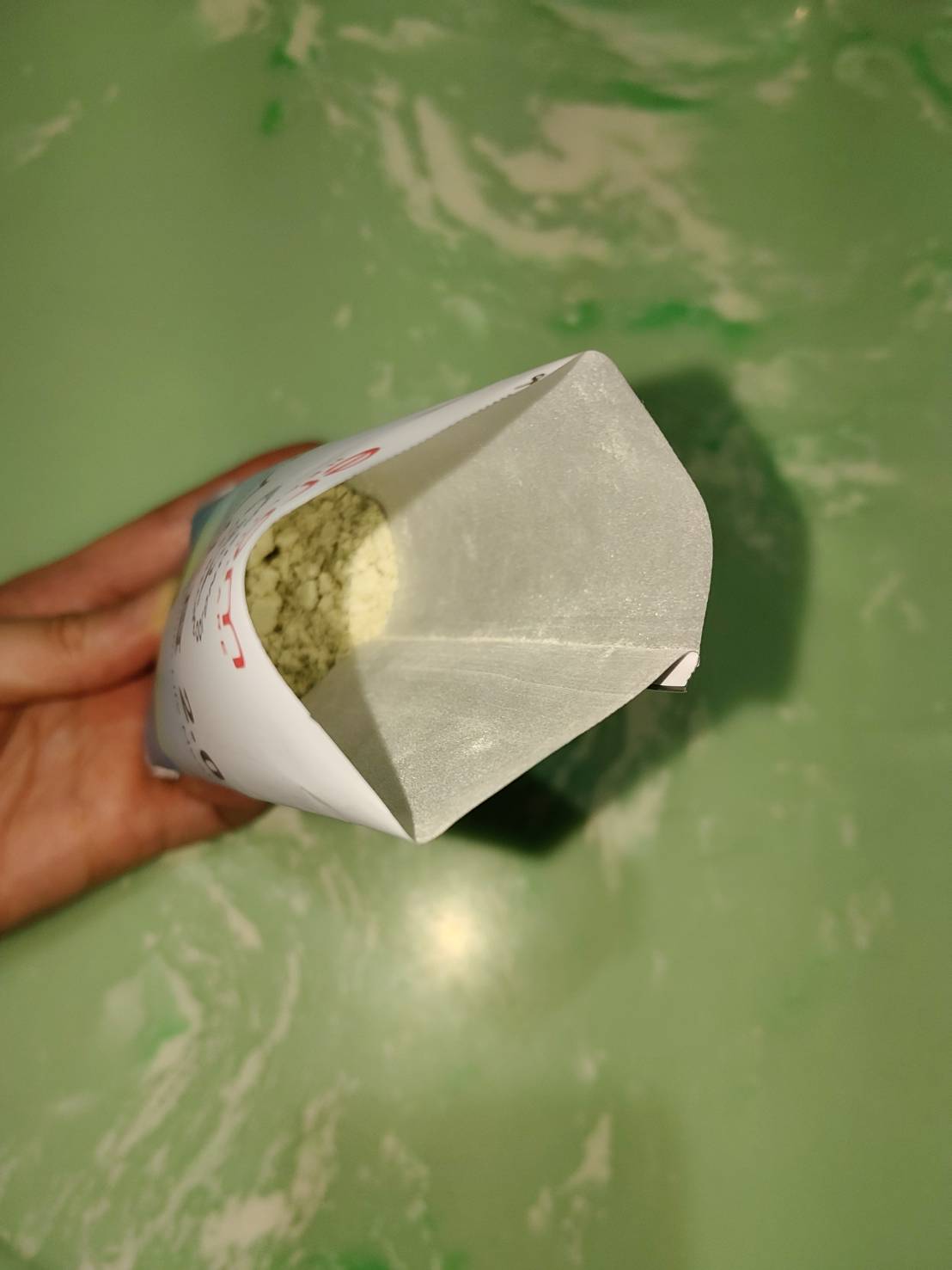 27歲 臺中市拿到之後覺得一包量滿充足的,打開是偏綠色的粉末。