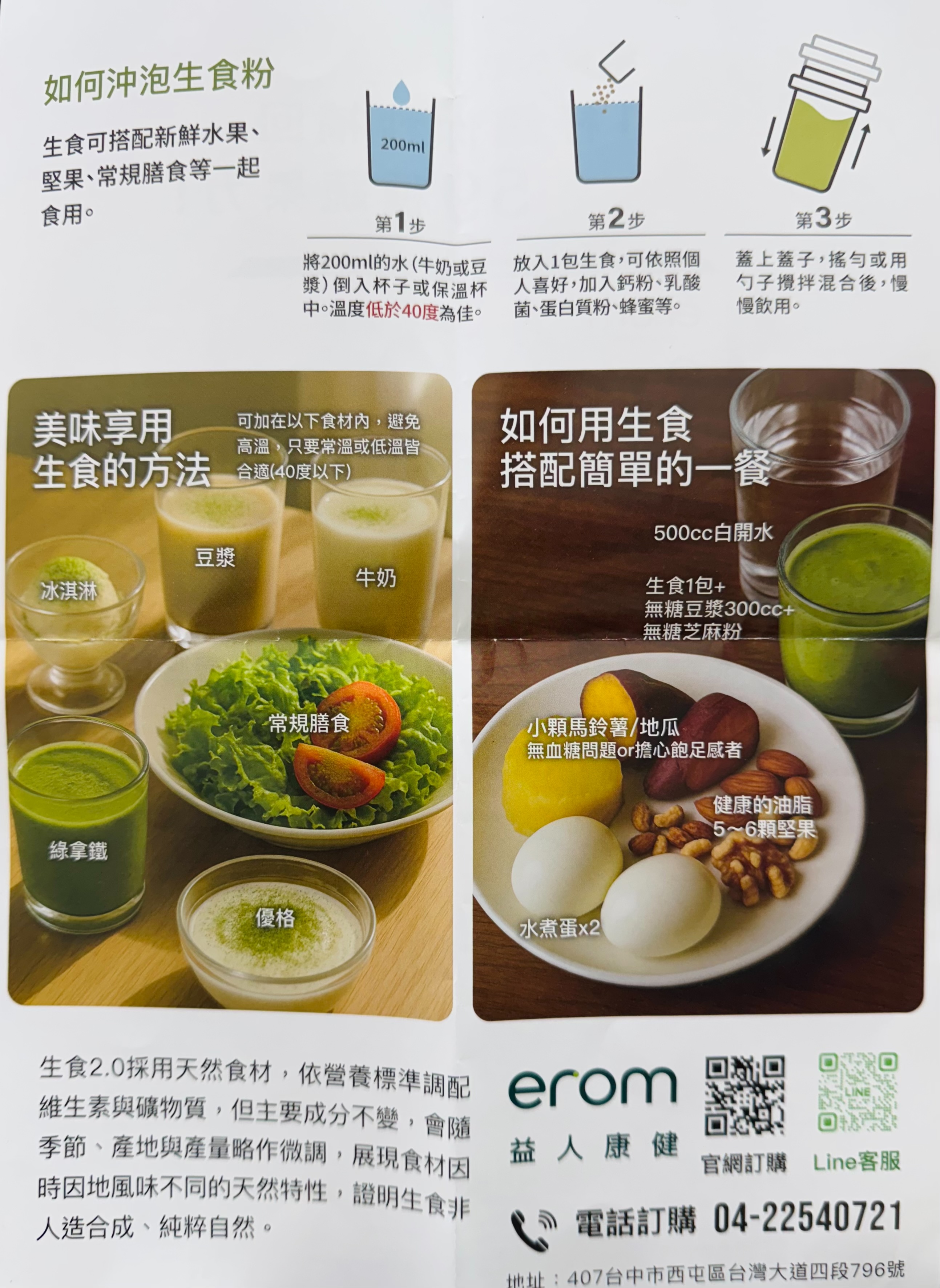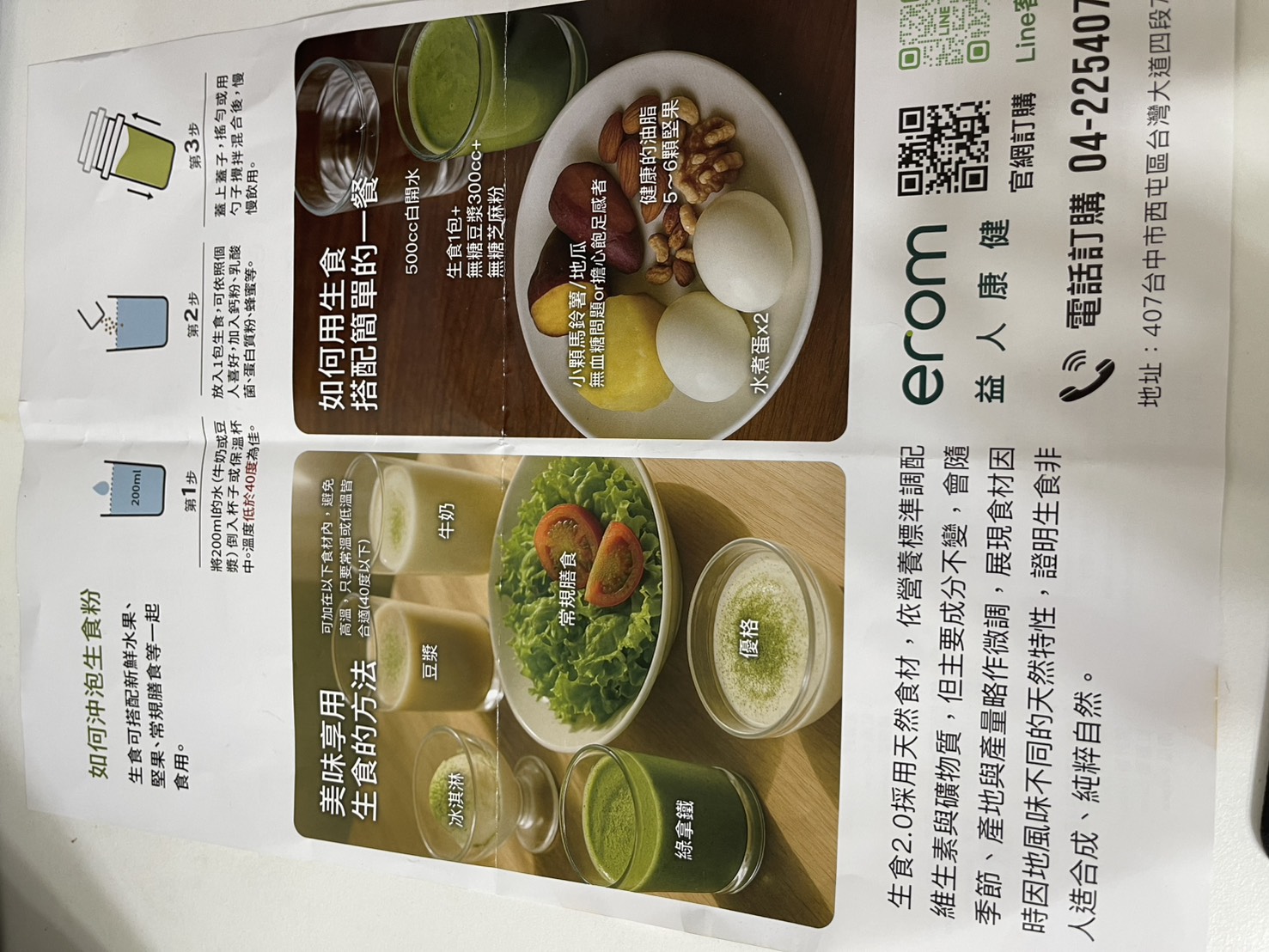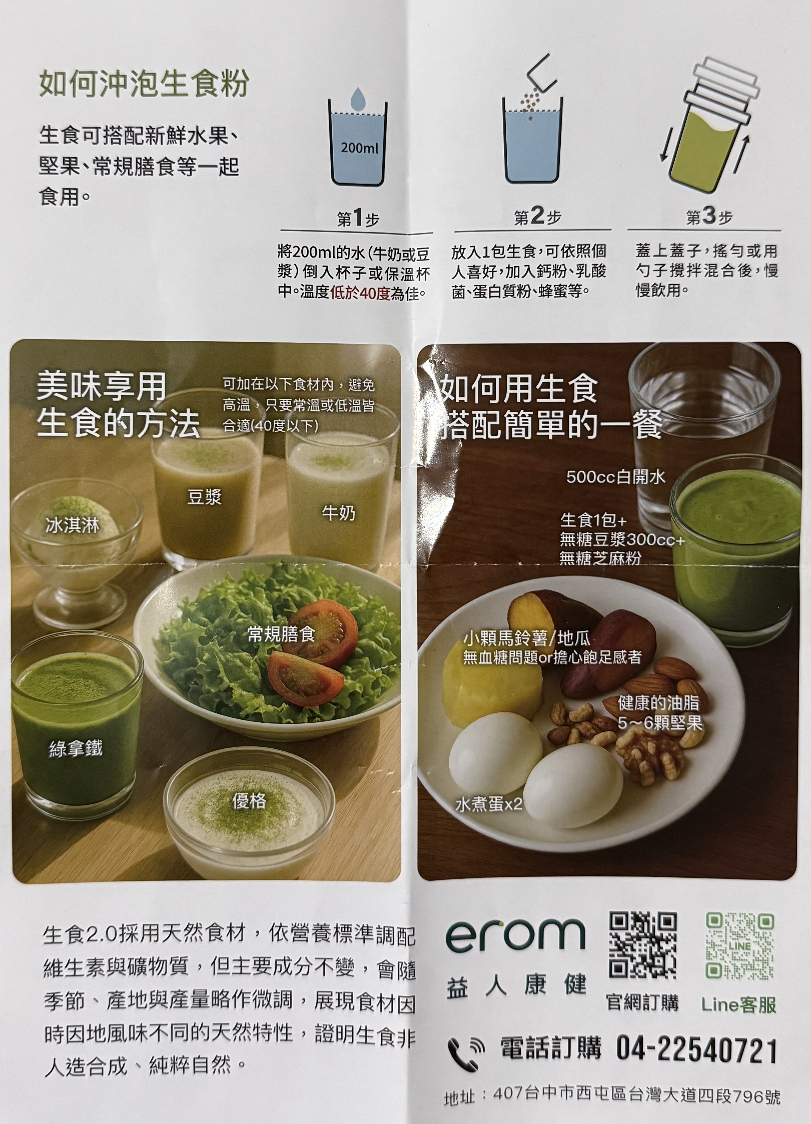 37歲 臺北市「erom益人生食|生食一分鐘,營養六十種!您最佳的營養補充方案」