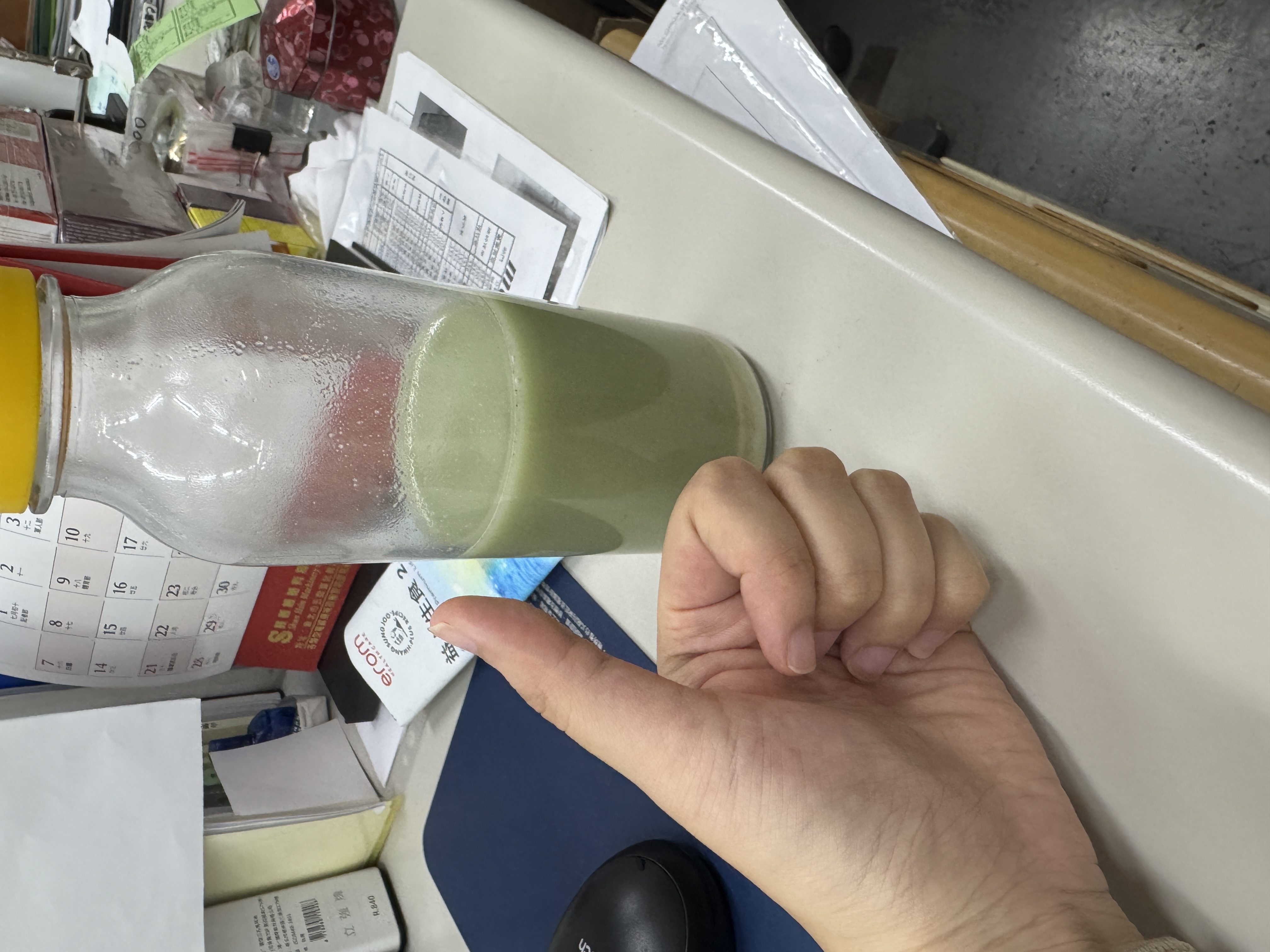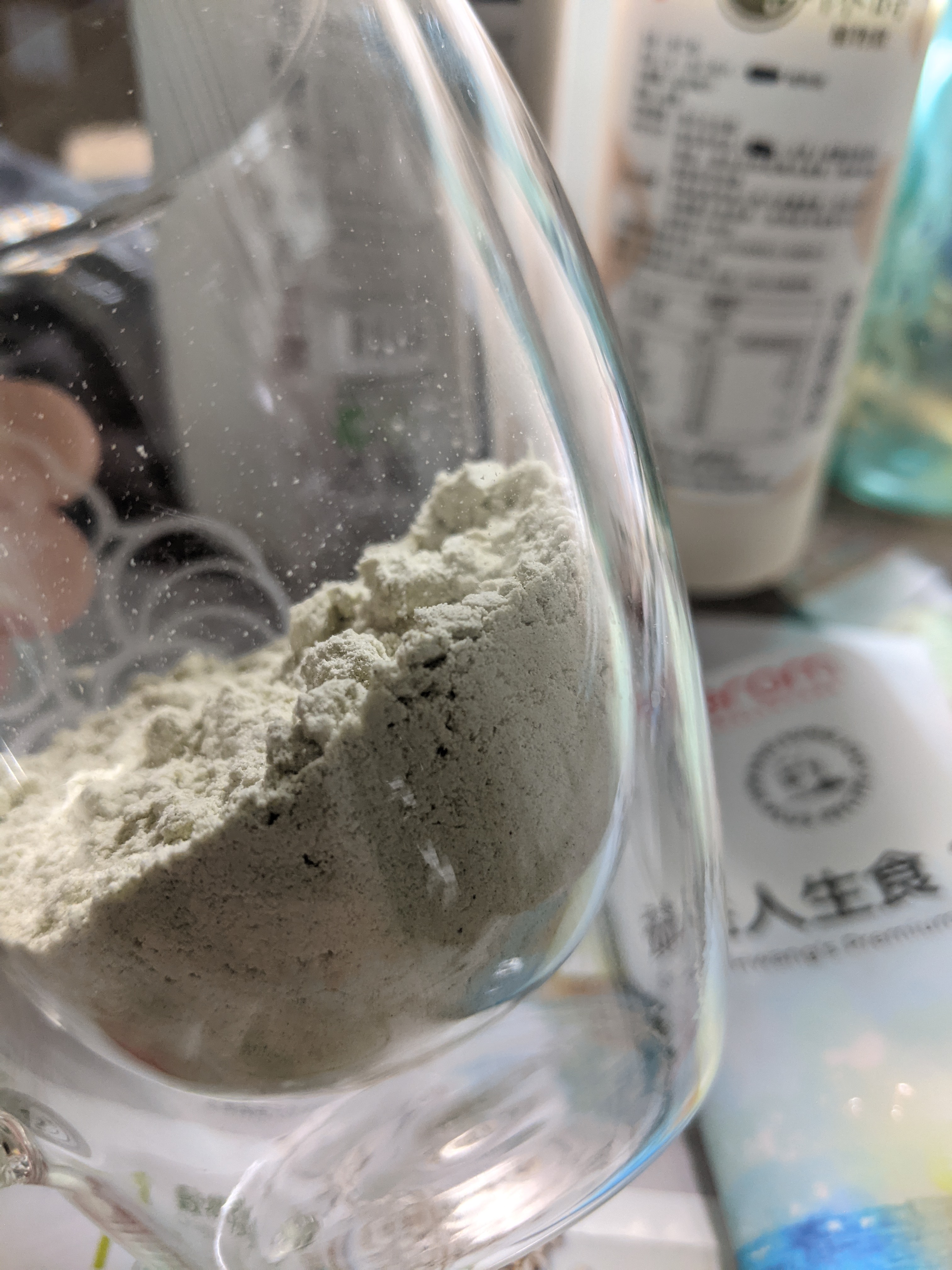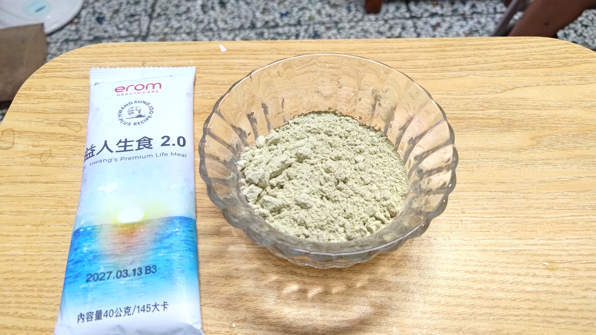 60歲 南投縣益人生食的粉末呈現出一種淺綠灰的色調,廣告中所見的鮮亮綠色有明顯差異。剛開始看到這顏色時,坦白說有點不安,感覺可能不太好喝。不過後來查了一下,發現這種色調其實常見於植物性粉末中,例如抹茶、青汁、大麥若葉粉等。相較於鮮亮的綠色,這樣自然的色澤反而讓我安心,不會擔心裡面是否額外添加了人工色素。