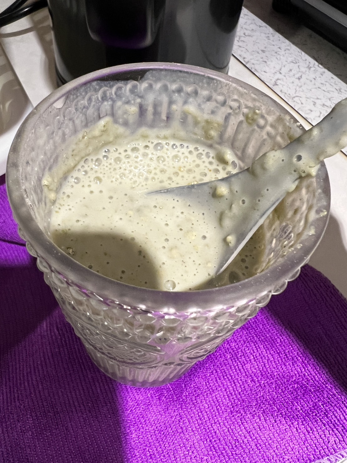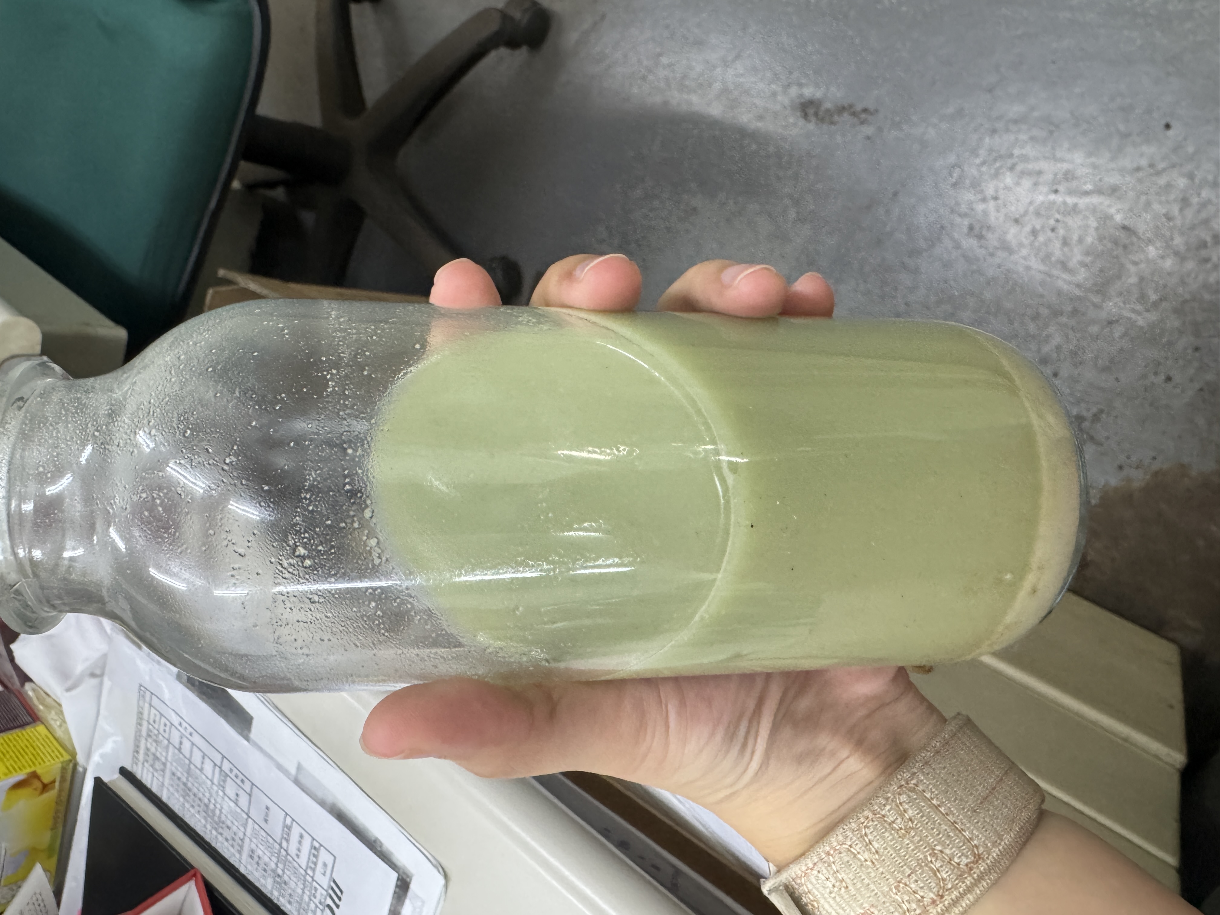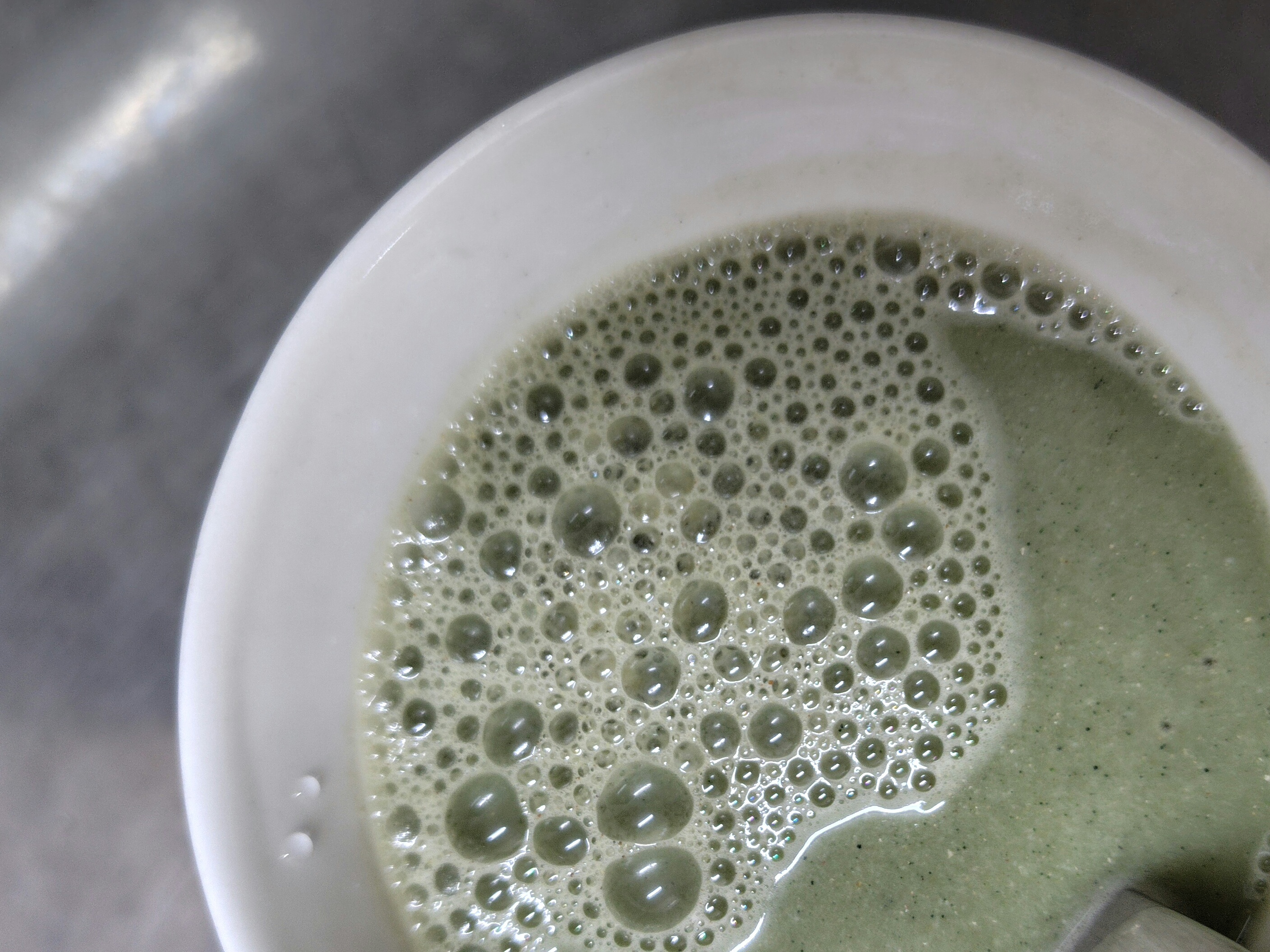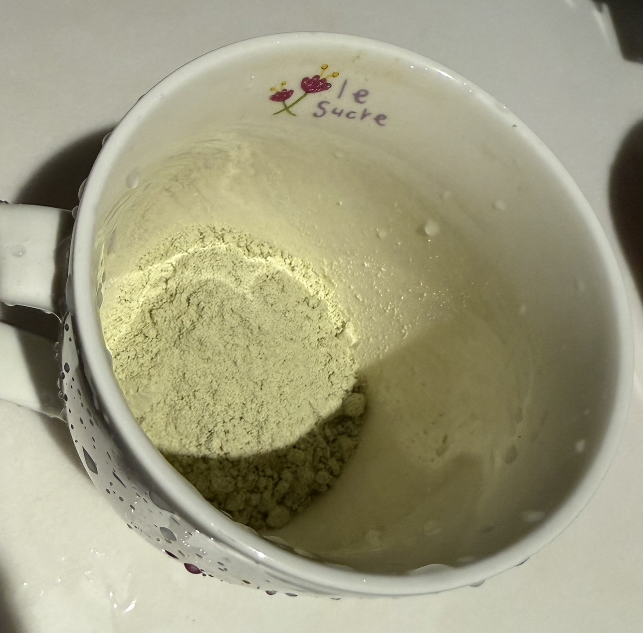 60歲 南投縣益人生食的粉末呈現出一種淺綠灰的色調,廣告中所見的鮮亮綠色有明顯差異。剛開始看到這顏色時,坦白說有點不安,感覺可能不太好喝。不過後來查了一下,發現這種色調其實常見於植物性粉末中,例如抹茶、青汁、大麥若葉粉等。相較於鮮亮的綠色,這樣自然的色澤反而讓我安心,不會擔心裡面是否額外添加了人工色素。