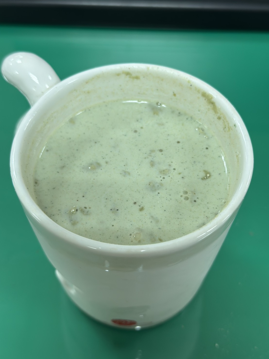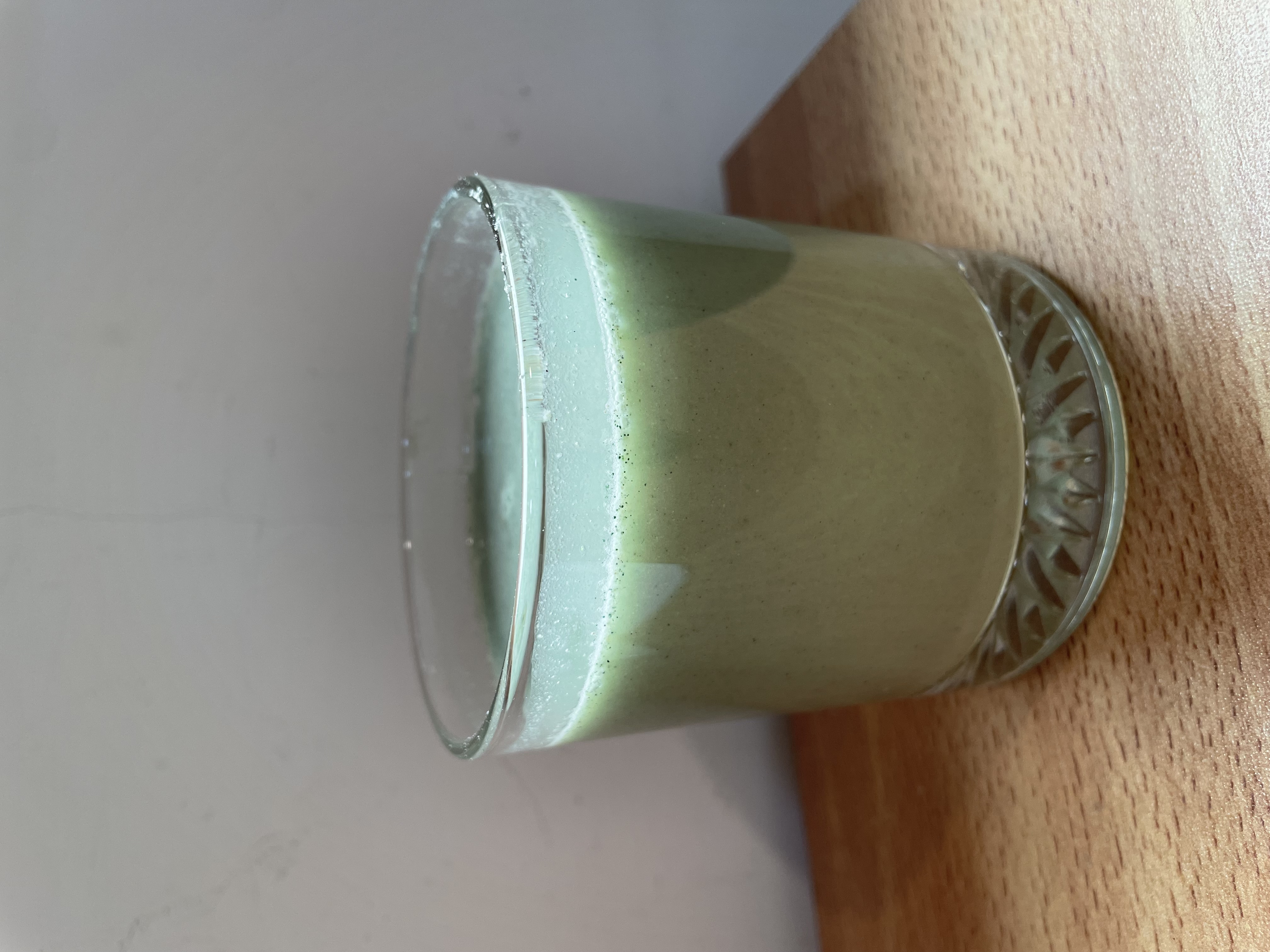 33歲 新北市口感比我預期的好很多,不會有青汁那種菜味,而是很溫和、滑順,帶有淡淡的清香,有點像豆漿又帶點抹茶味,喝起來舒服自然。搭配家裡的麥片、堅果和水果(今天切了芭樂)一起吃,飽足感剛剛好,也比只喝飲品更豐盛。