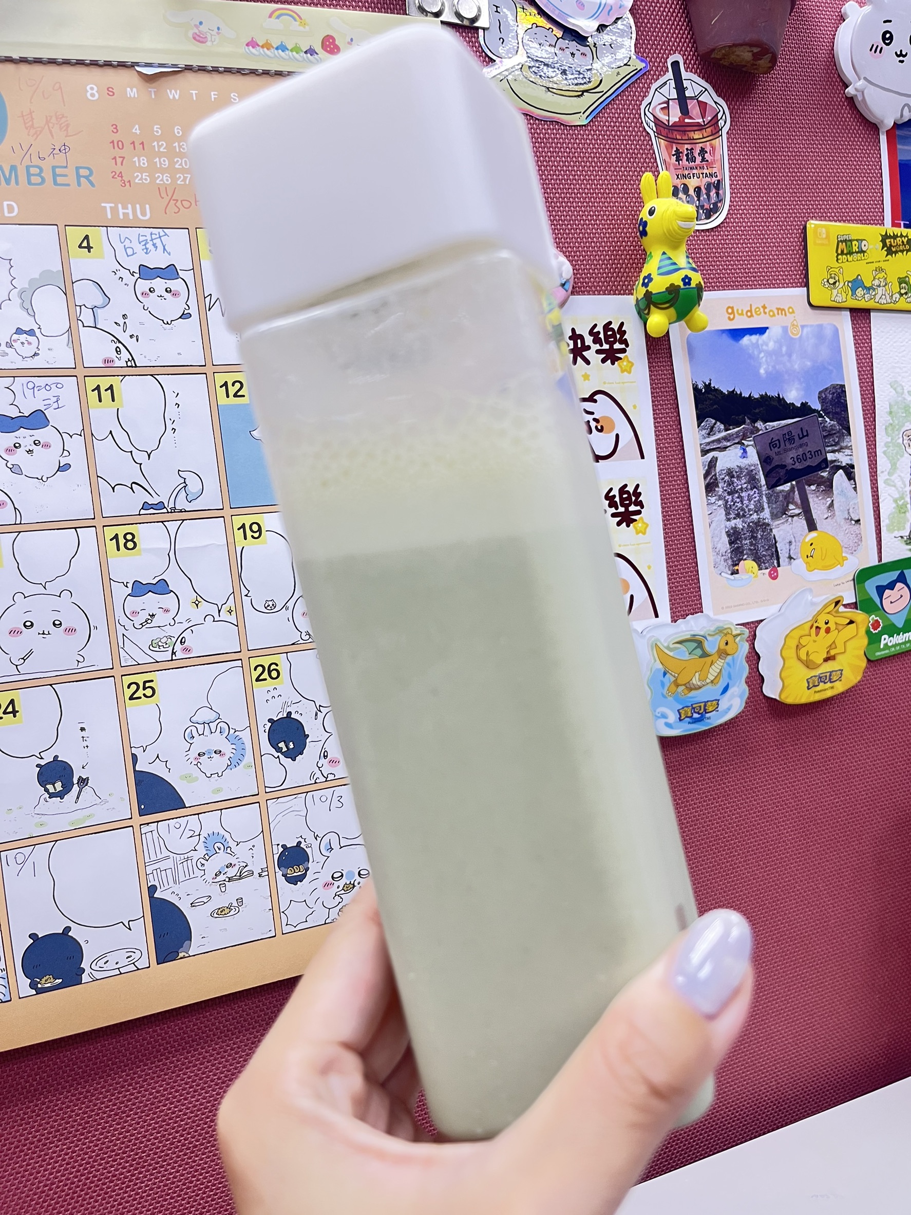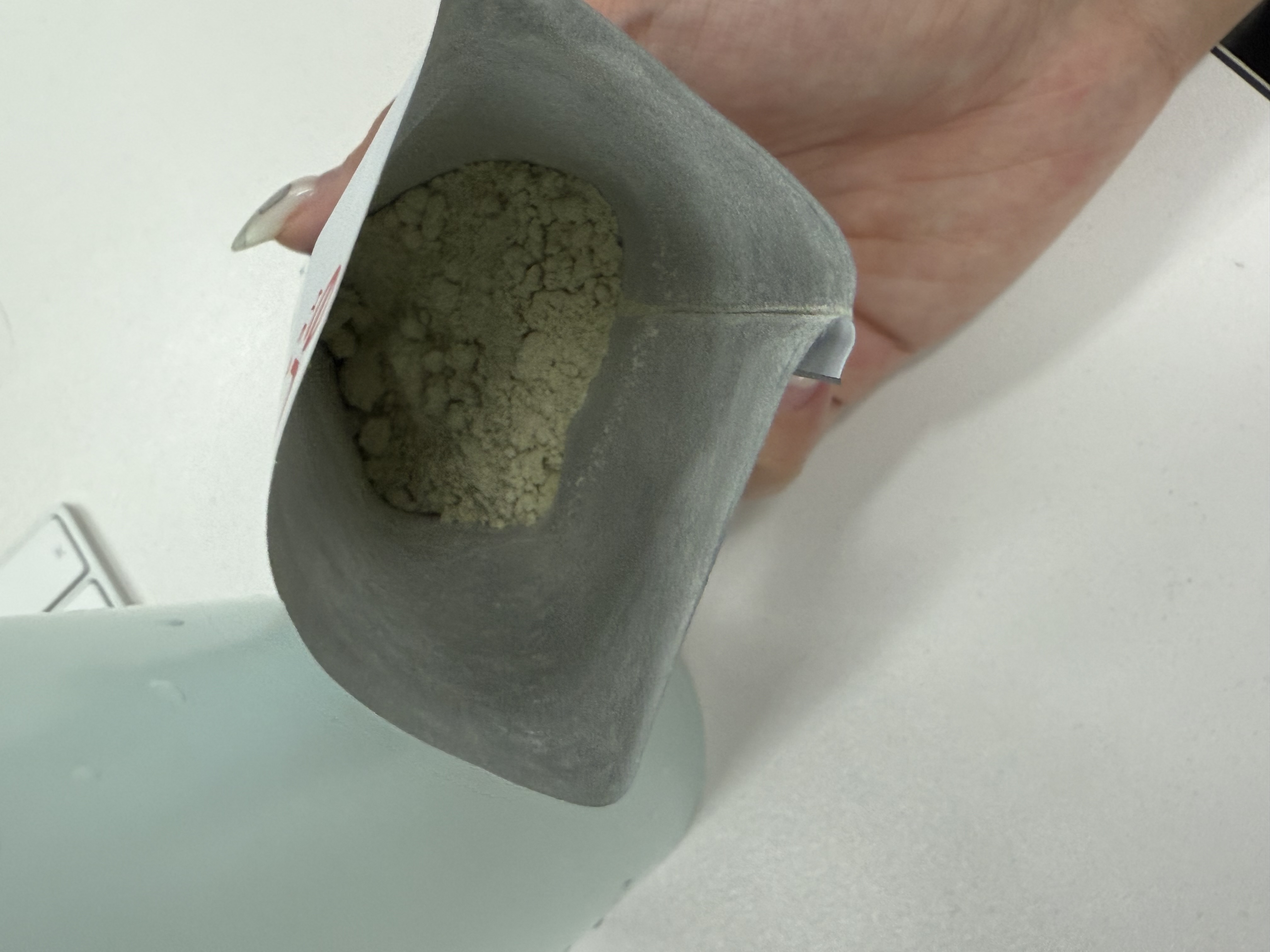 倒出來看,它是淺綠色粉末,聞起來有淡淡的植物清香,一包可以沖泡200ml的開水,蓋上蓋子搖一搖或者用勺子攪拌均勻就能喝了,想改成用牛奶或豆漿沖泡也沒問題,還可以根據個人口味加點鈣粉、乳酸菌、蛋白質粉甚至蜂蜜,完全都能隨心調整!