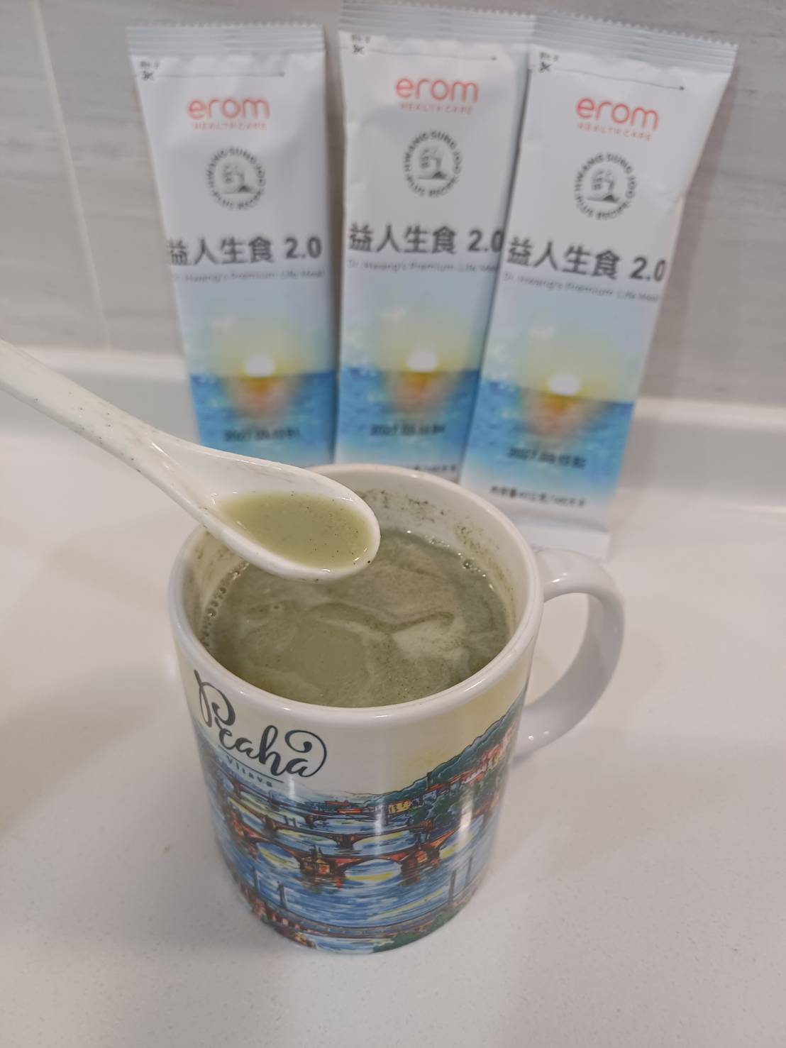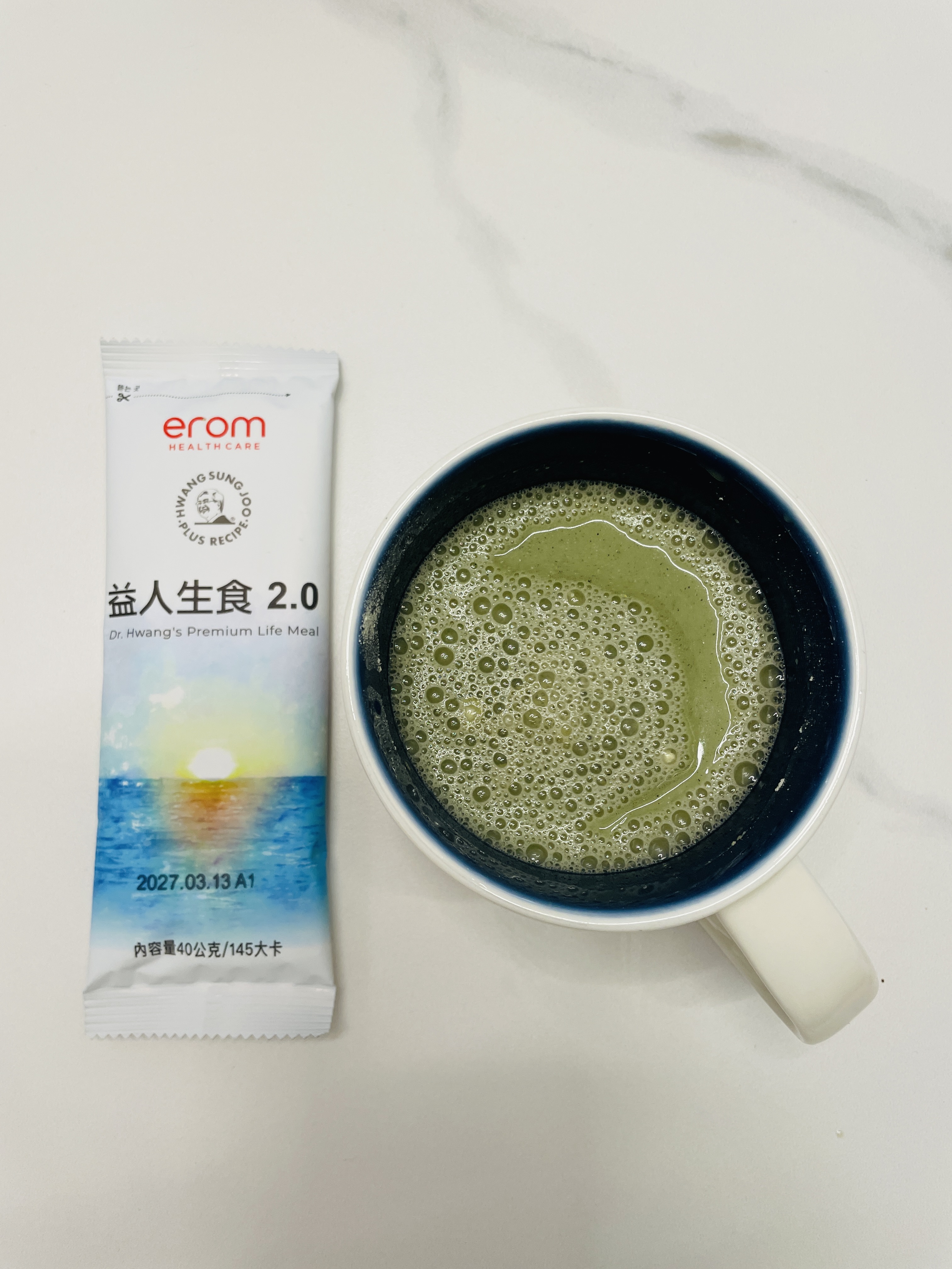 感謝食力讓我遇見 erom 益人生食 2.0,覺得跟想像的完全不同。味道不像傳統青汁那麼重,反而很順口,有點像豆漿加上抹茶粉,喝起來舒服自然。