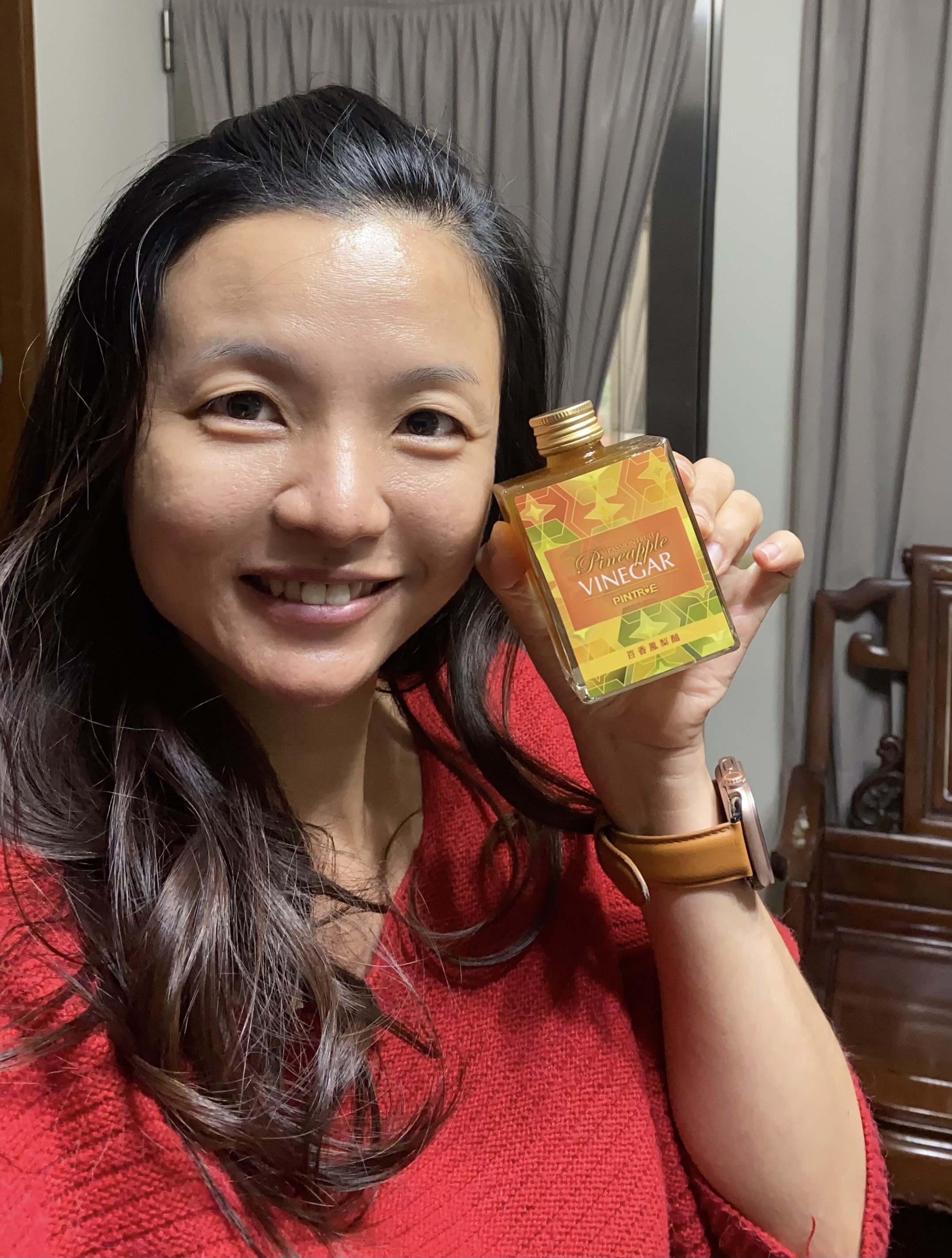 很開心這次可以體驗「品醋迷 百香鳳梨醋」,喝起來很舒服,也很適合作為日常的飲品!入口先是百香果清爽的酸味,不會有嗆喉的感覺,接著鳳梨的甜慢慢出現,酸甜比例剛剛好,喝完嘴巴也不會黏膩。