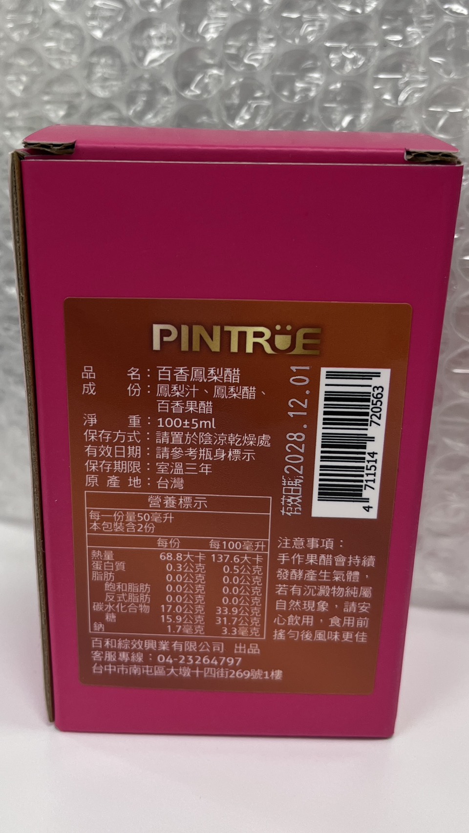 這次收到願旺的百香鳳梨醋,一收到產品就覺得防護真的很用心,外層保護非常嚴實,完全不用擔心運送過程會有碰撞碎裂的問題,可見他們的細心。