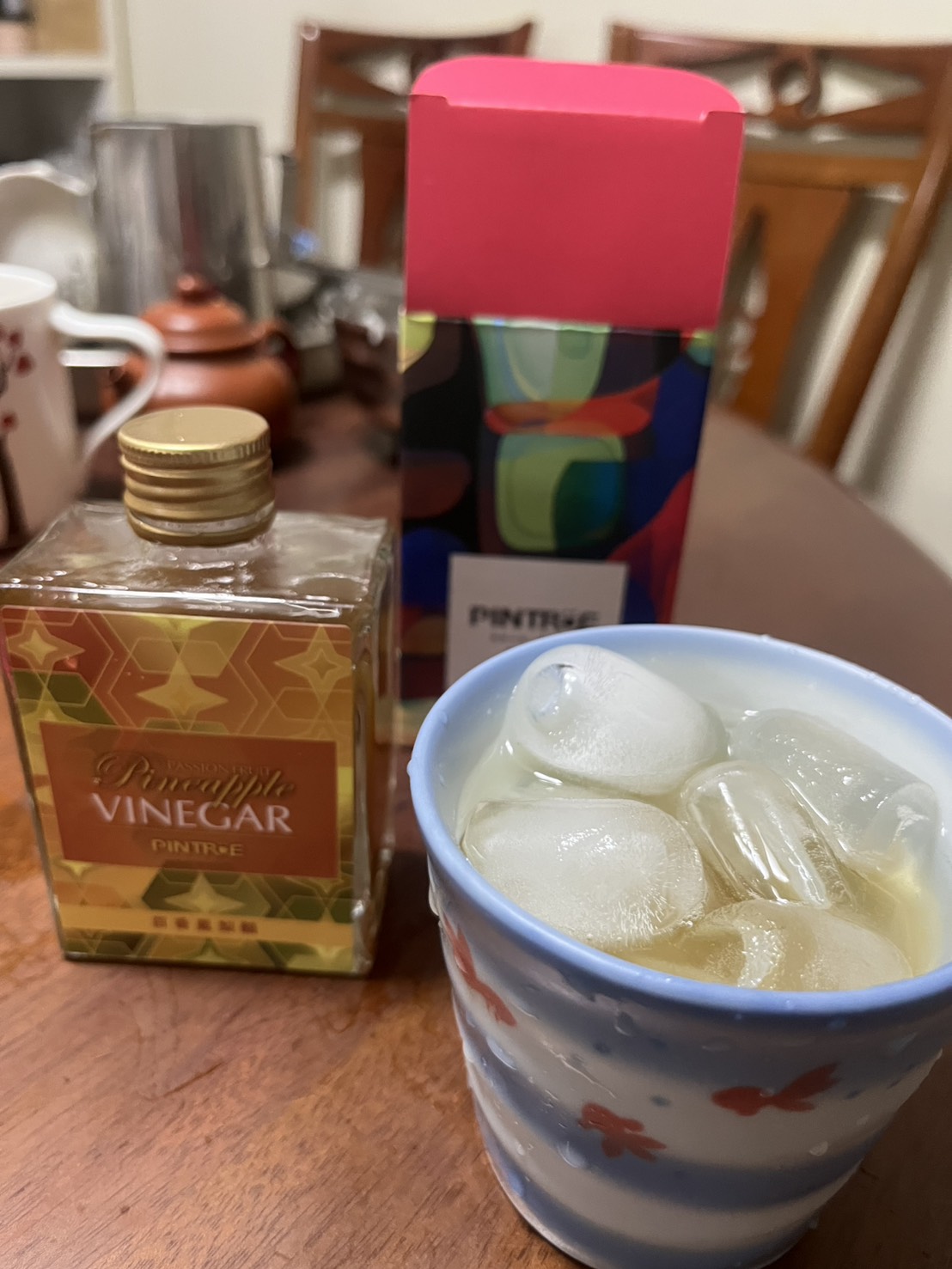 因為平常就有喝水果醋的習慣,所以能抽到真的非常開心,第一眼商品包裝和瓶身設計100分,很有質感,不僅送禮好看,自己喝看了也很開心!盒內有附上一張沖泡飲用方式和比例,非常貼心,總共有6種搭配,我選擇比較簡單接受度也高的,直接沖泡溫開水飲用,因為我比較喜歡味道重一點,所以醋和開水比例大約是2:1,喝起來感覺順口但不能喝太大口,因為會容易嗆到,但我就是喜歡那股嗆感啊!舒暢~如果怕嗆的可以依照個人口味調整,再來入口後的百香果風味非常濃郁,搭配鳳梨的甜,非常恰到好處,不膩口也不酸,棒棒,非常推薦哦!