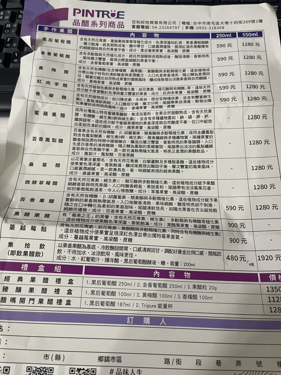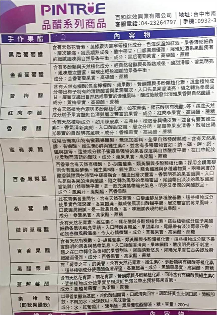 品醋迷的果醋商品多樣,觀看紙本說明可以發現來到我手上的百香鳳梨醋100ml似乎是特規,不管是外包裝還是裏頭的瓶身都非常可愛。