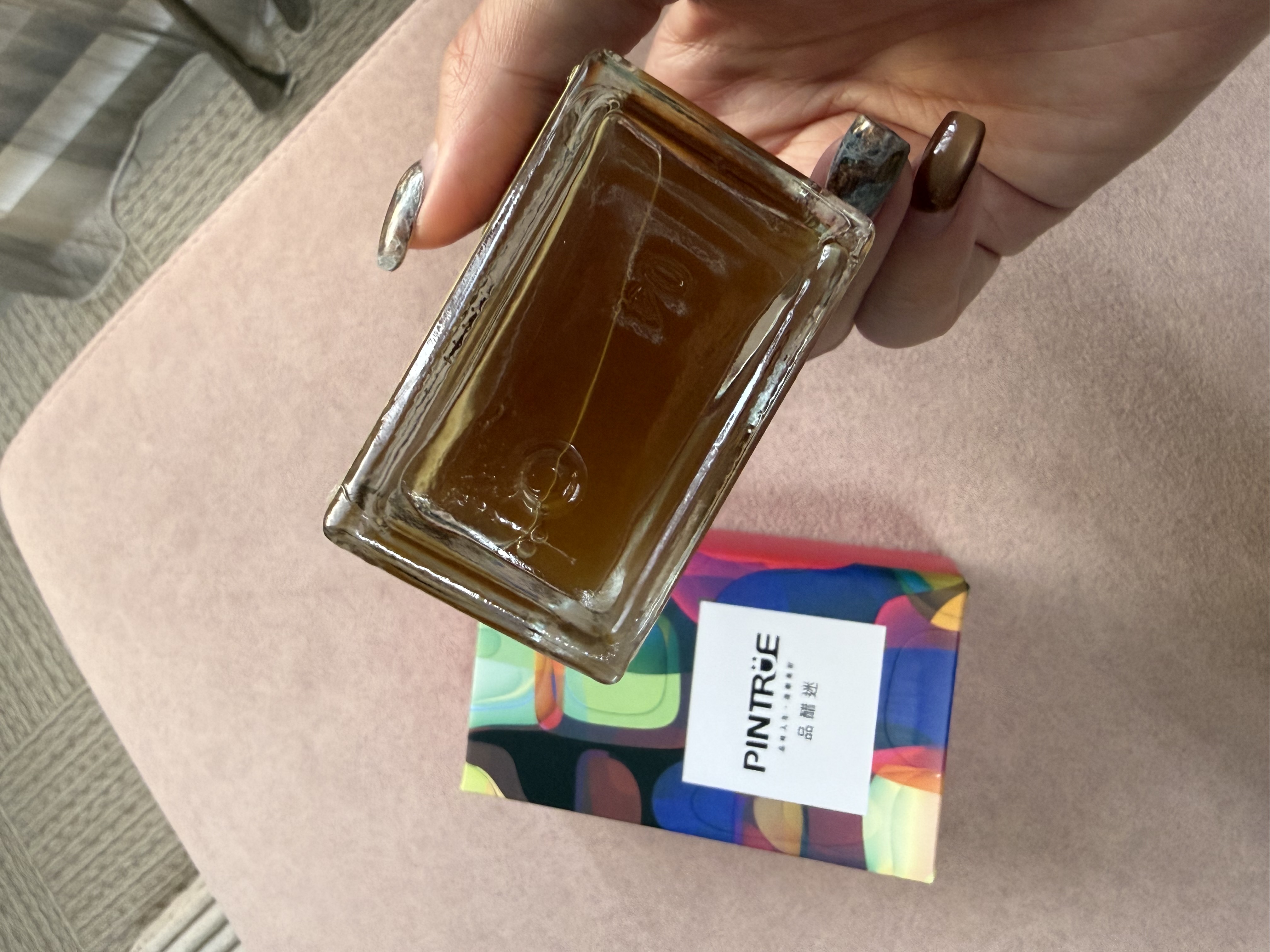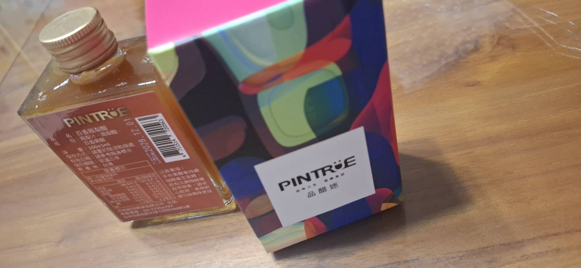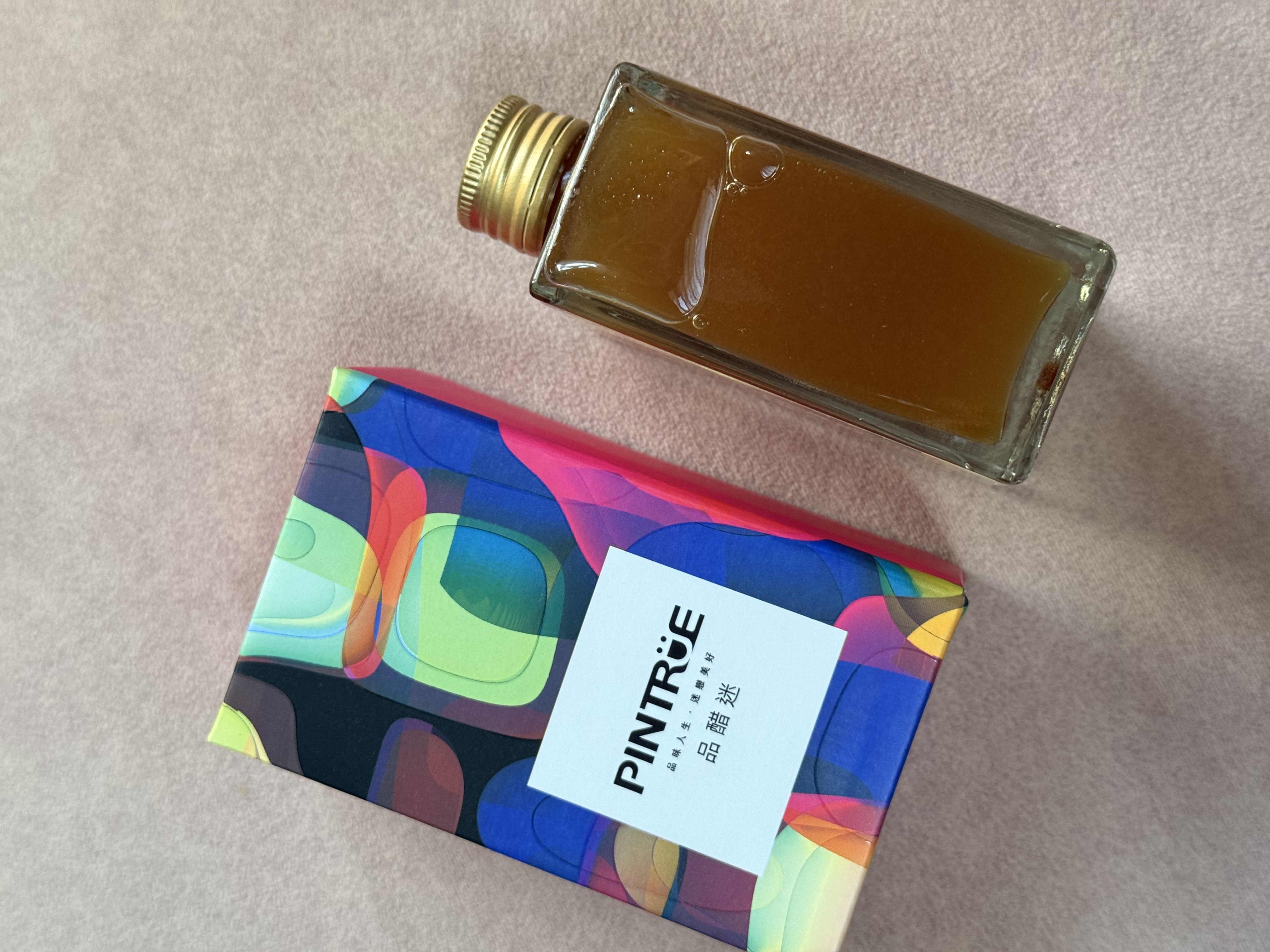 說真的,這瓶「品醋迷」的百香鳳梨醋真的有驚豔到我!光是看到那個像香水瓶一樣的精緻方瓶,還有超迷幻藝術感的包裝,心情就先加了 50 分,拿來送禮真的超有面子。