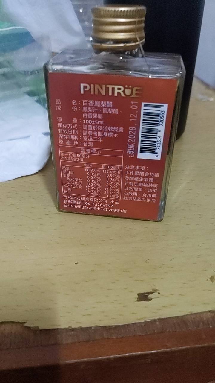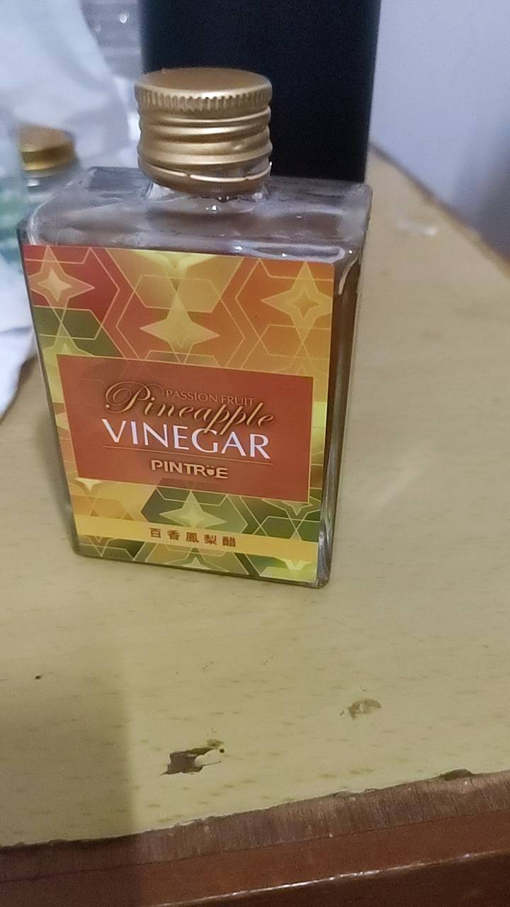 32歲 苗栗縣外包裝很簡潔,打開來蠻不錯的,很像裝烈酒的玻璃罐!成分很單純就是鳳梨汁、鳳梨醋、百香果醋。