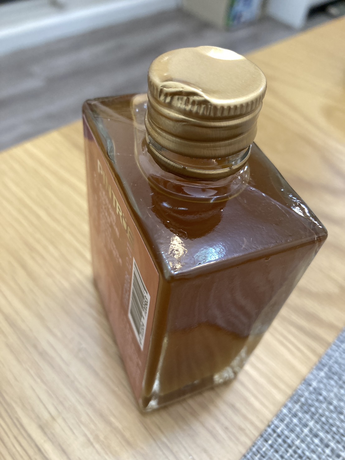 不過老實說,我自己平常不太習慣直接喝果醋,所以後來有加水和冰塊稀釋,味道立刻變得順口很多,也清爽不少,刺激感降低後反而會不小心一杯接一杯。再來一定要誇一下瓶子,真的很好看,方形玻璃瓶配上金色瓶蓋,擺在餐桌或廚房都很有質感,完全可以當裝飾。整體來說,不管在視覺還是味覺上,我都蠻滿意的。