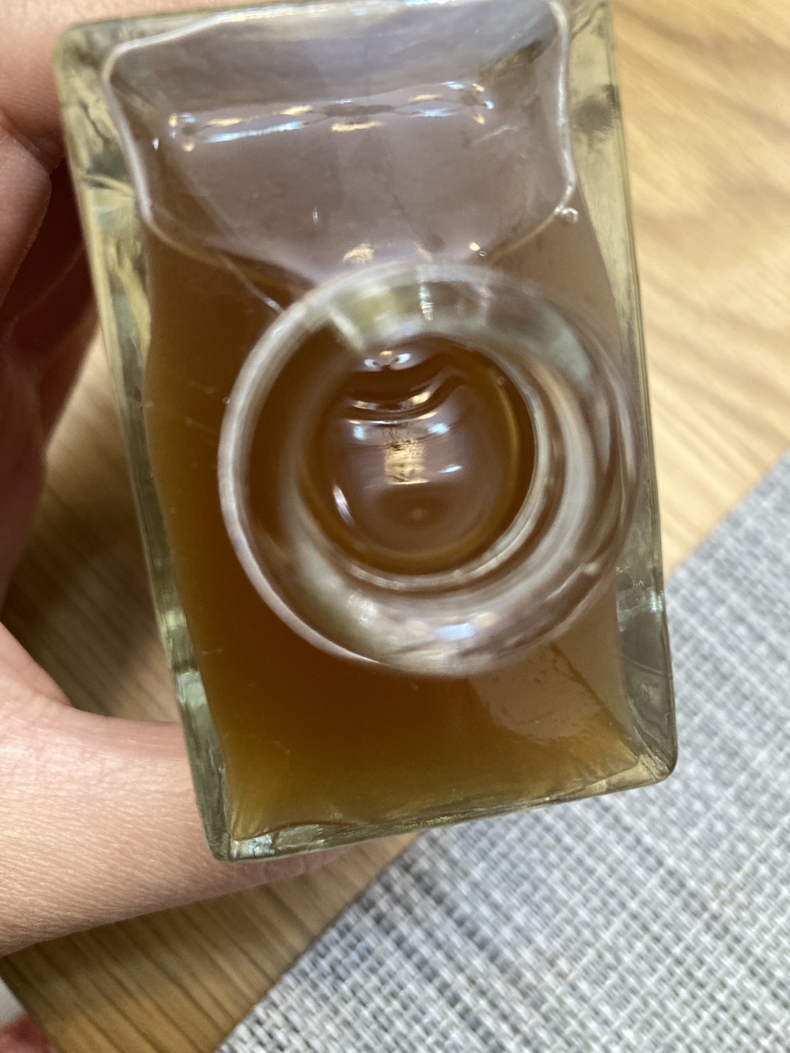 29歲 臺中市不過老實說,我自己平常不太習慣直接喝果醋,所以後來有加水和冰塊稀釋,味道立刻變得順口很多,也清爽不少,刺激感降低後反而會不小心一杯接一杯。再來一定要誇一下瓶子,真的很好看,方形玻璃瓶配上金色瓶蓋,擺在餐桌或廚房都很有質感,完全可以當裝飾。整體來說,不管在視覺還是味覺上,我都蠻滿意的。