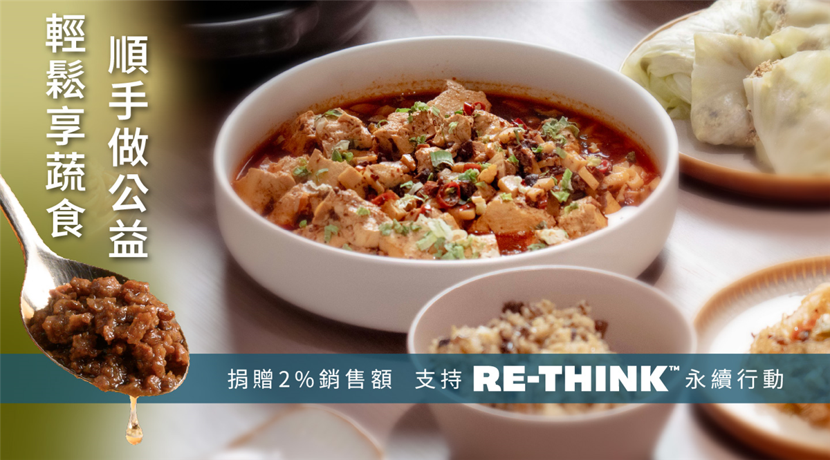 攜手環保組織RE-THINK,長期捐贈2%銷售額,支持永續教育,享用美食之餘也能為環境做公益。